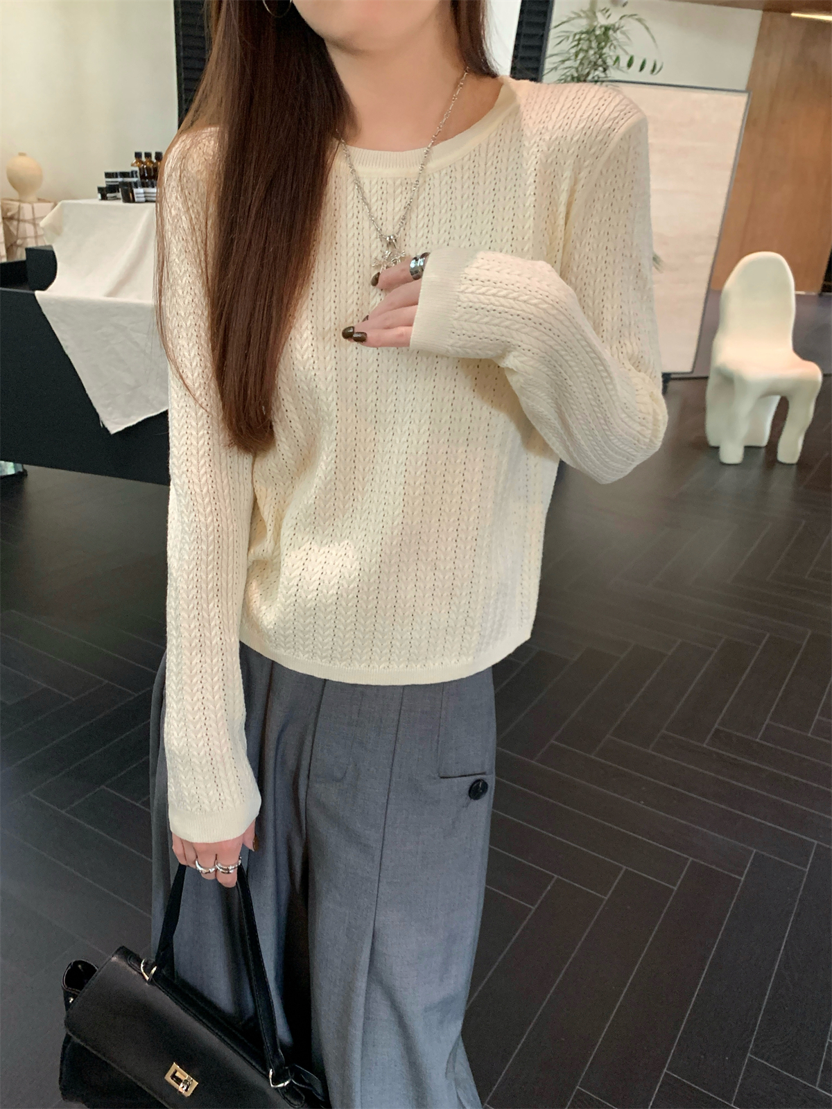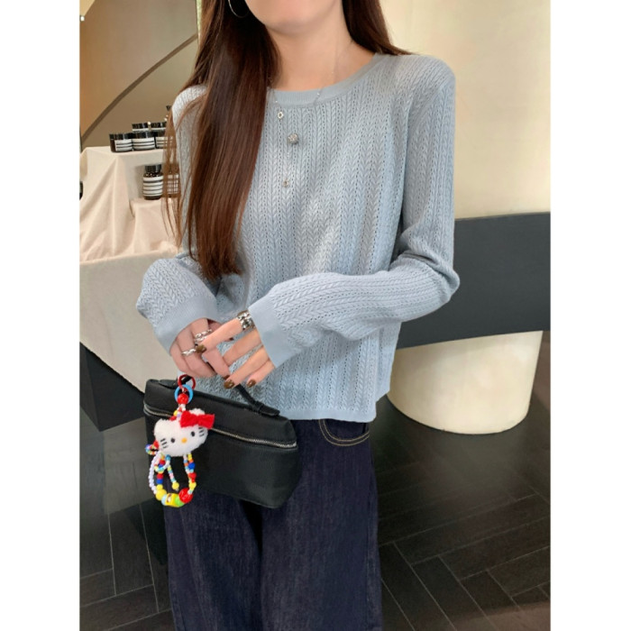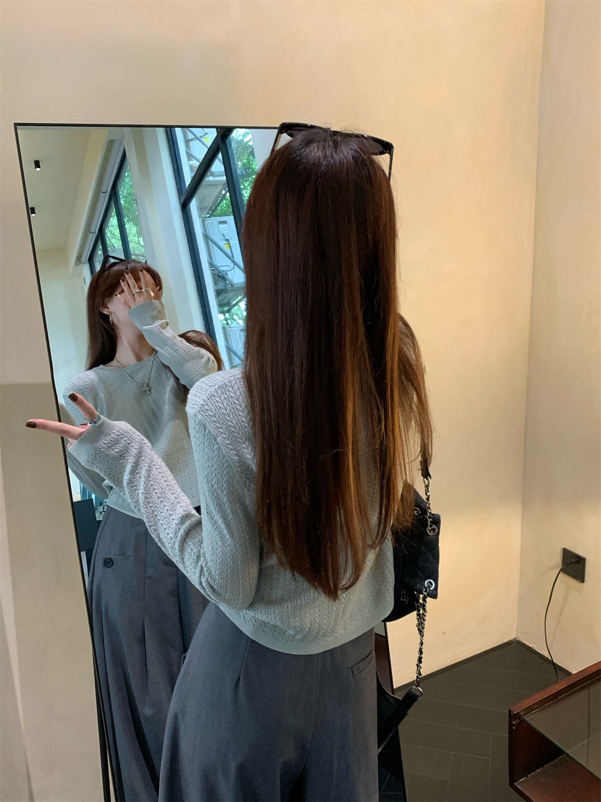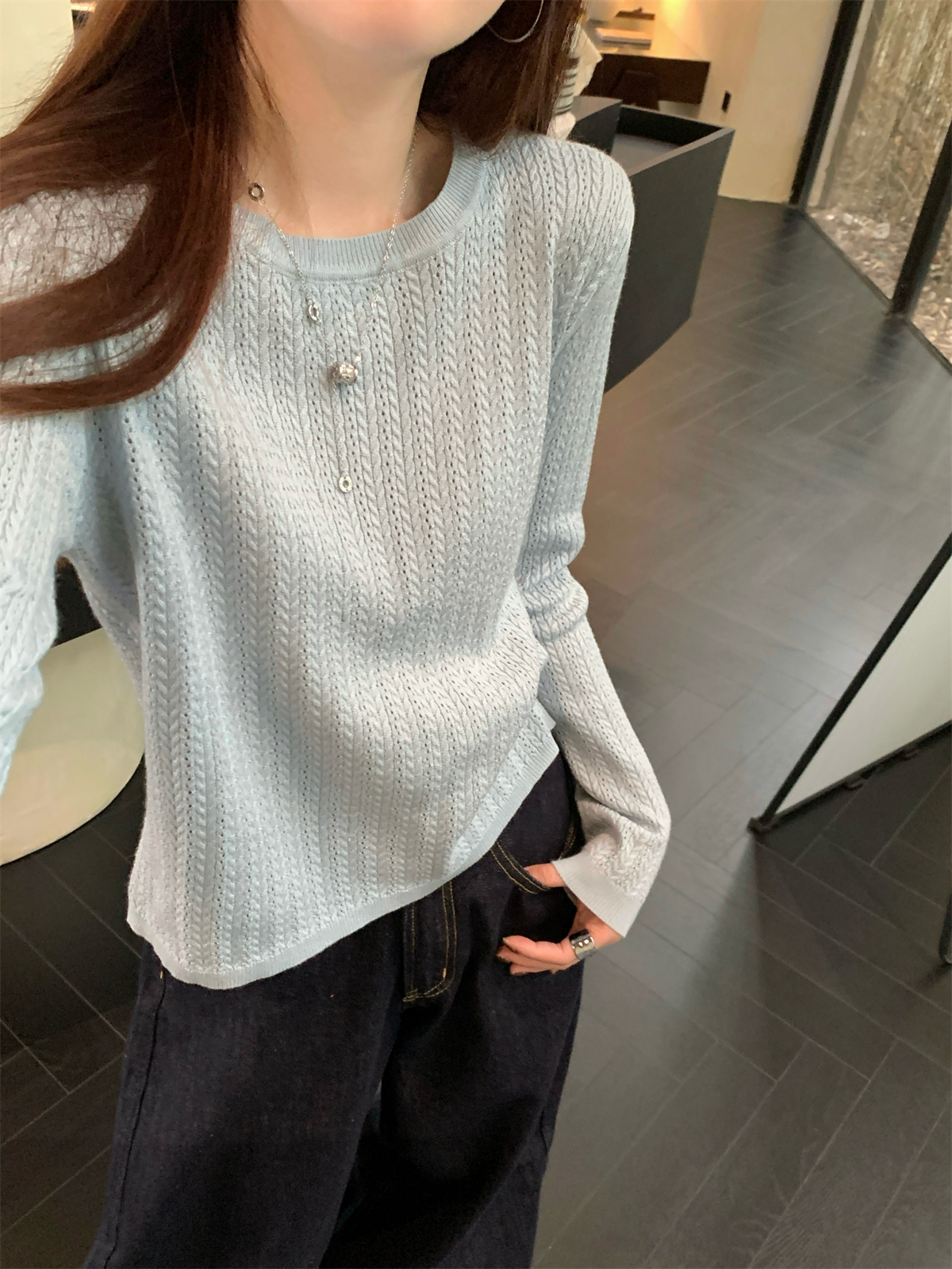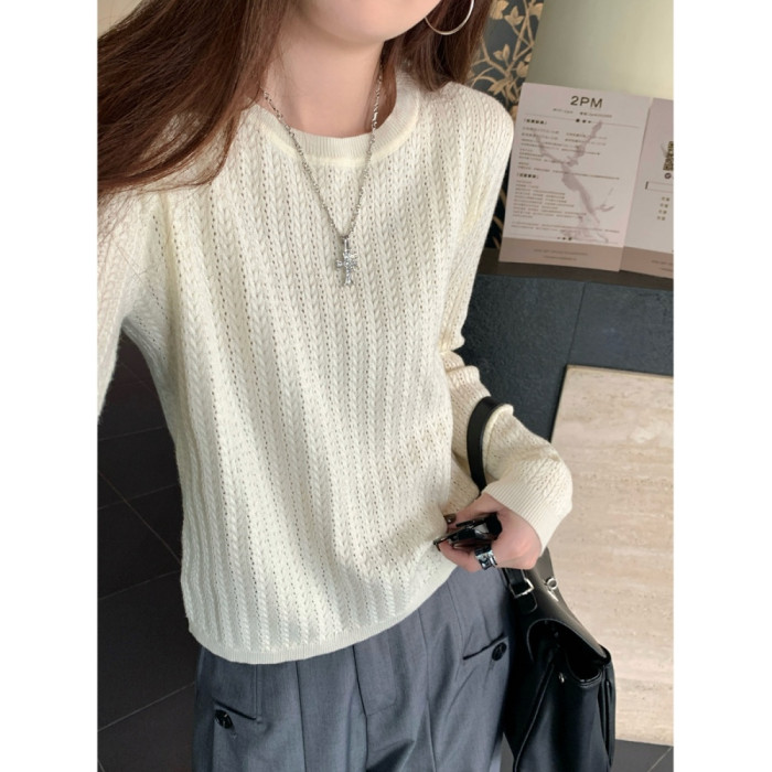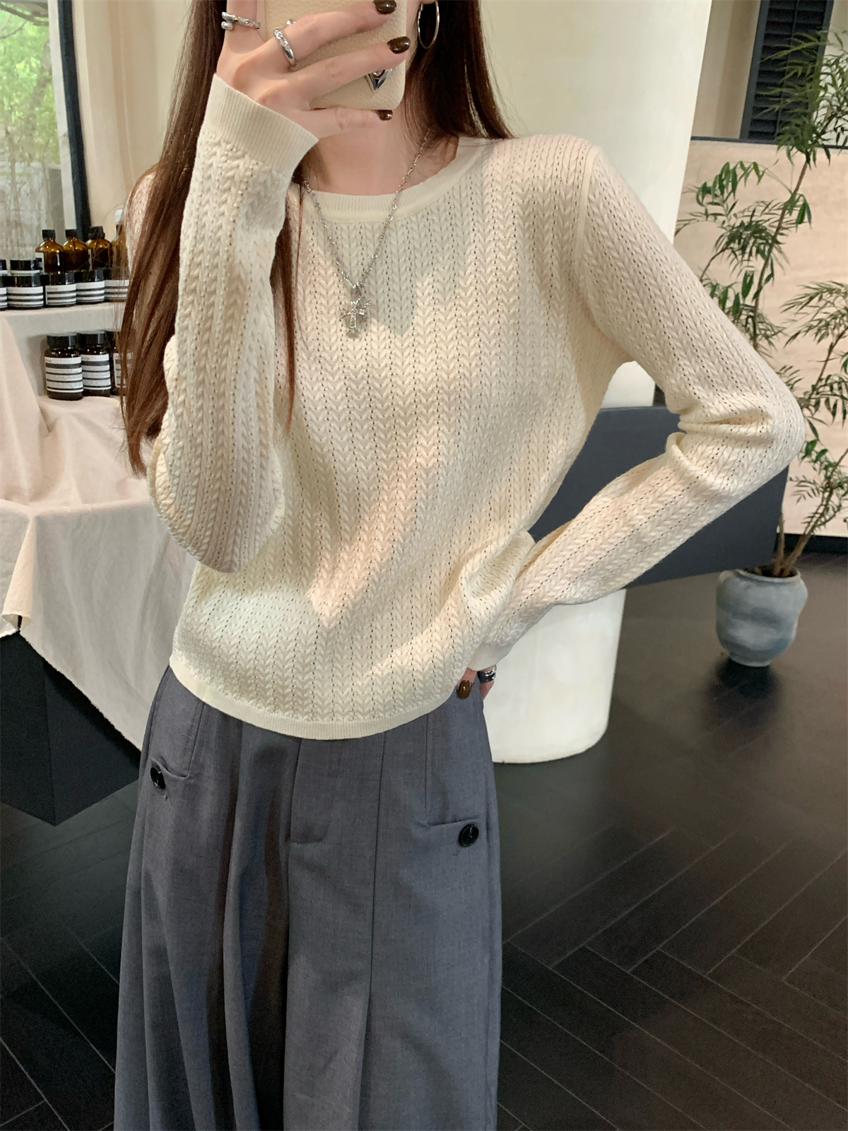 2024新款入秋韓系圓領打底衫女內搭毛衣高級感秋冬長袖針織衫上衣