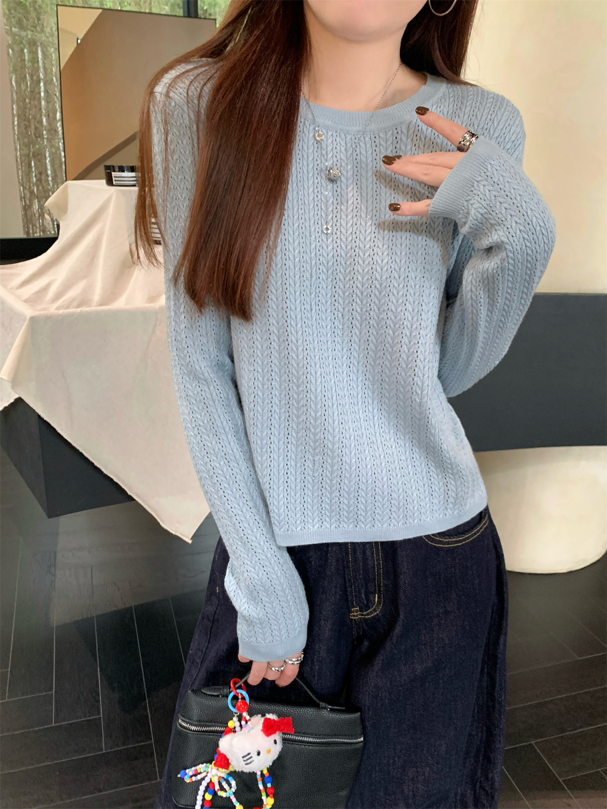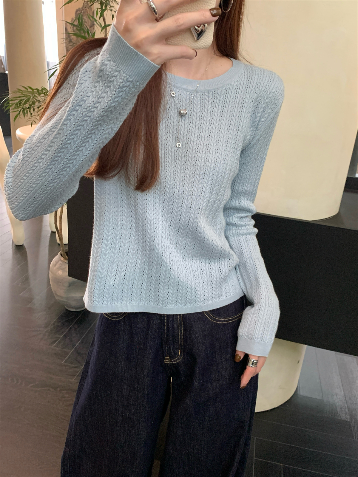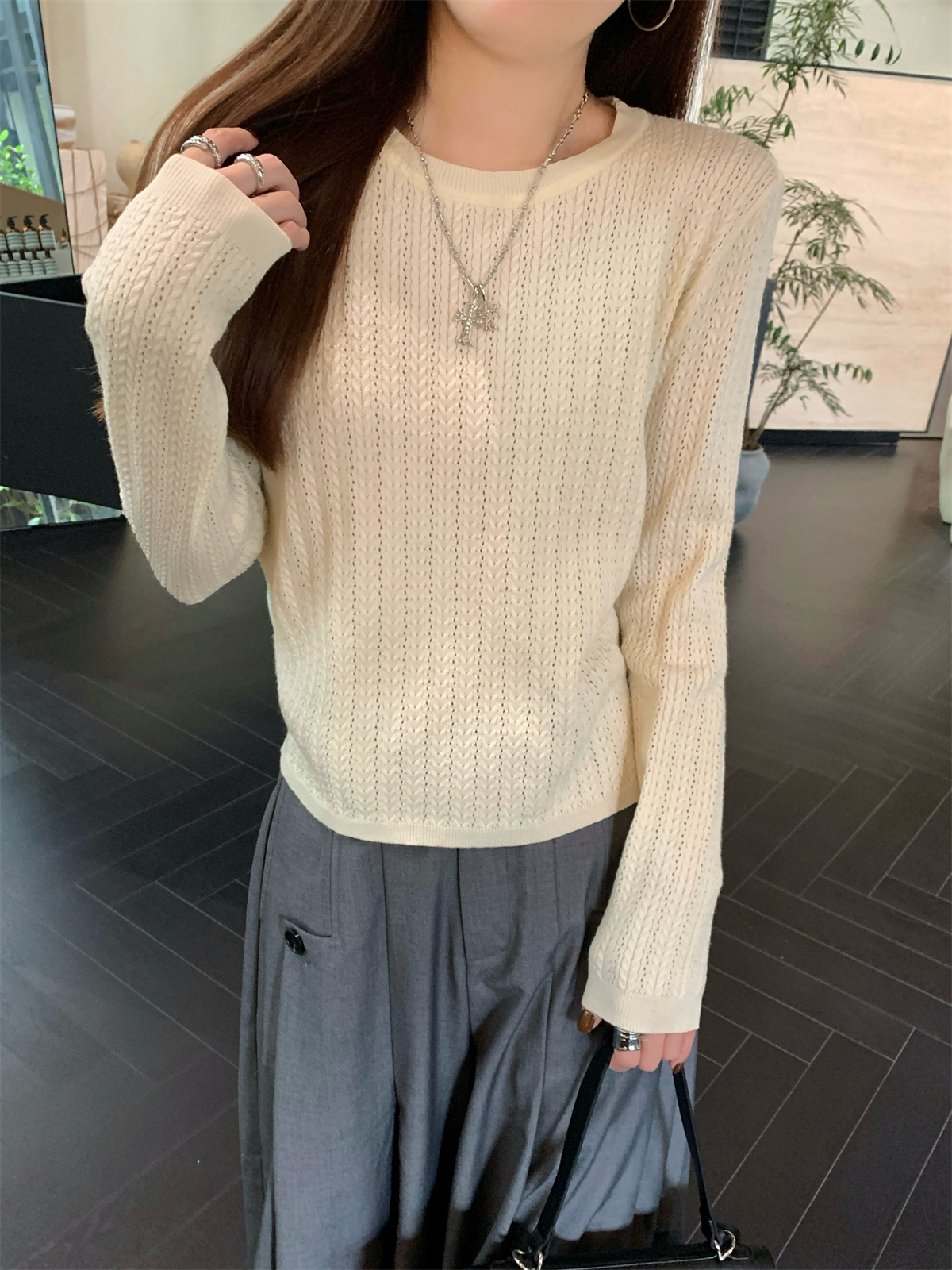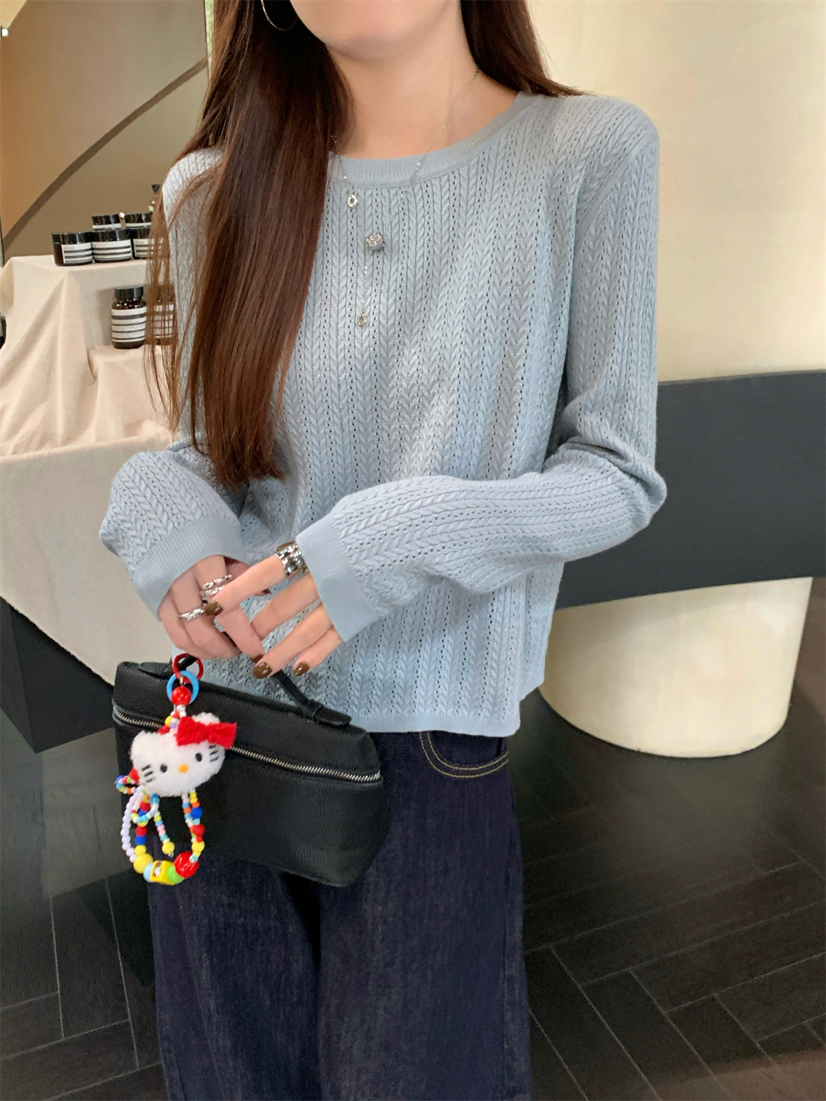 2024新款入秋韓系圓領打底衫女內搭毛衣高級感秋冬長袖針織衫上衣