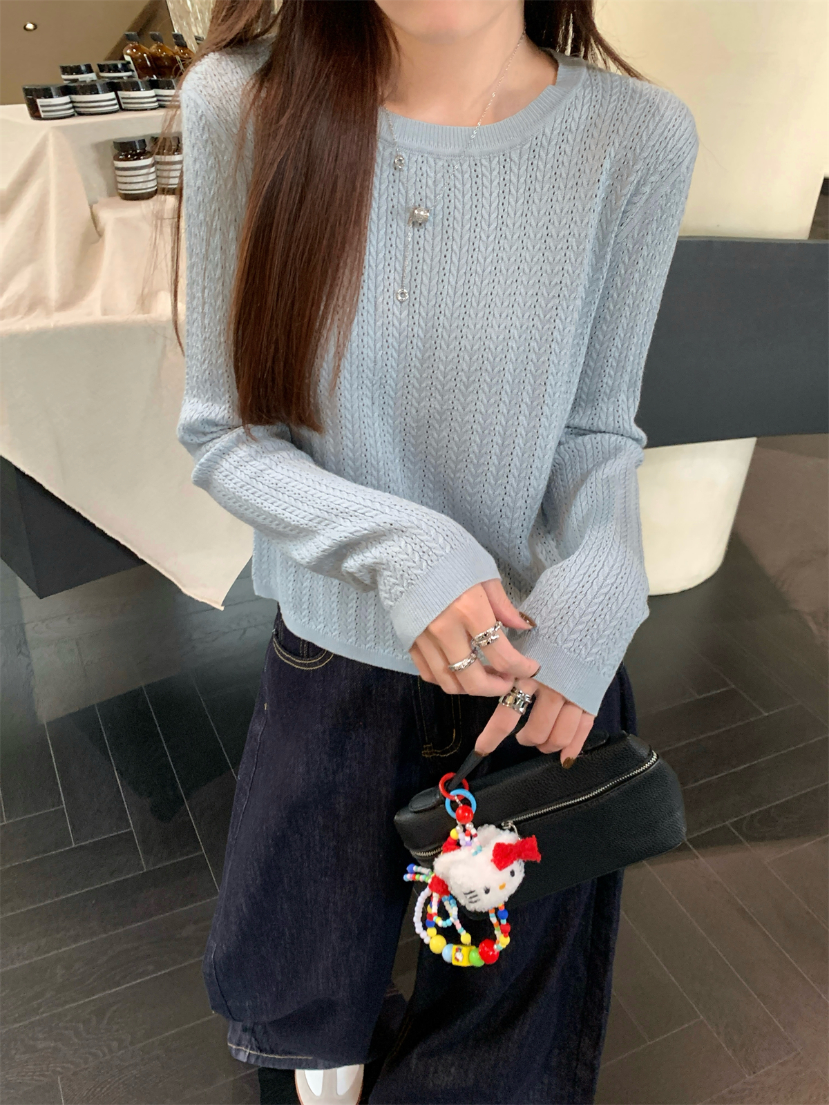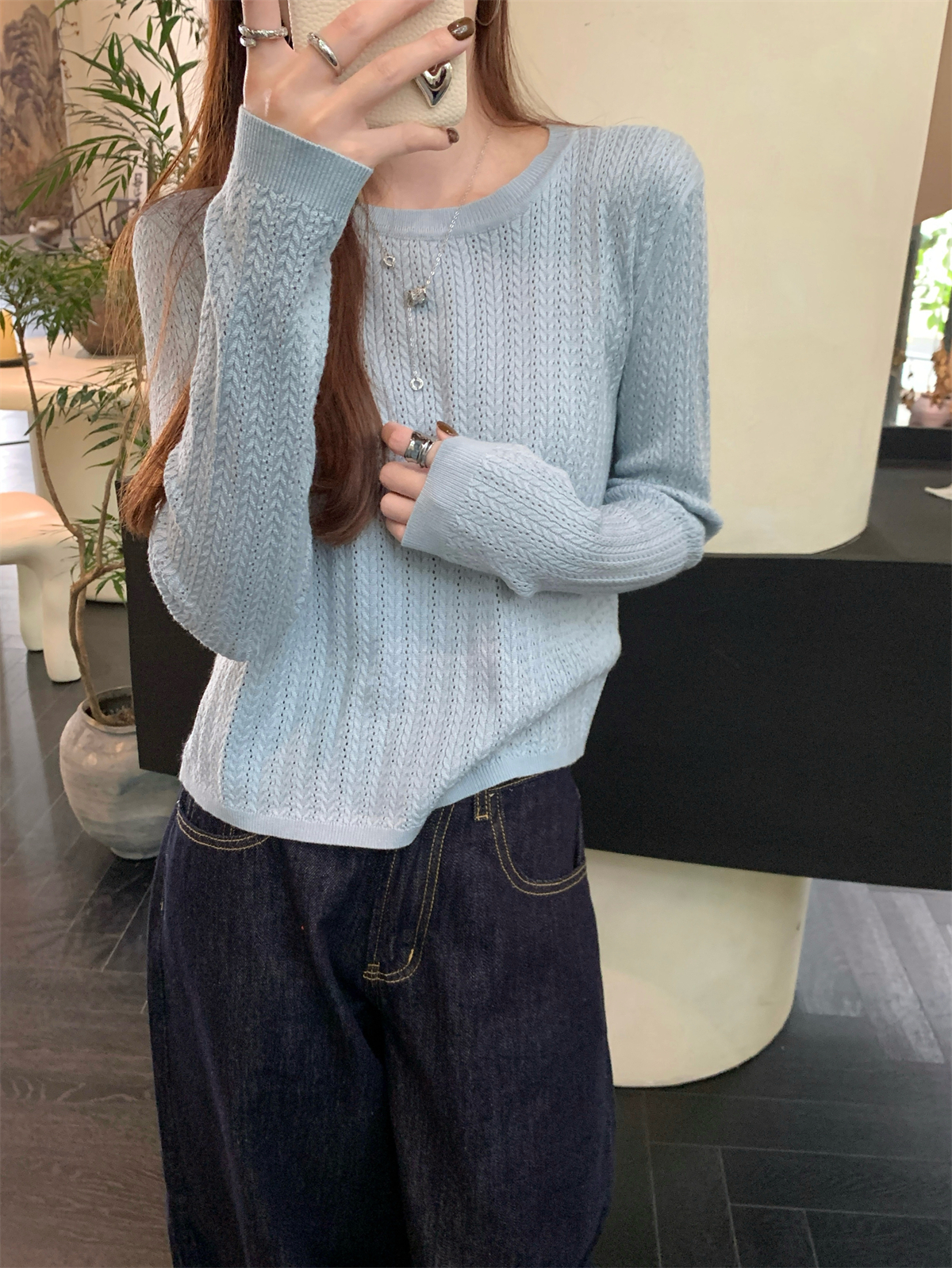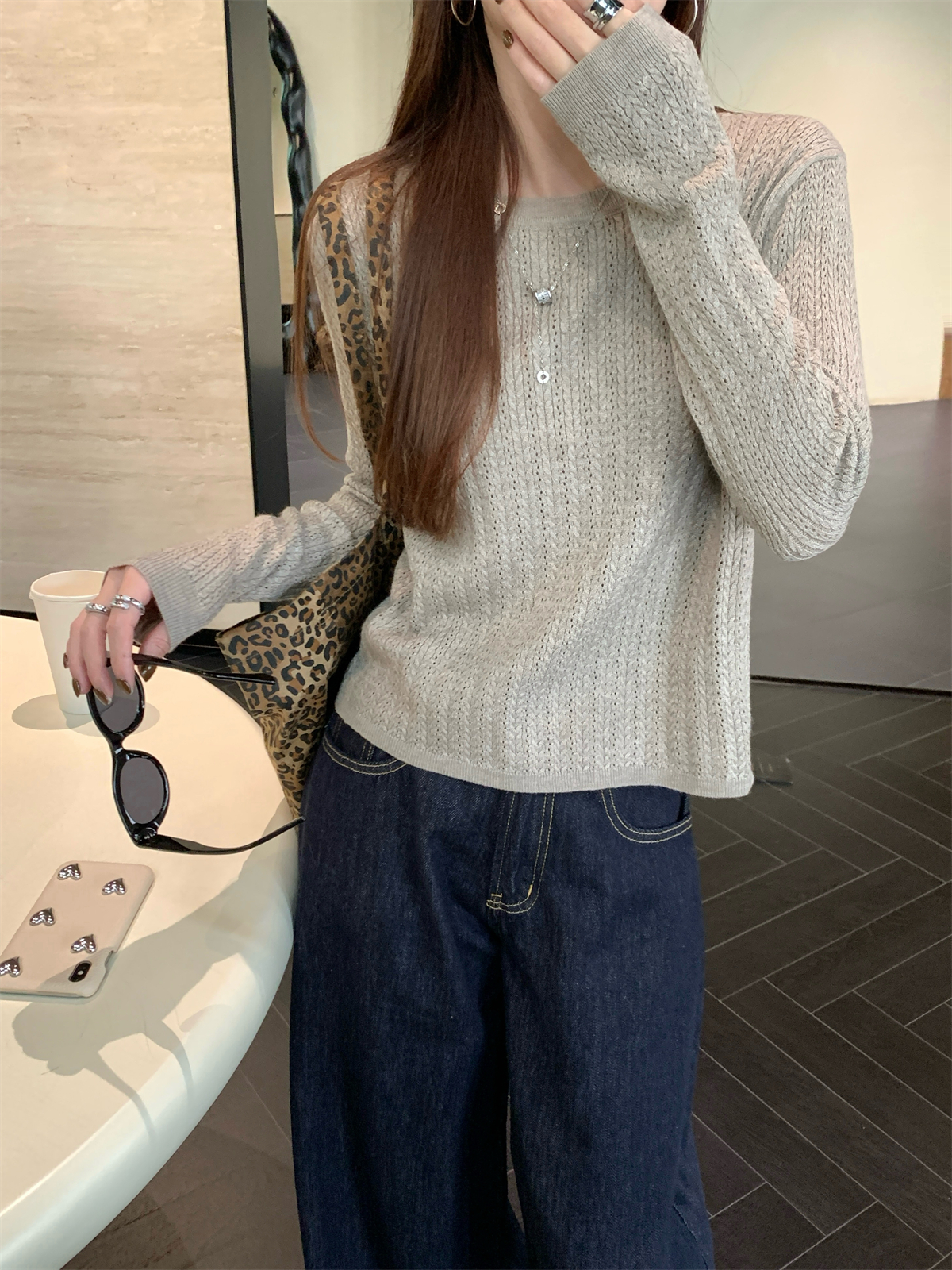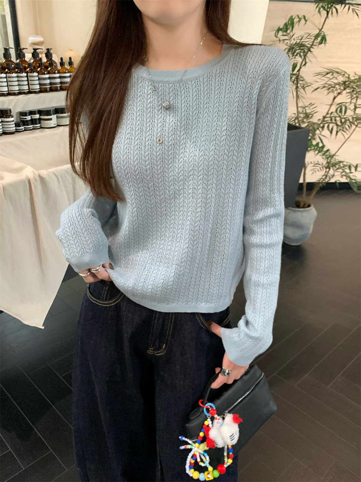 2024新款入秋韓系圓領打底衫女內搭毛衣高級感秋冬長袖針織衫上衣