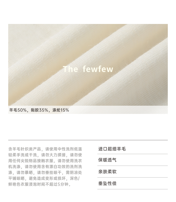羊毛50% 粘膠纖維(粘纖)35% 聚對苯二甲酸乙二酯(滌綸)15%