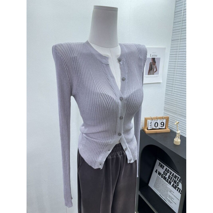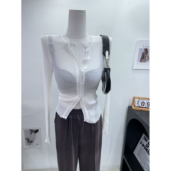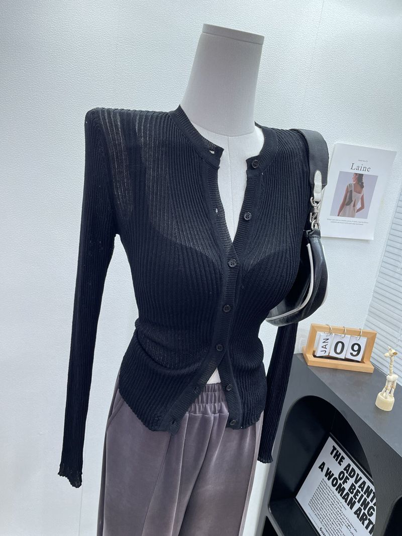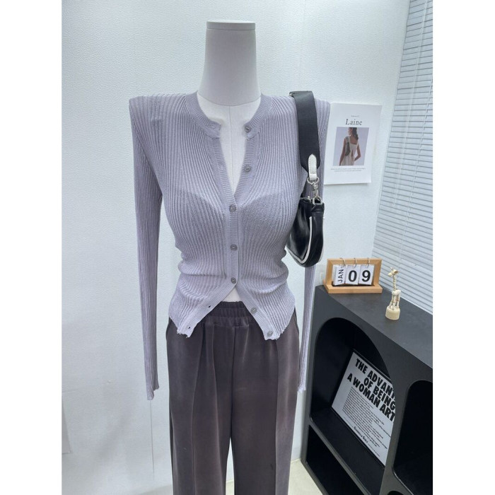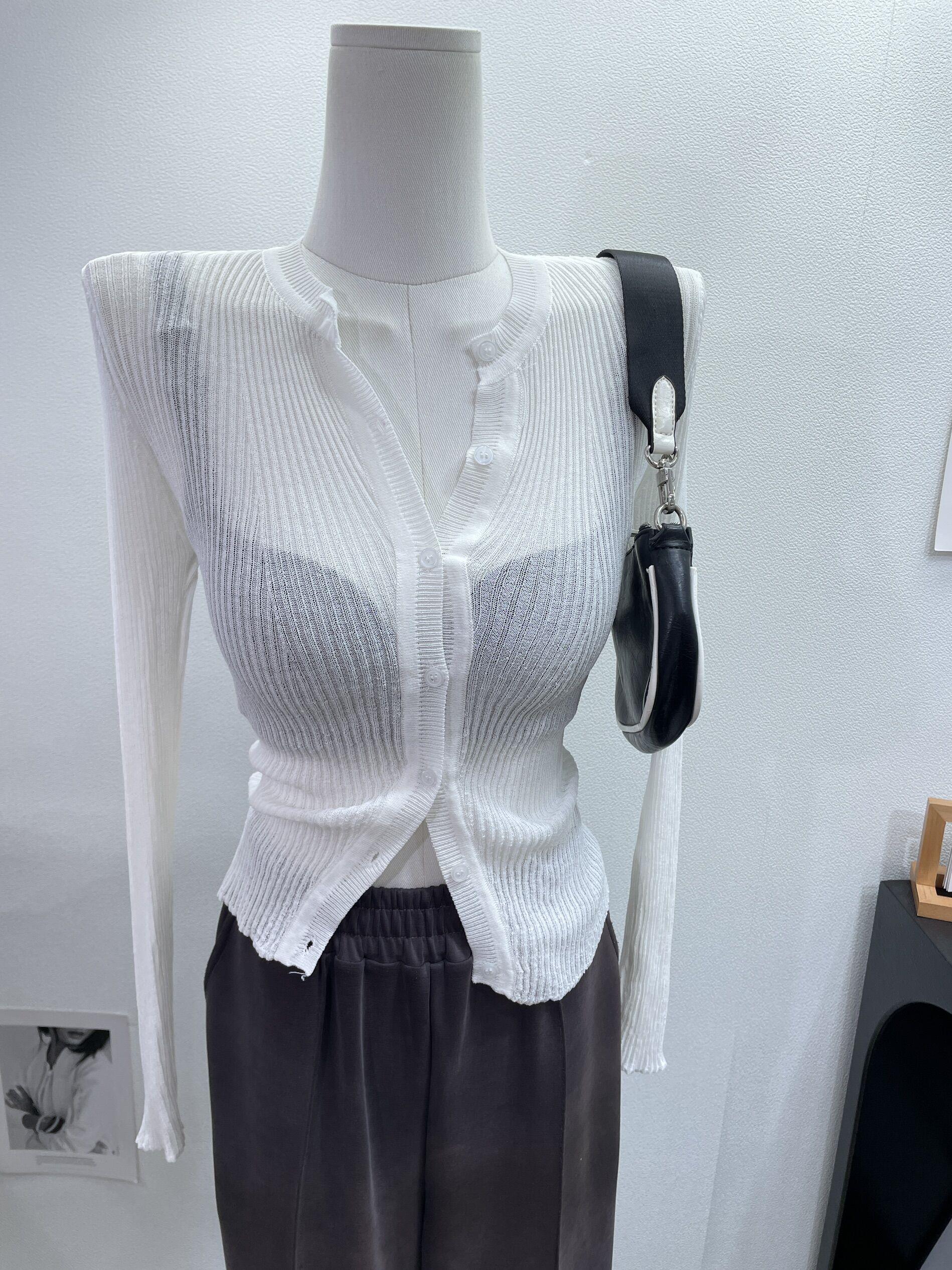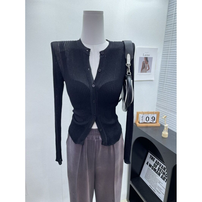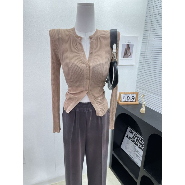 單穿or內搭!INS洋氣單排釦長袖針織衫上衣女薄款修身顯瘦打底衫