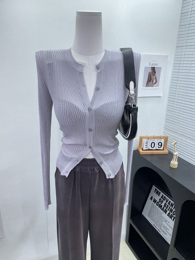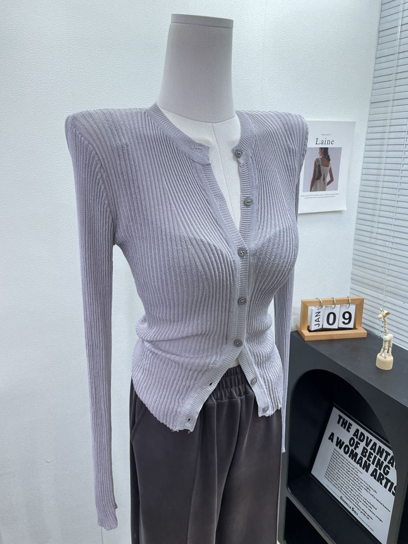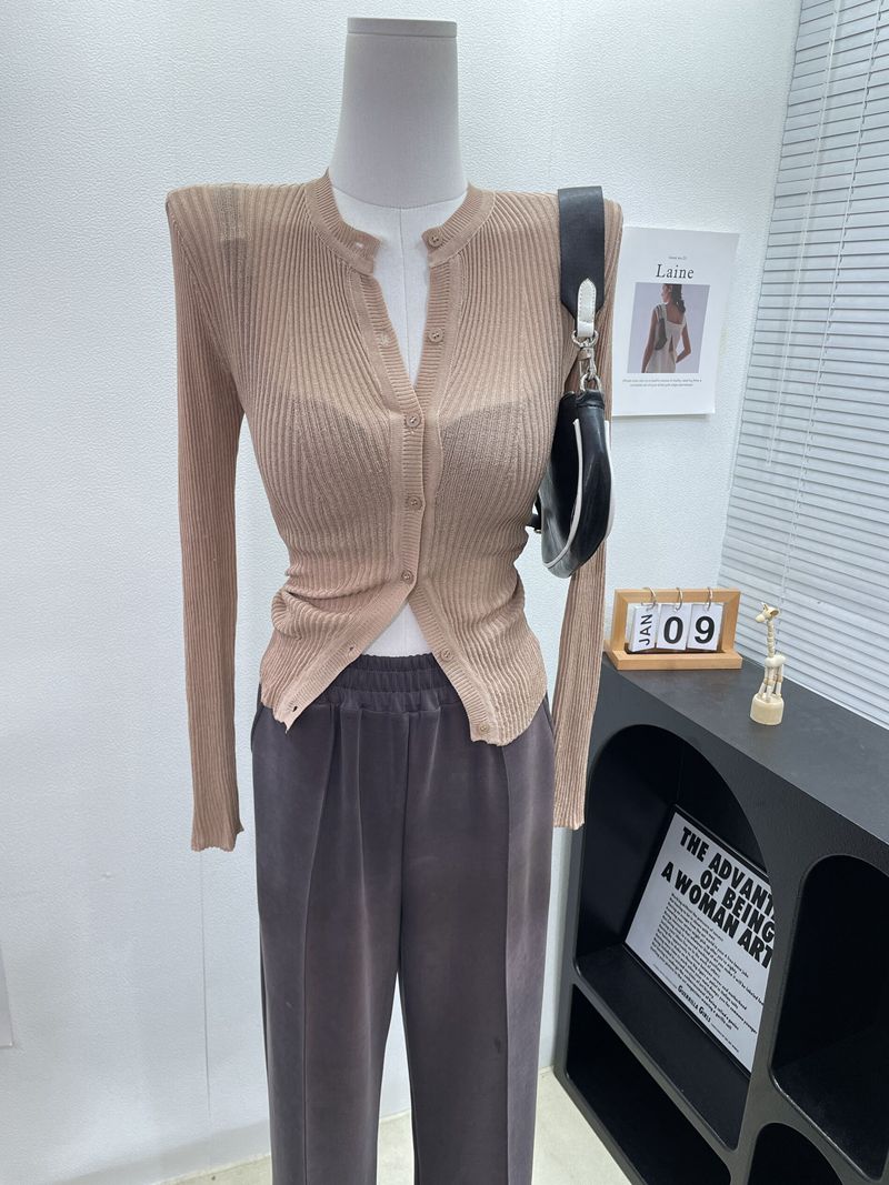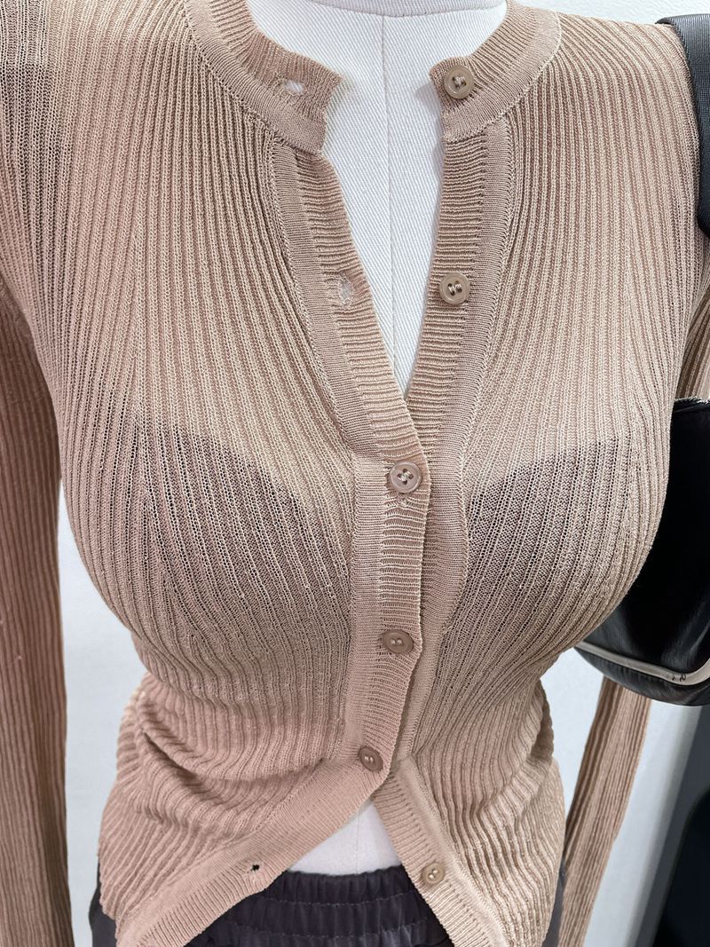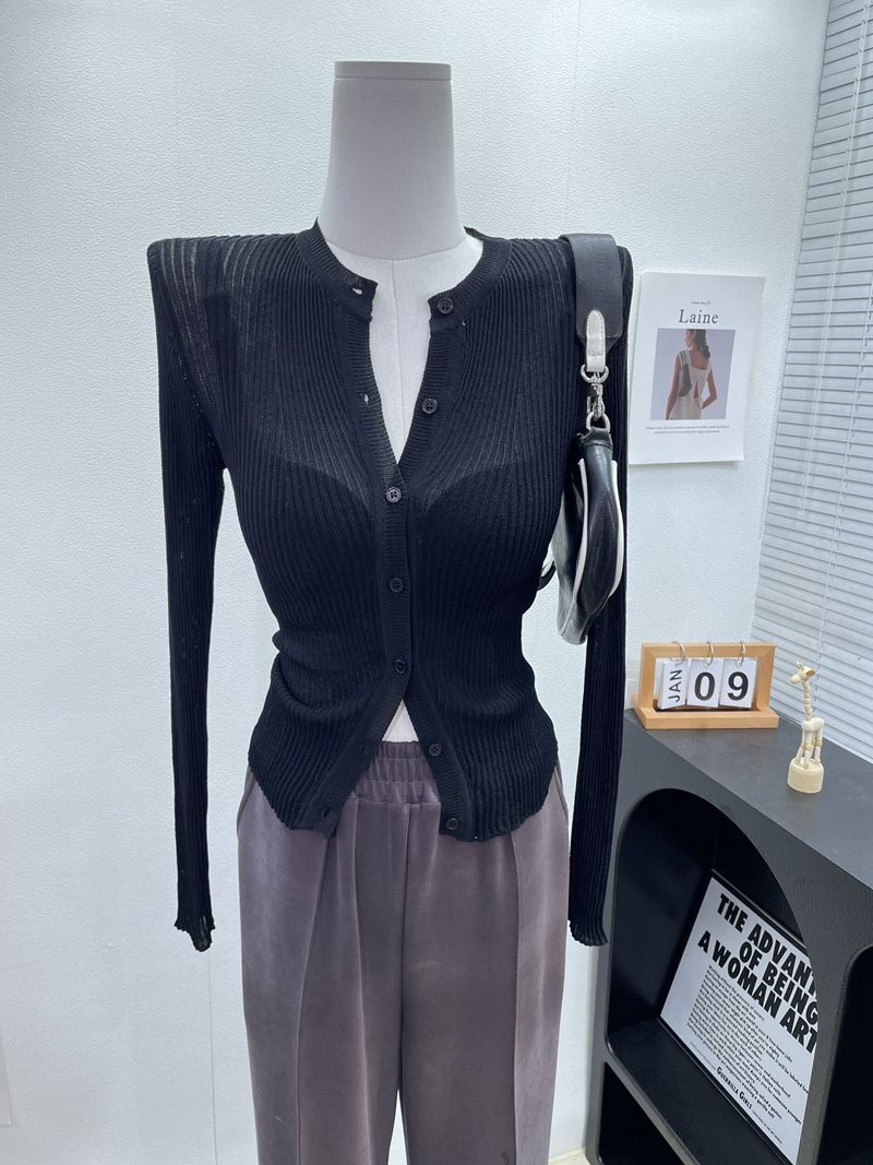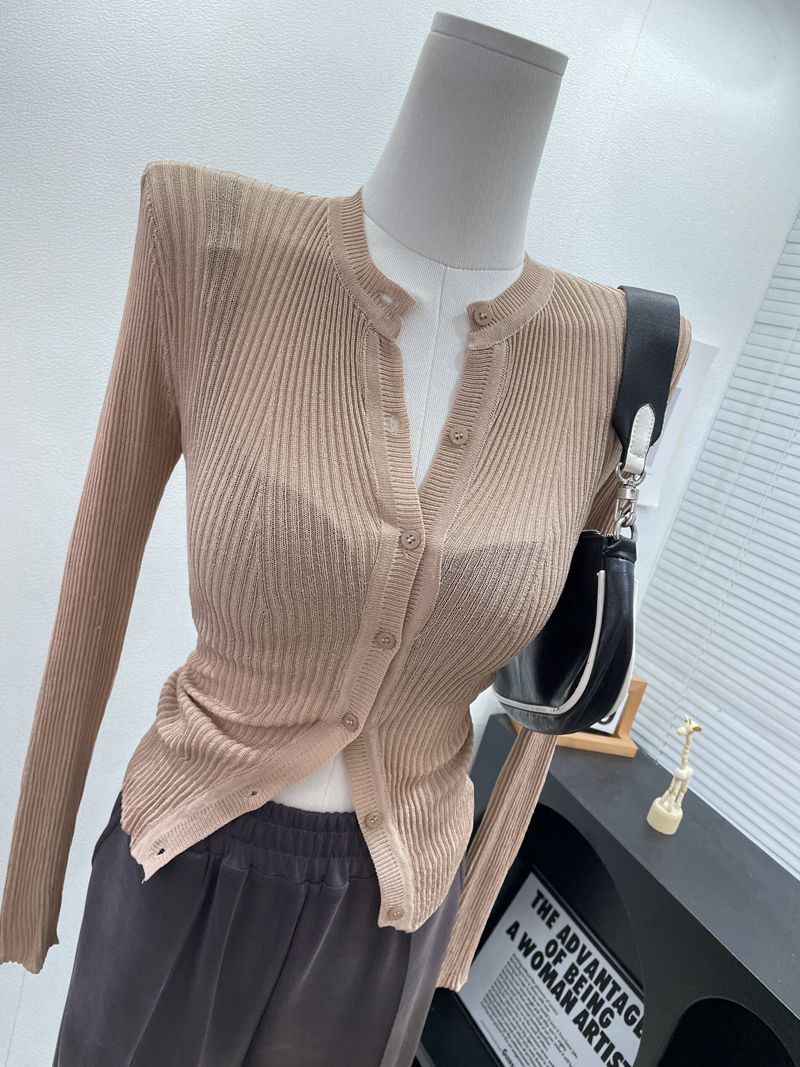 單穿or內搭!INS洋氣單排釦長袖針織衫上衣女薄款修身顯瘦打底衫