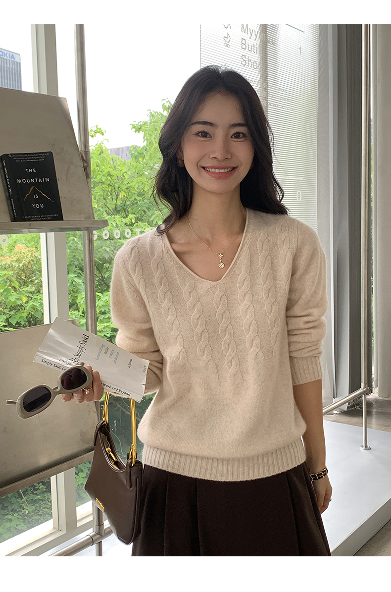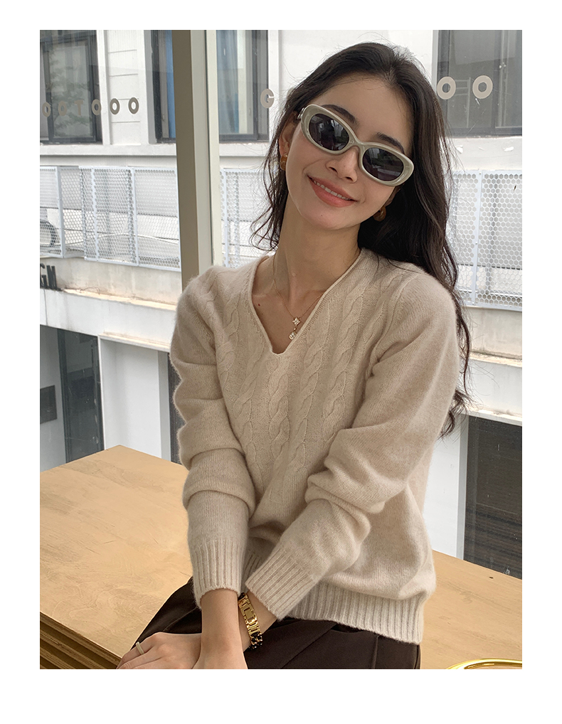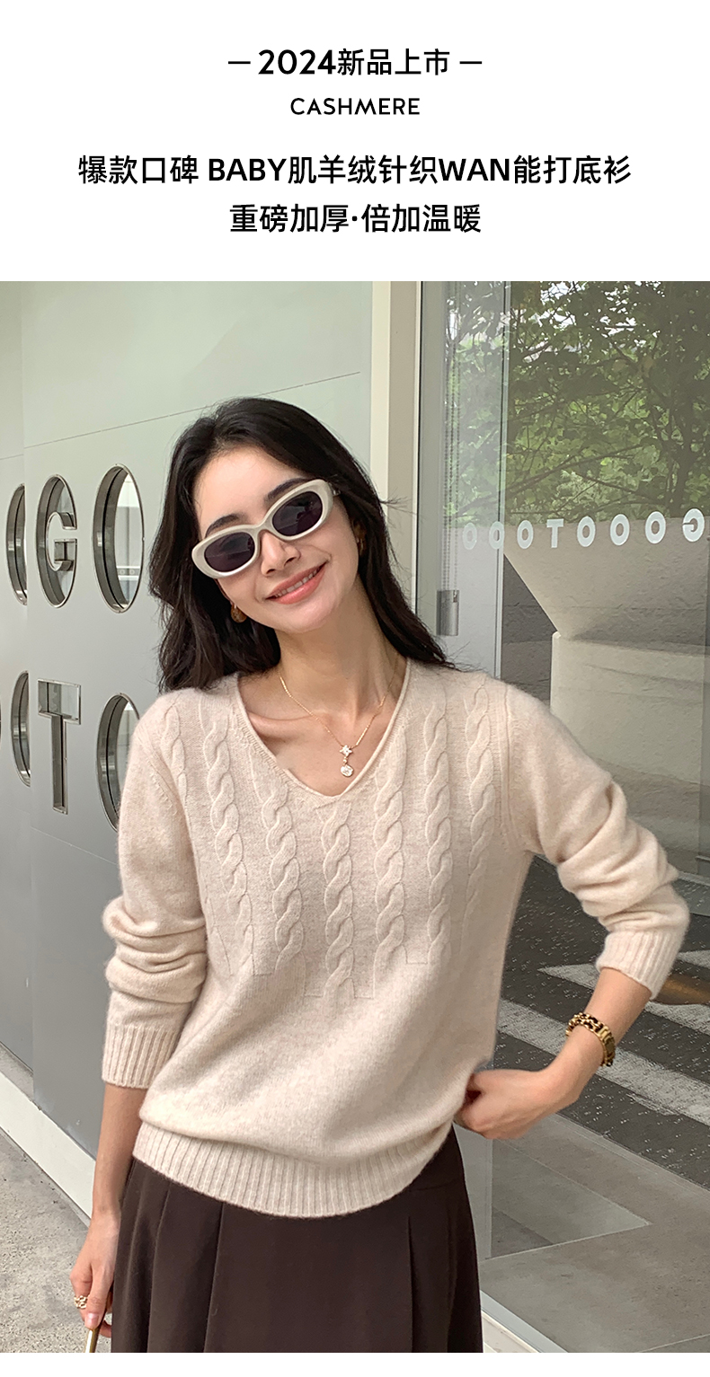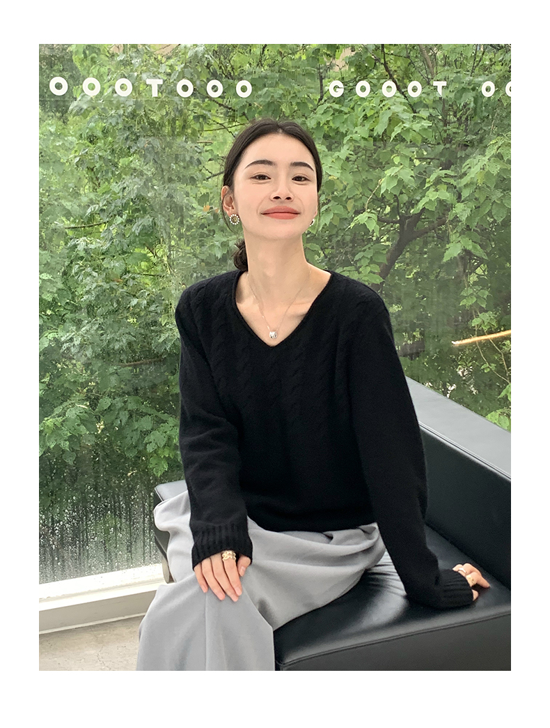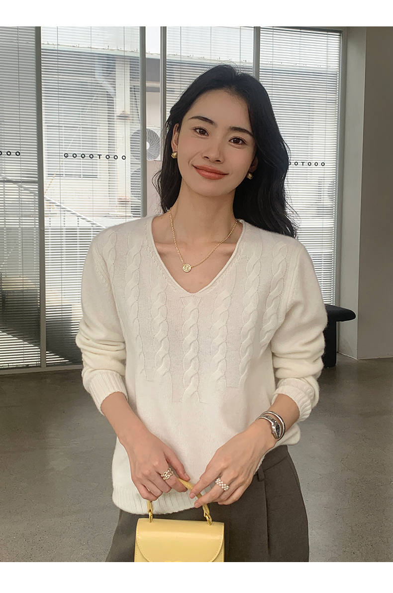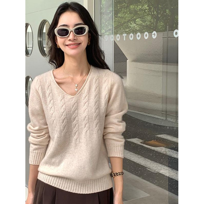 匠心好穿!加厚V領麻花羊絨衫毛衣女秋冬寬松套頭保暖長袖打底衫