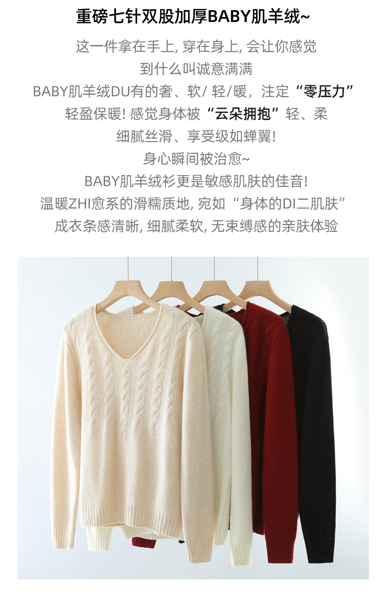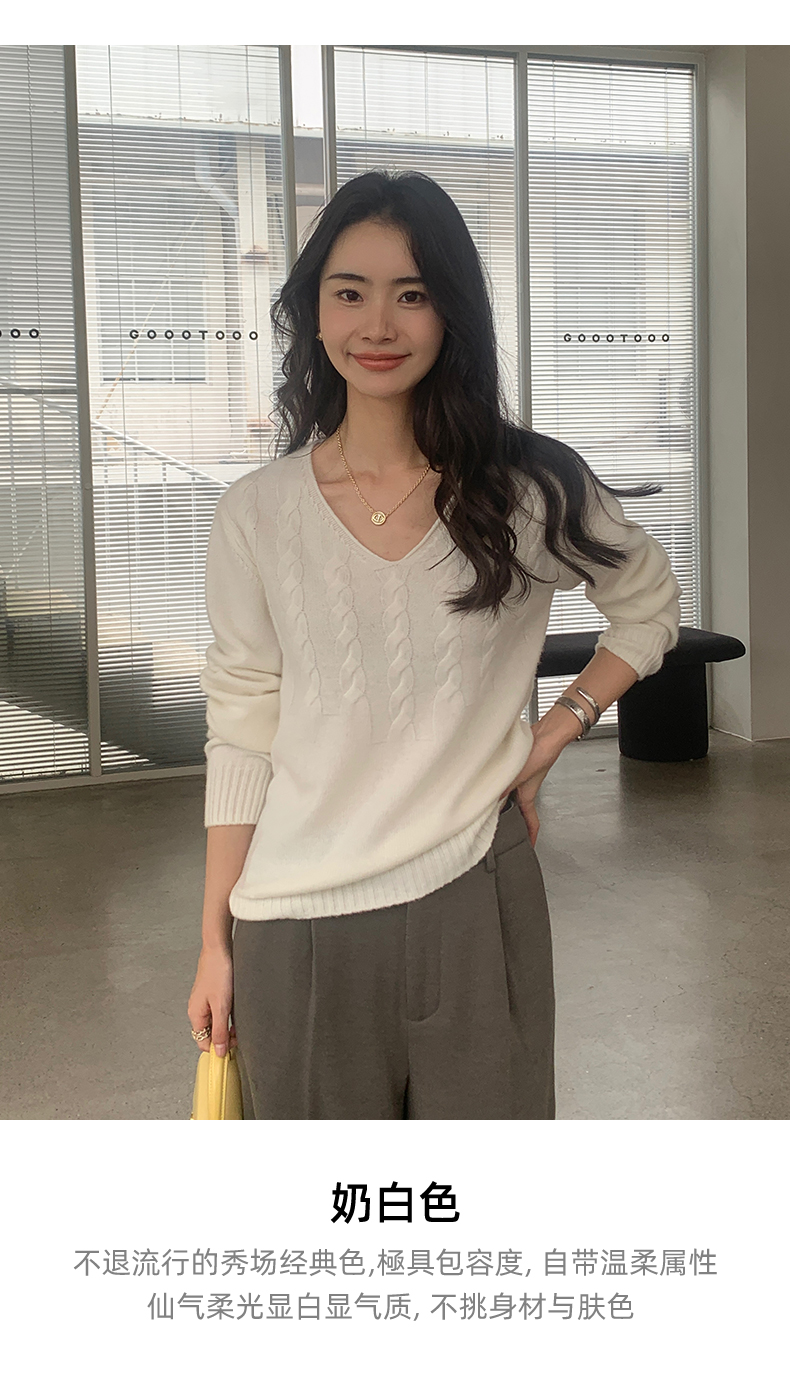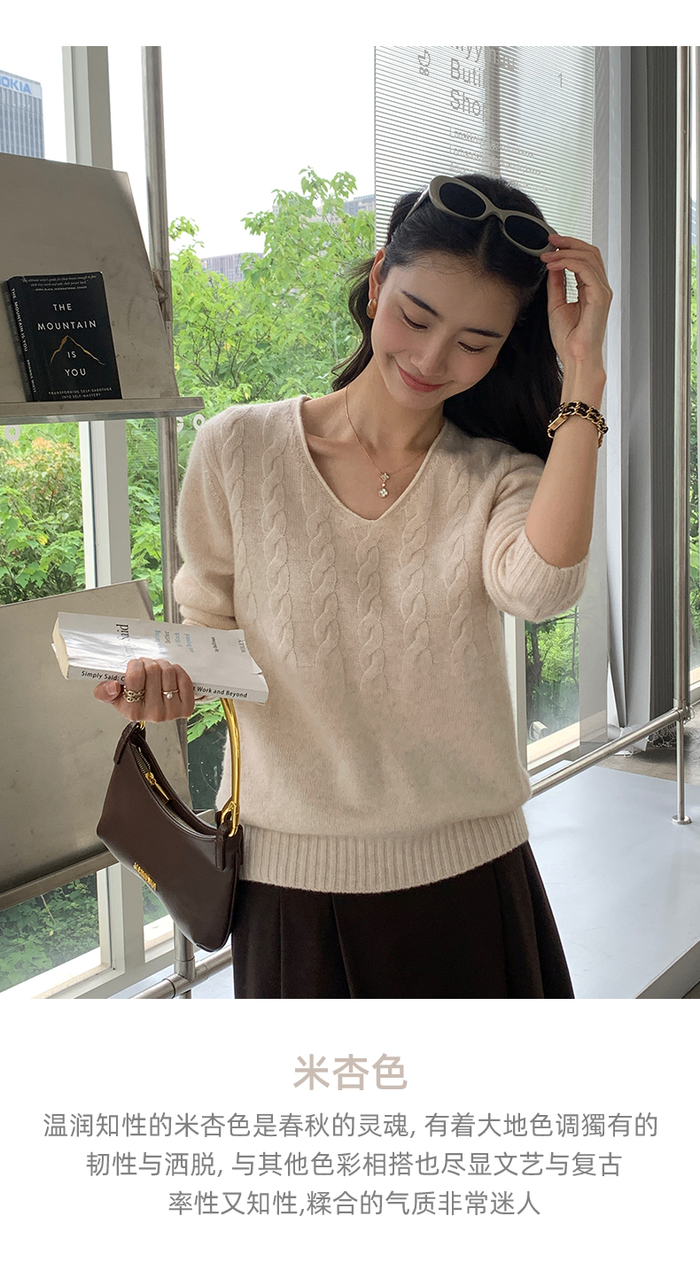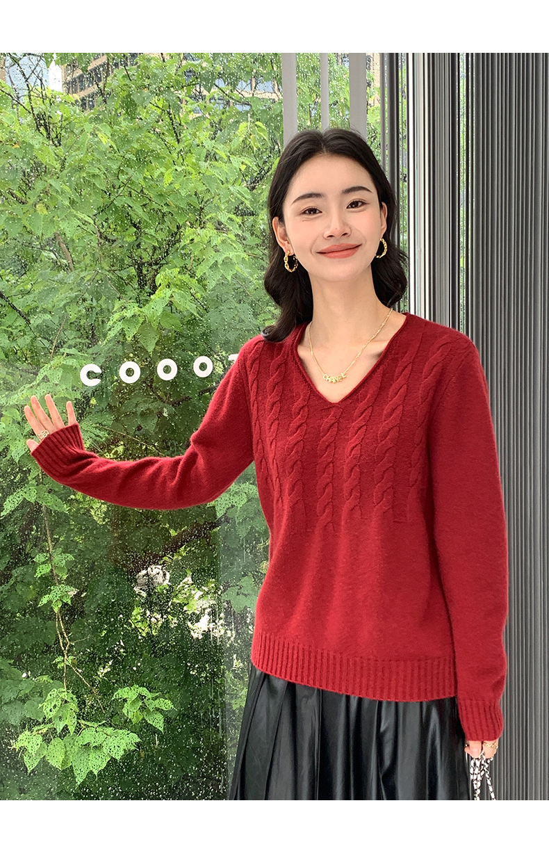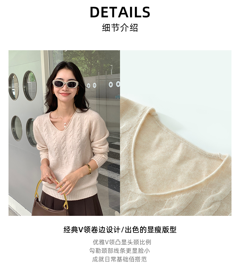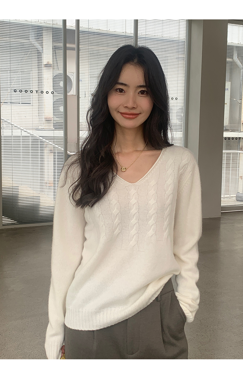 匠心好穿!加厚V領麻花羊絨衫毛衣女秋冬寬松套頭保暖長袖打底衫