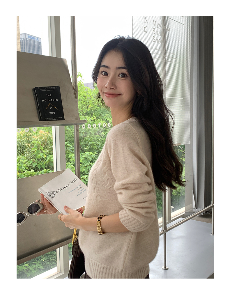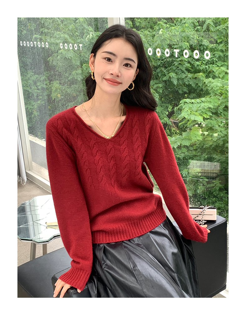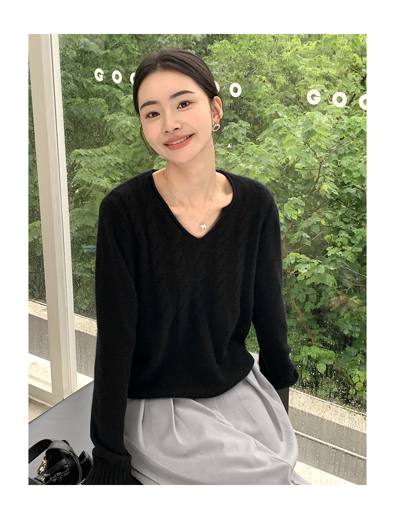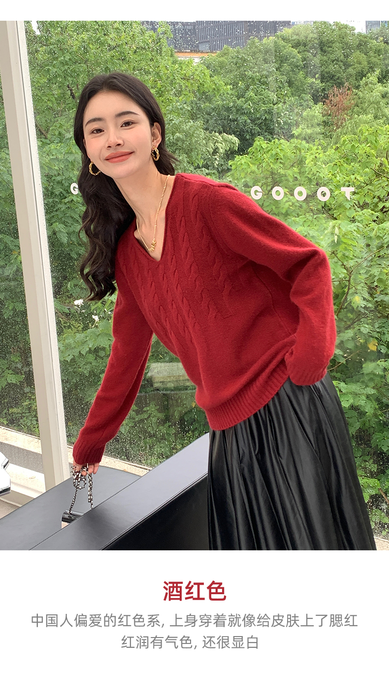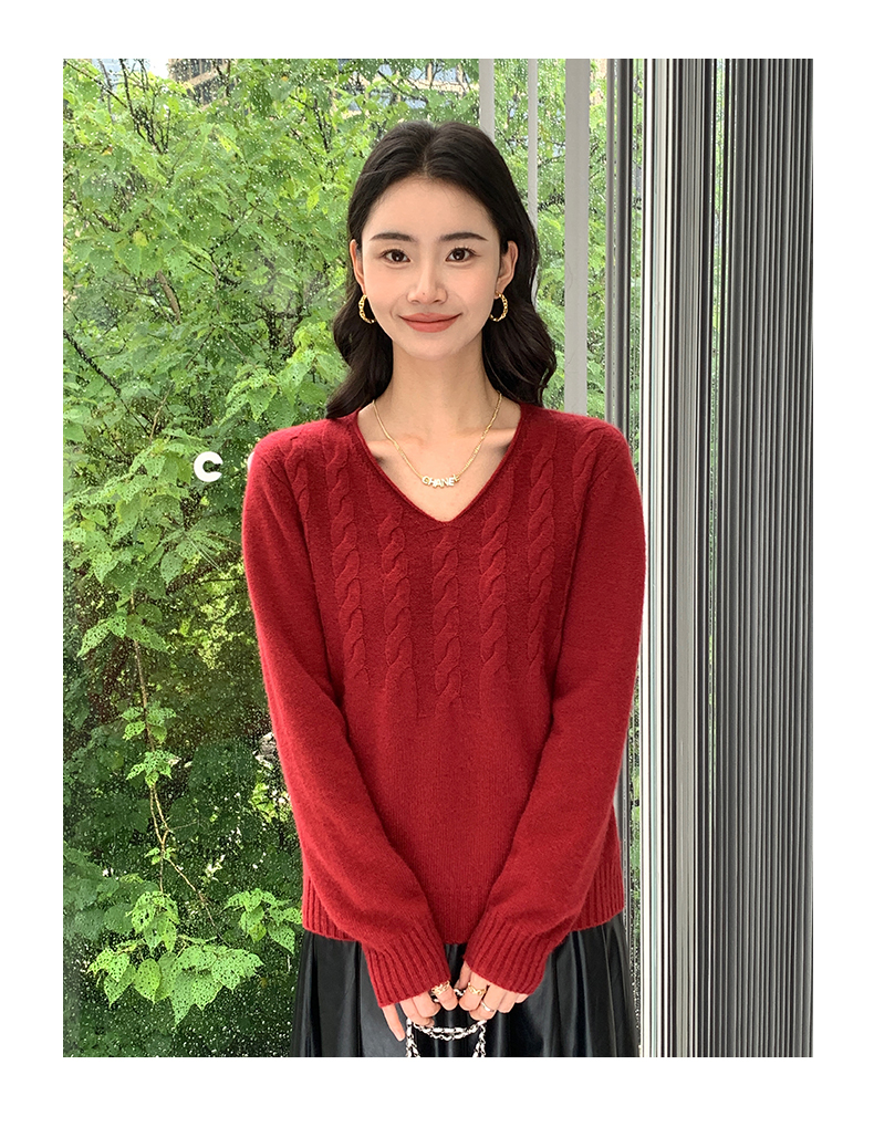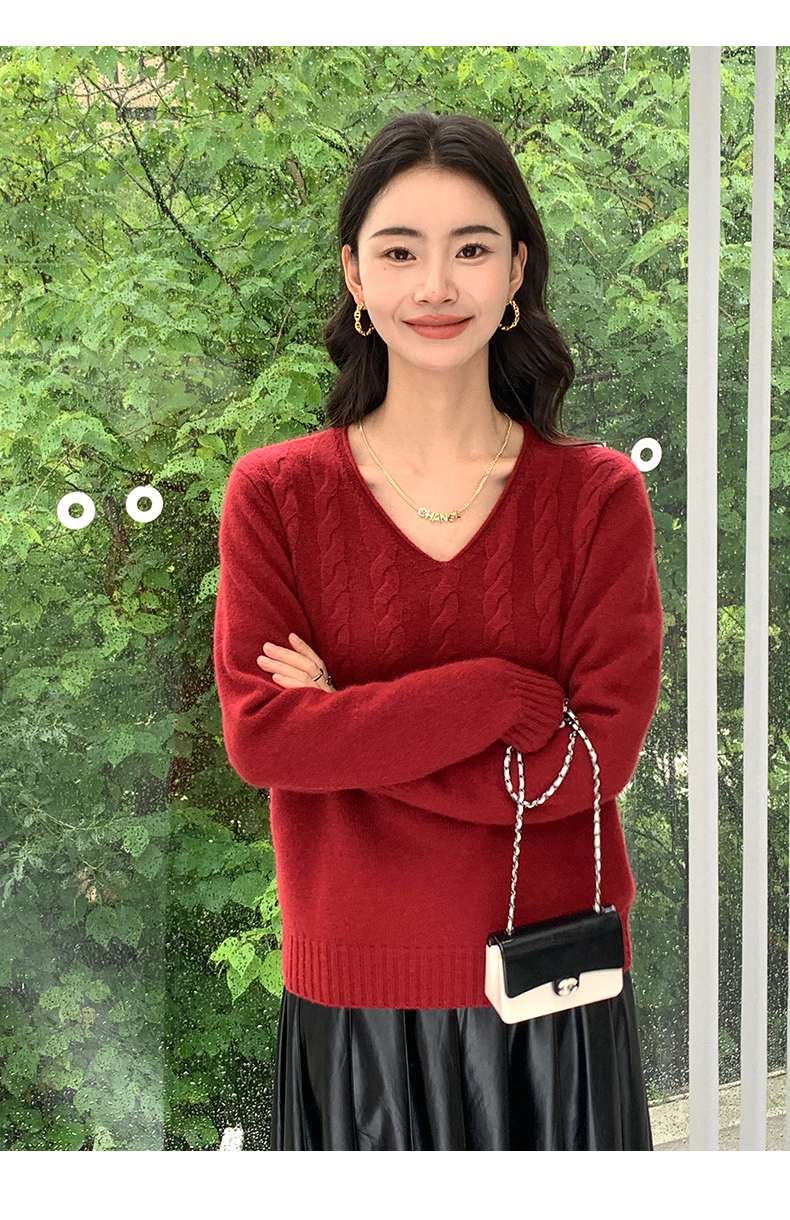 匠心好穿!加厚V領麻花羊絨衫毛衣女秋冬寬松套頭保暖長袖打底衫