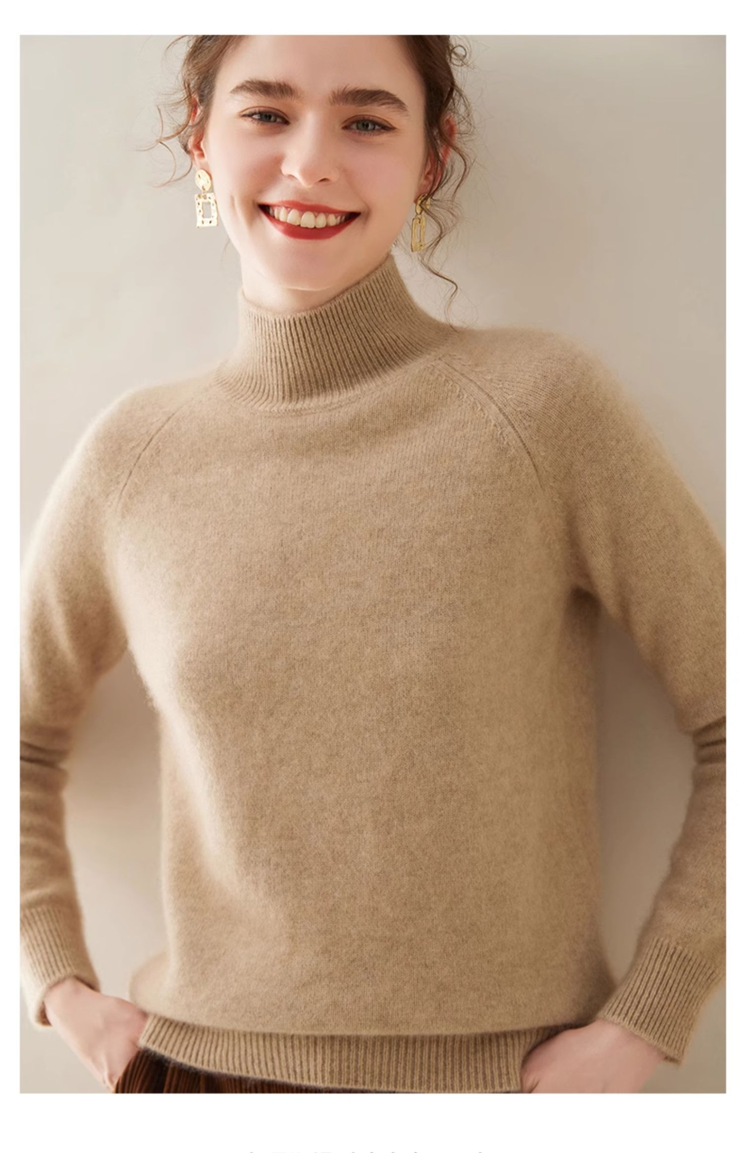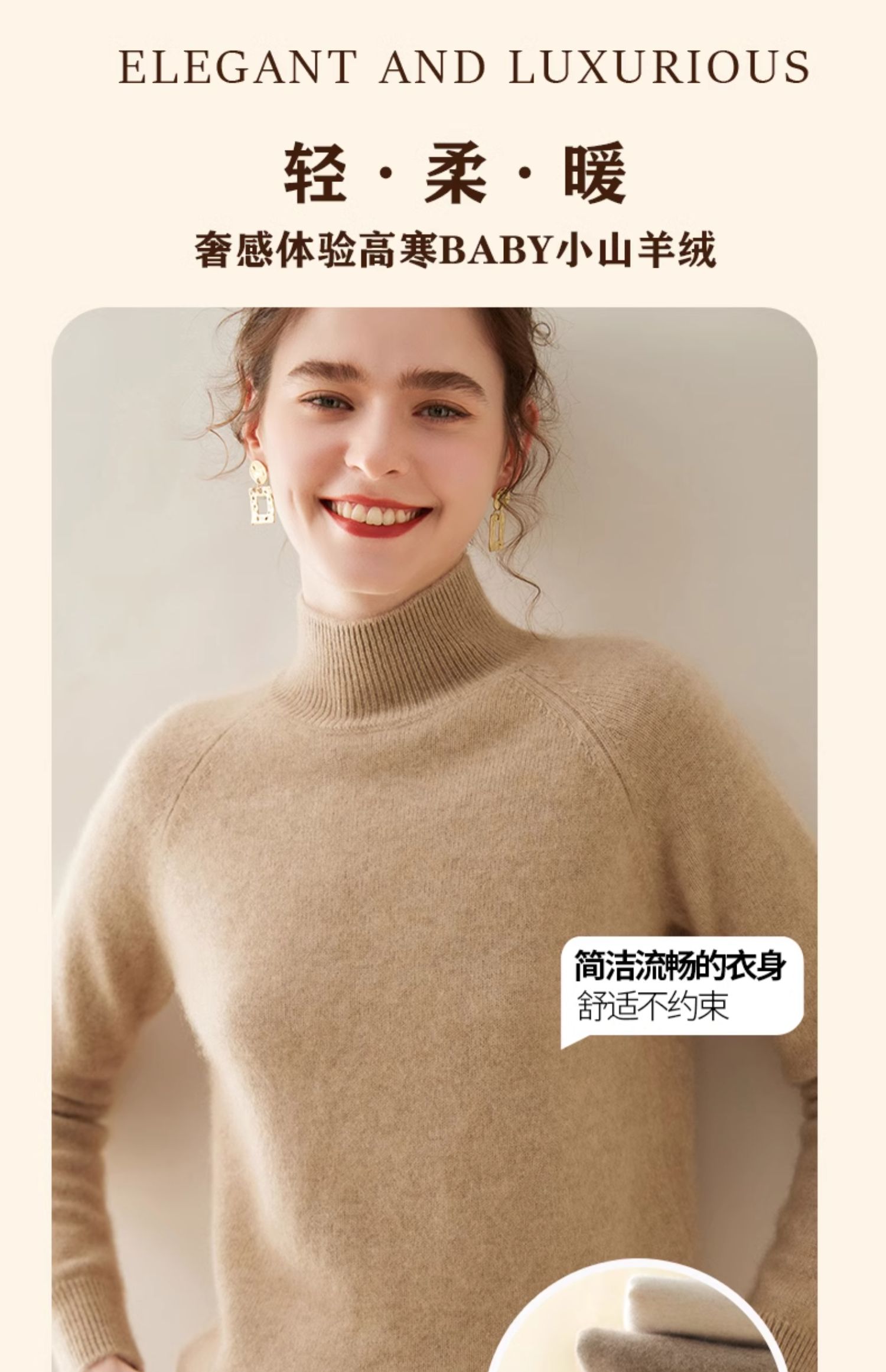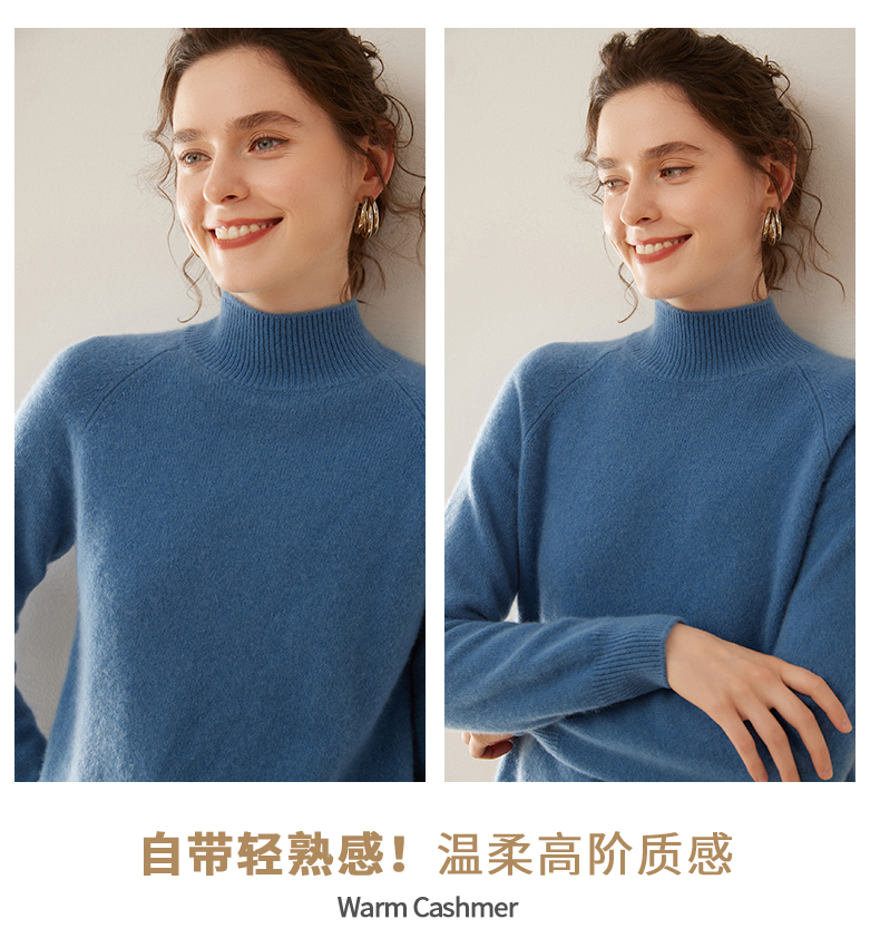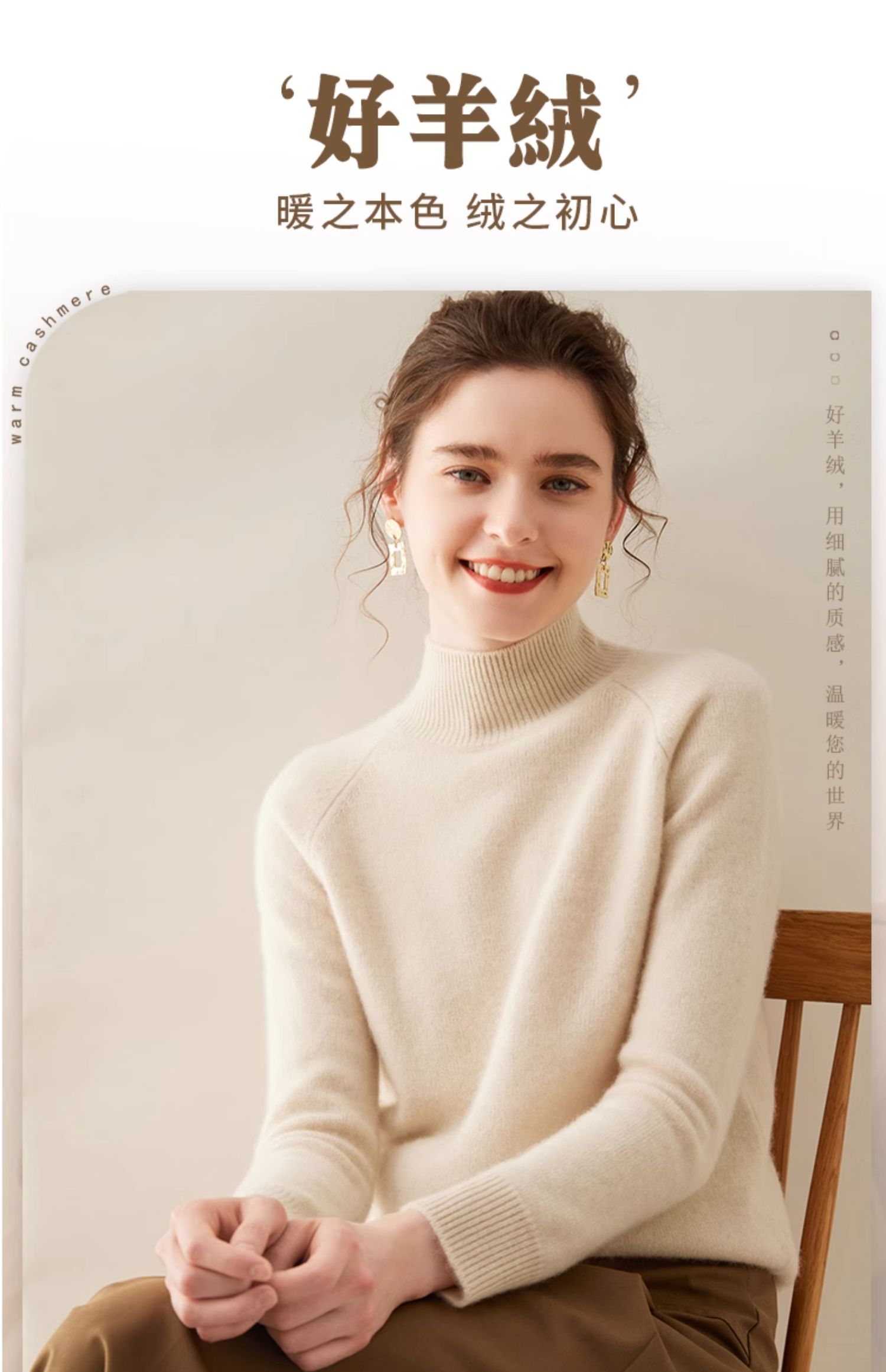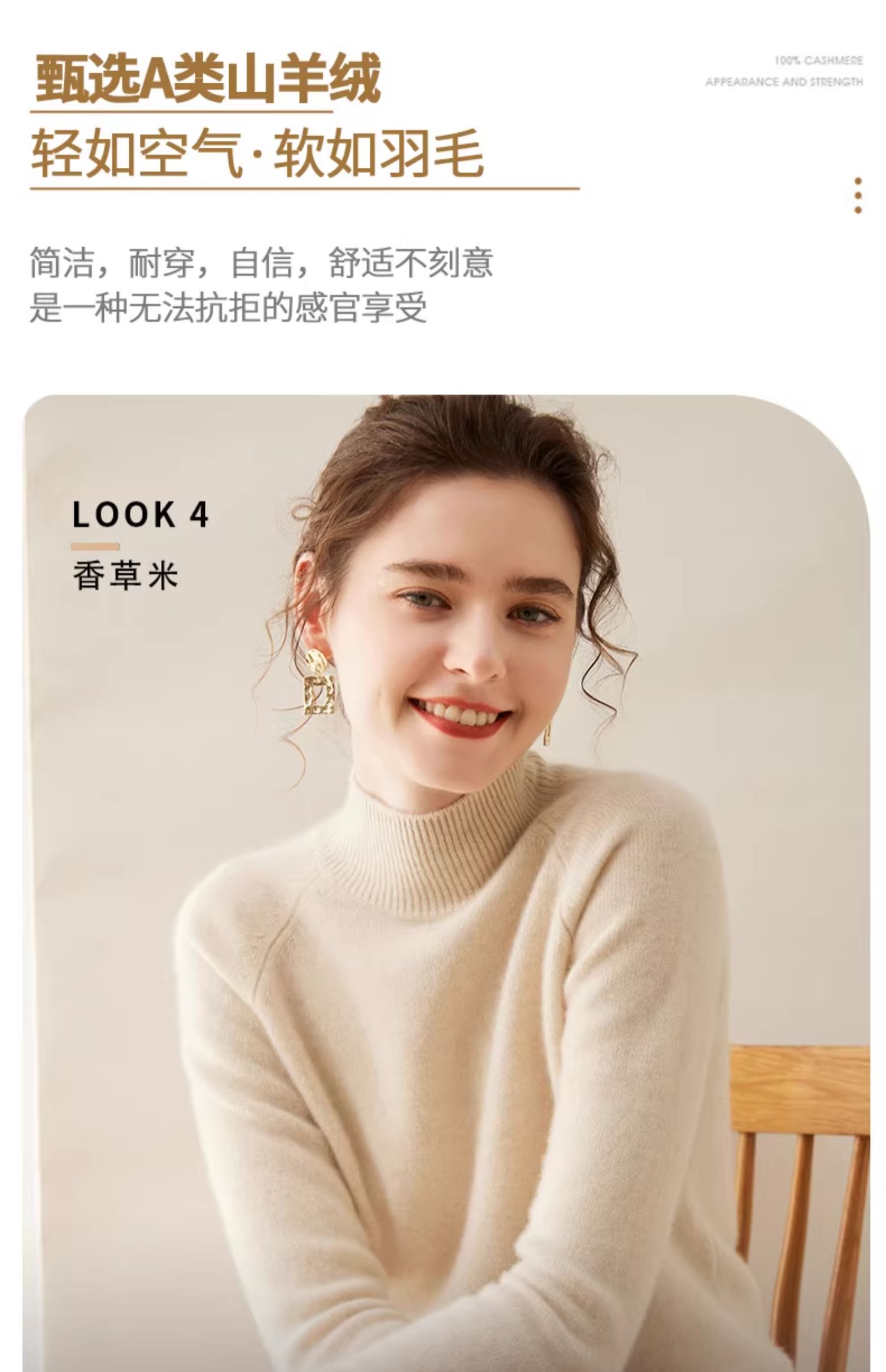 2024冬季新款半高領羊絨衫女加厚親膚山羊絨毛衣內搭針織衫打底衫