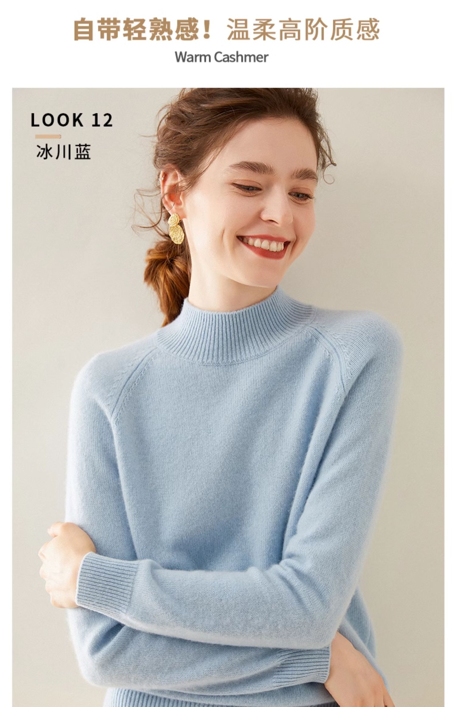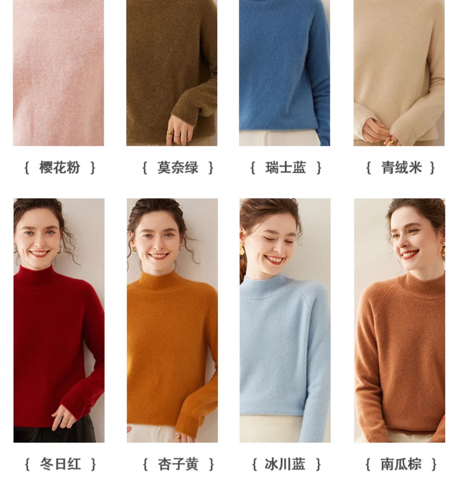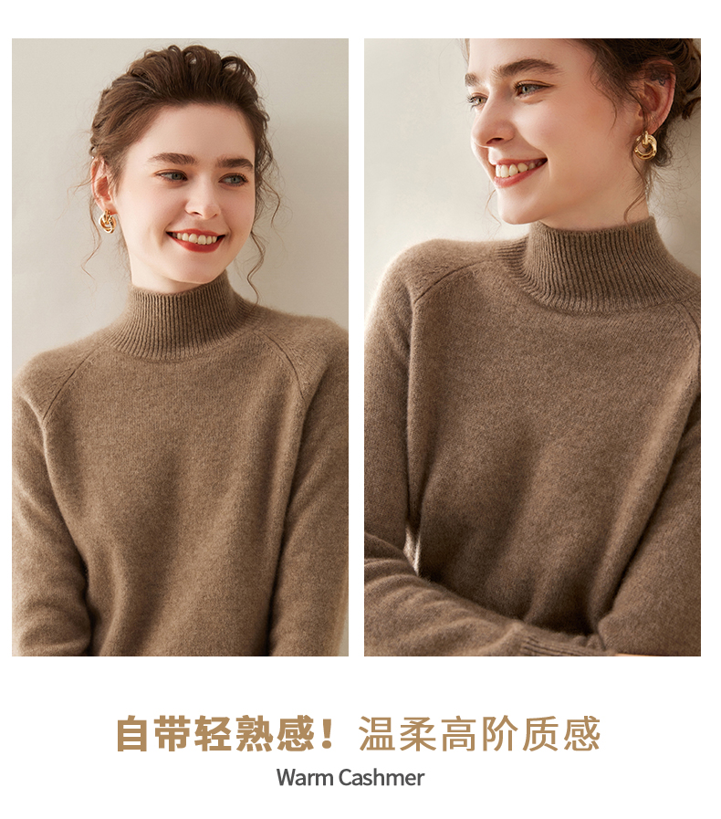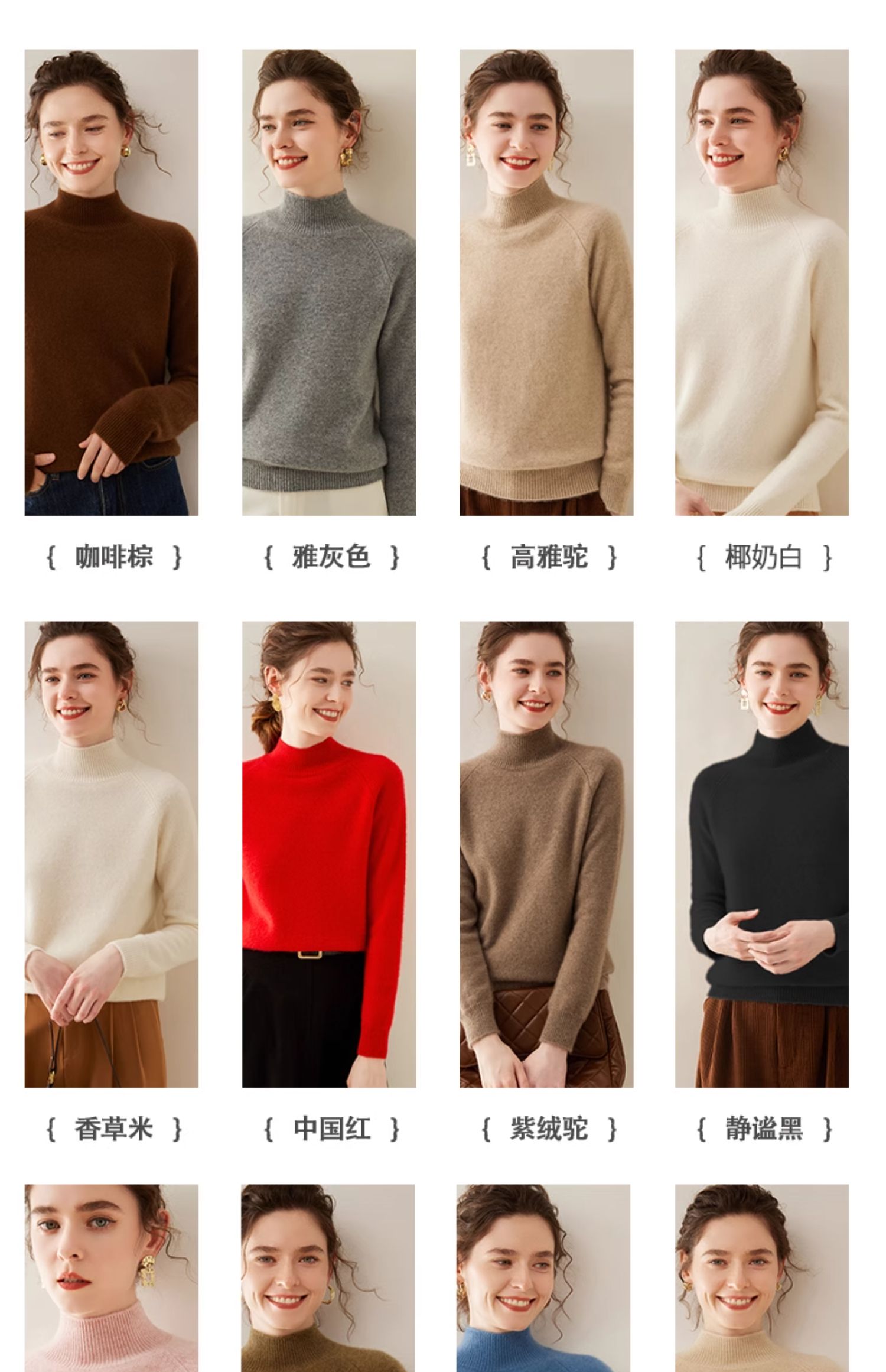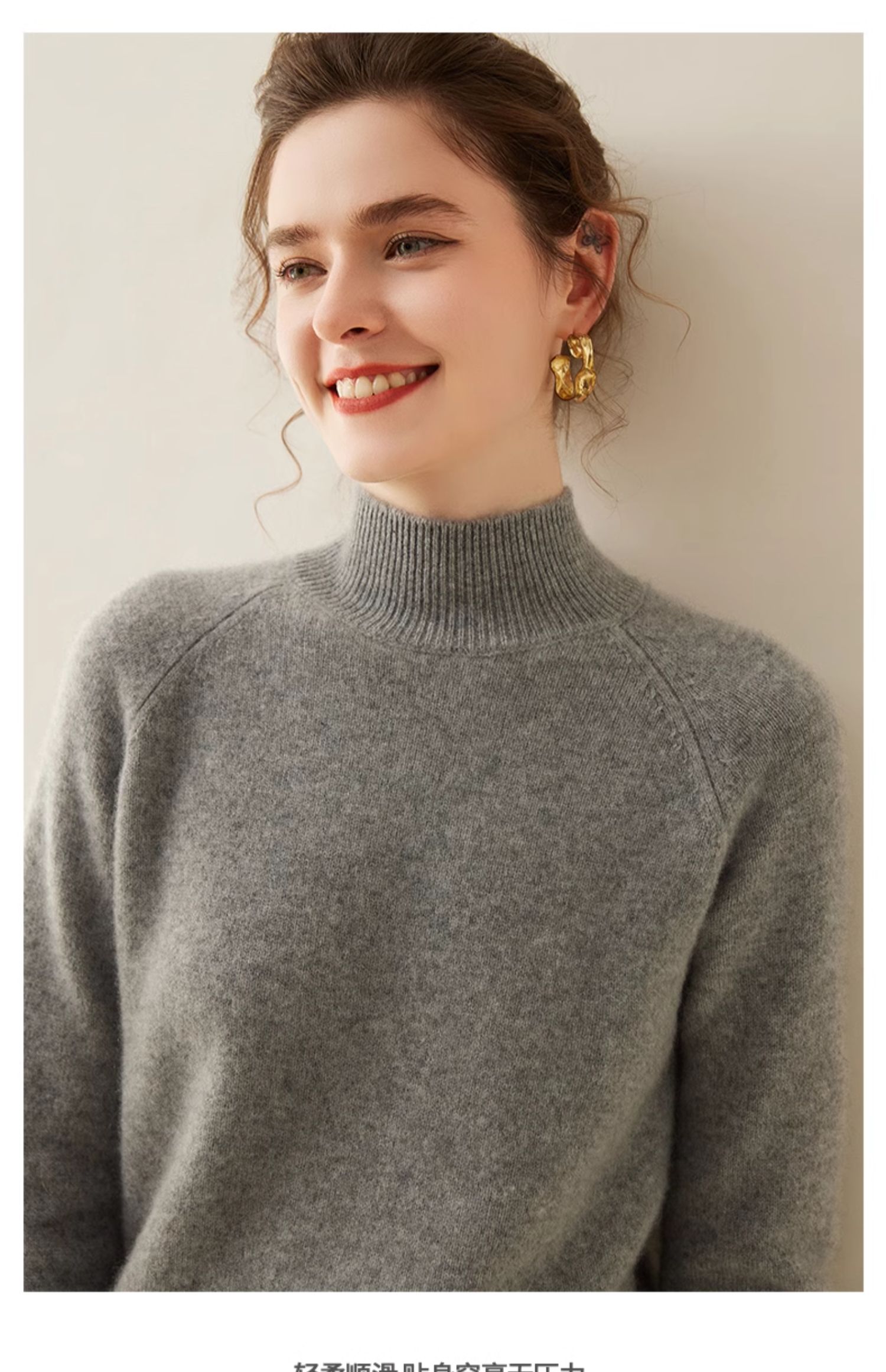 2024冬季新款半高領羊絨衫女加厚親膚山羊絨毛衣內搭針織衫打底衫
