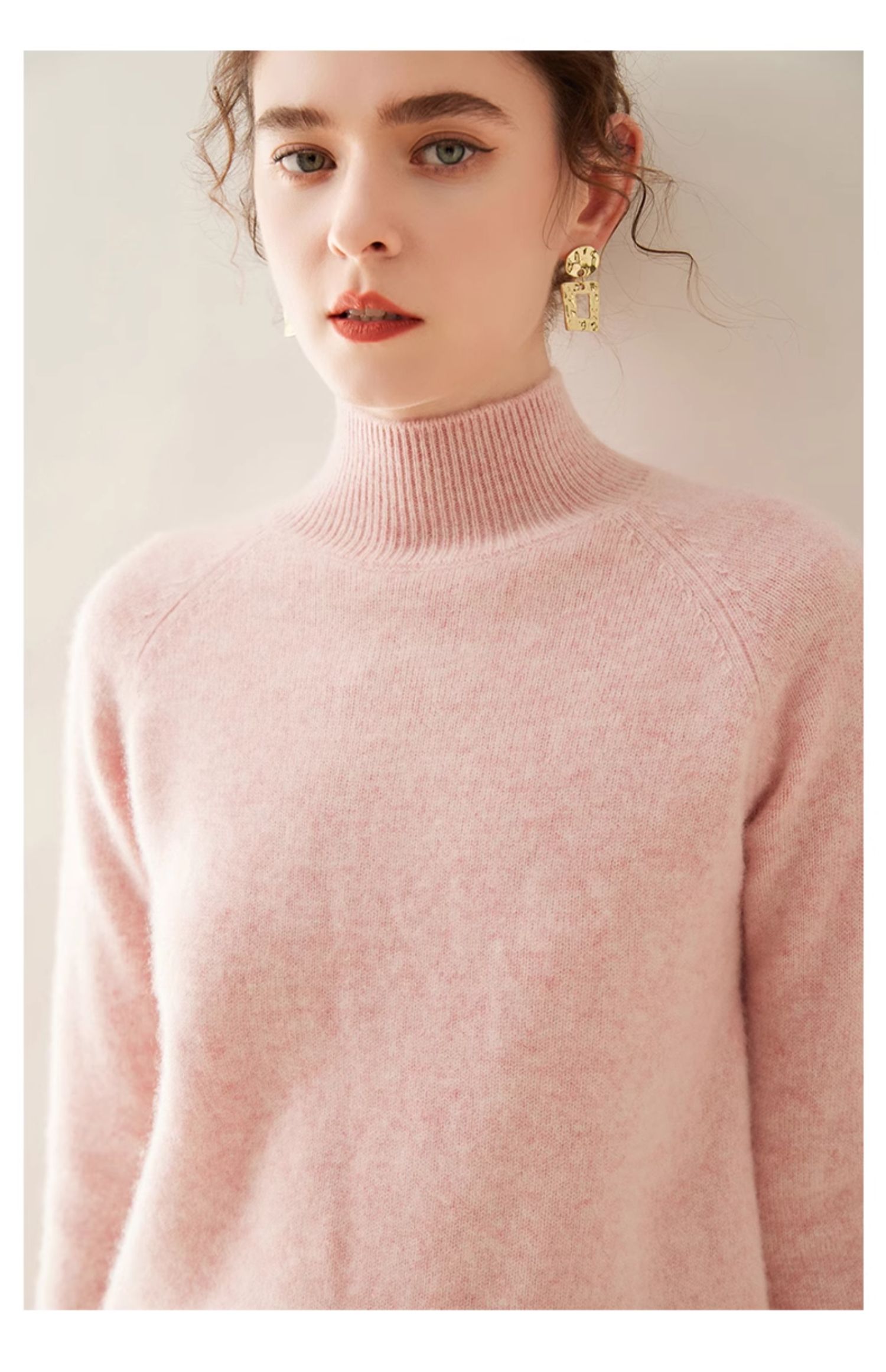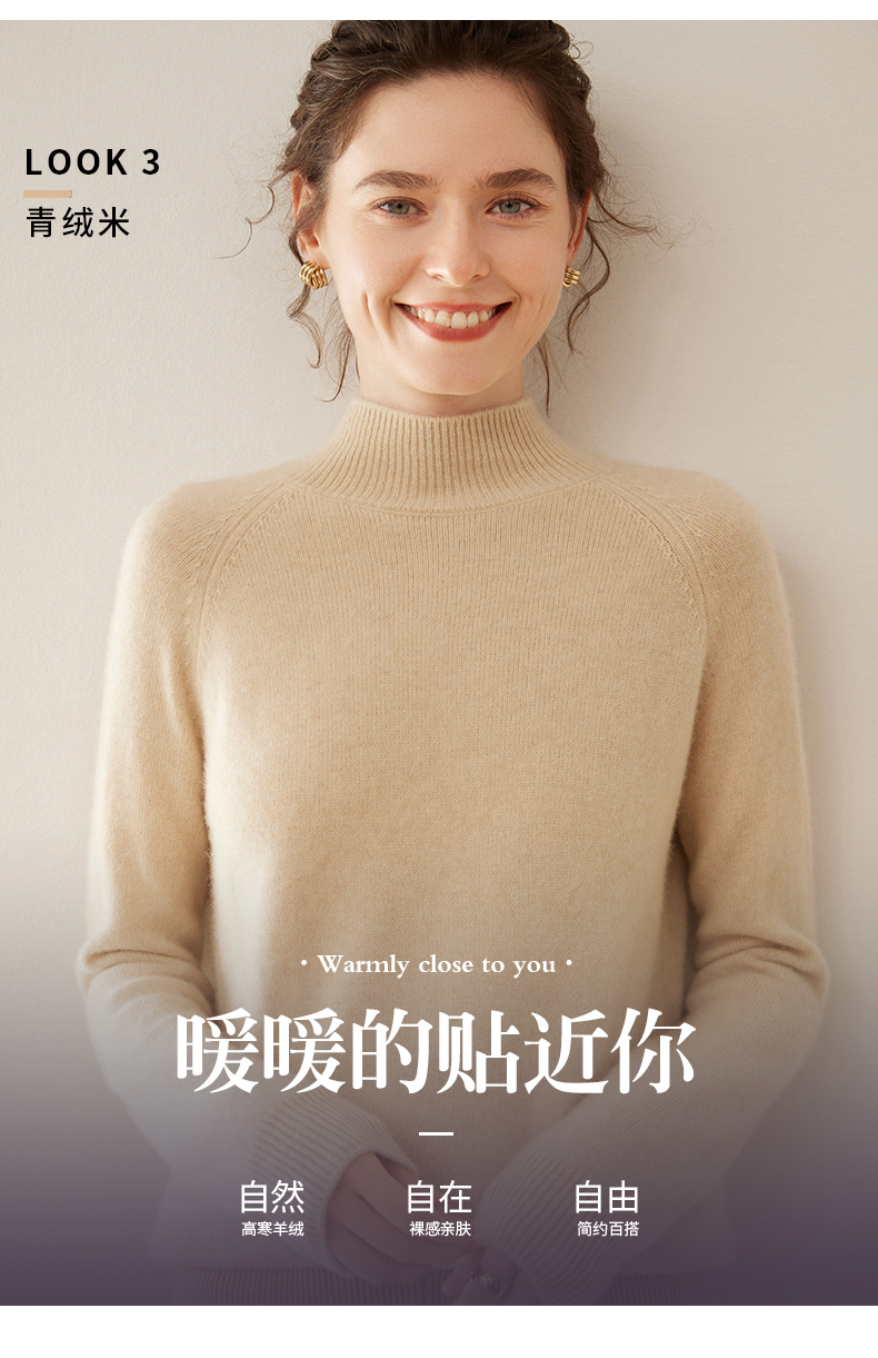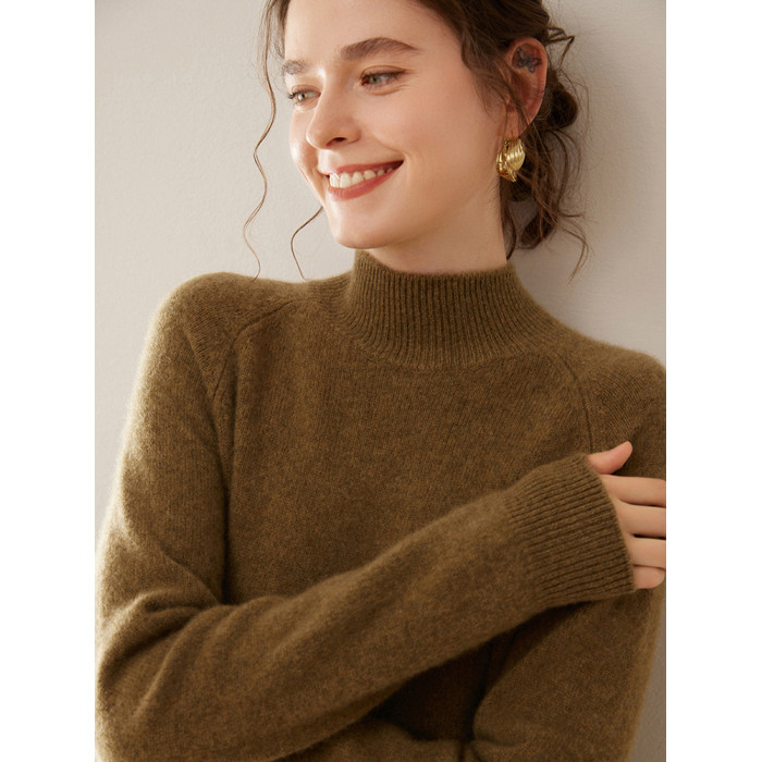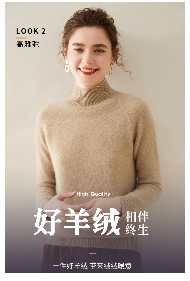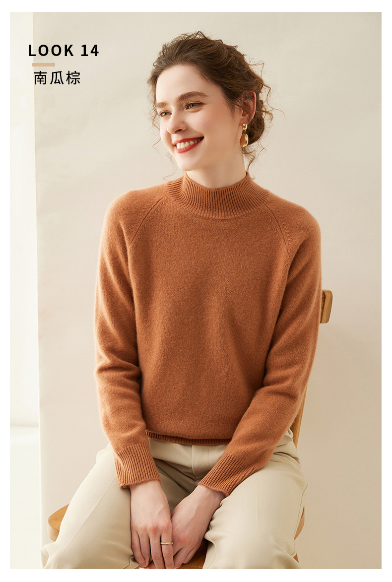 2024冬季新款半高領羊絨衫女加厚親膚山羊絨毛衣內搭針織衫打底衫