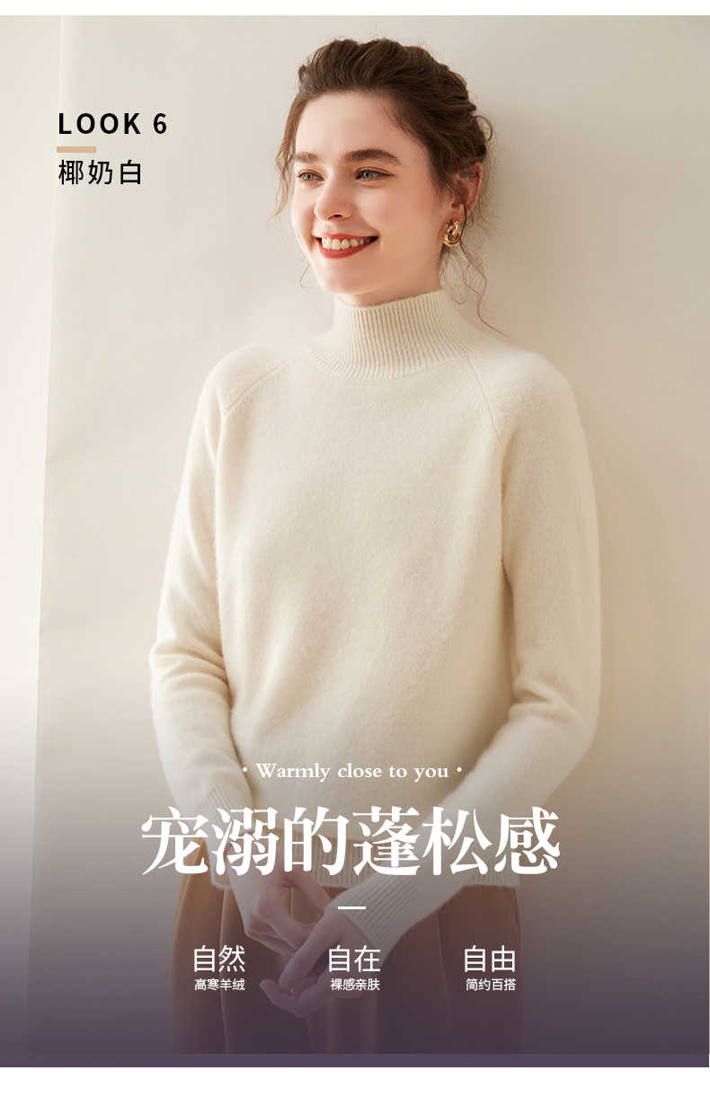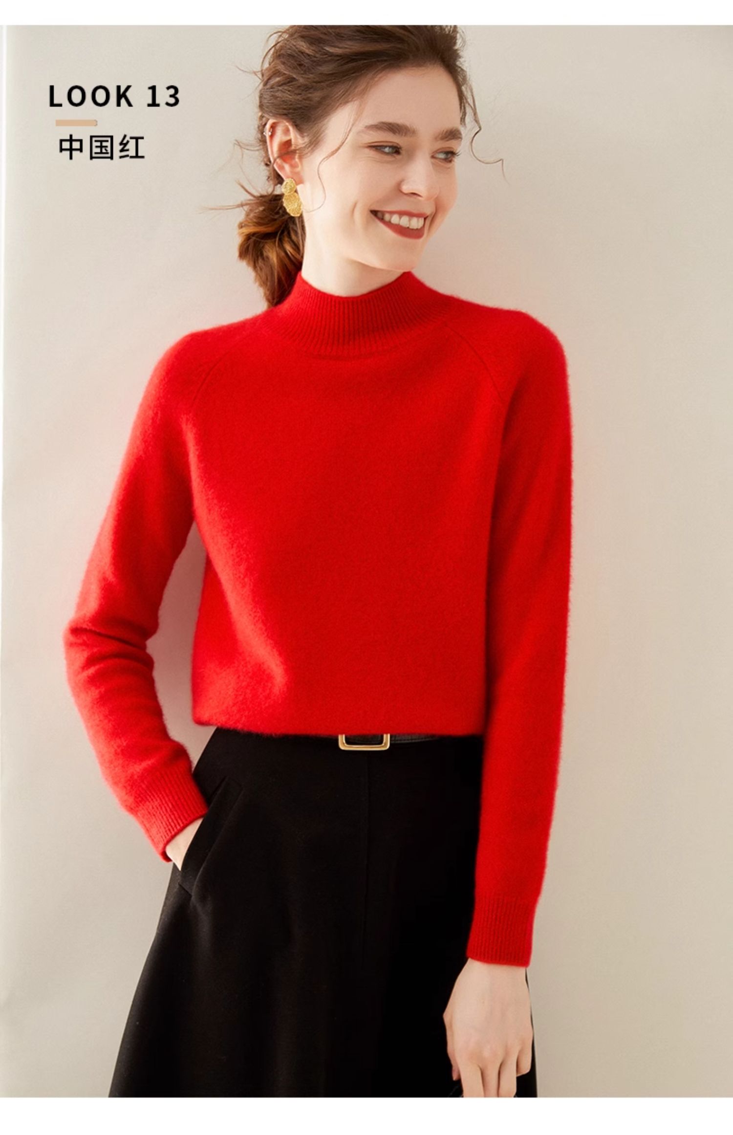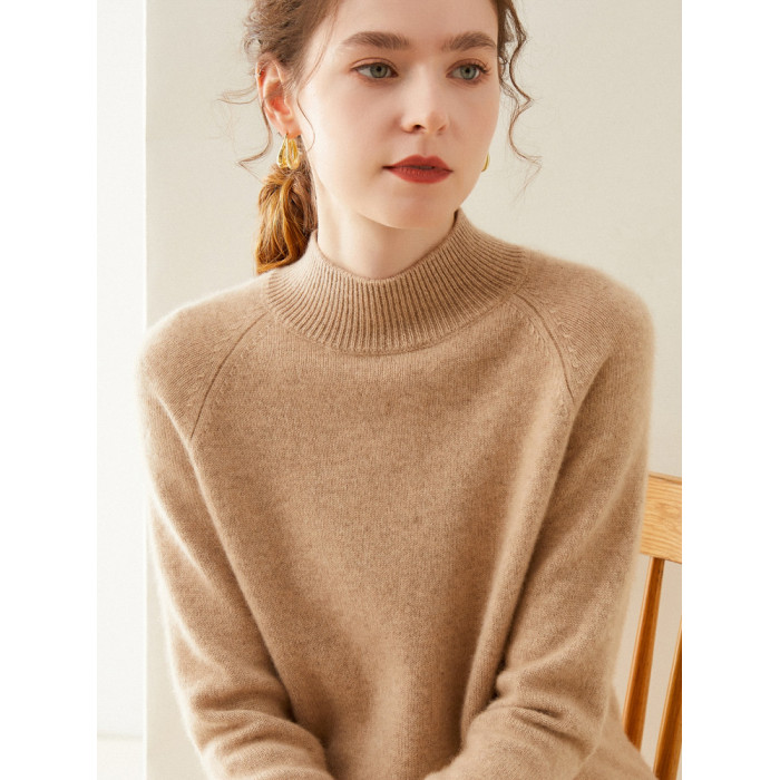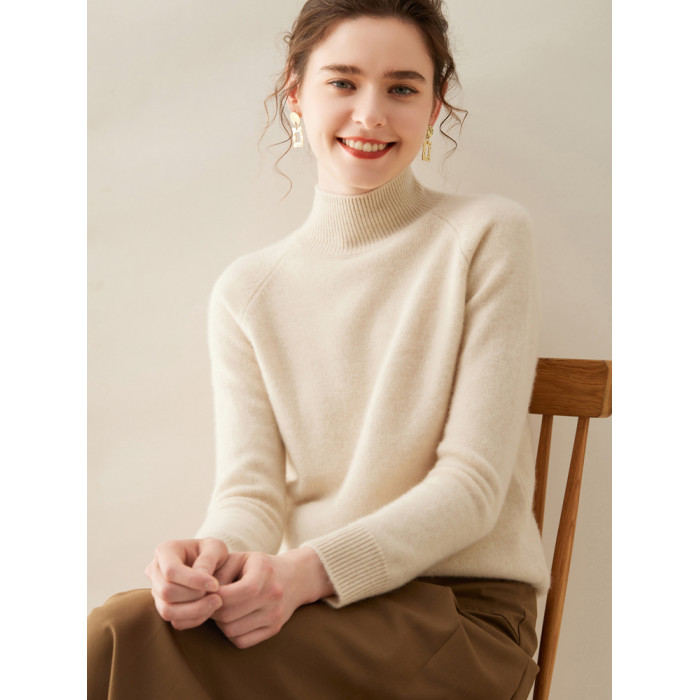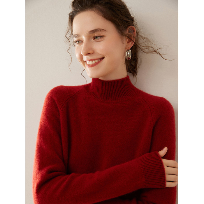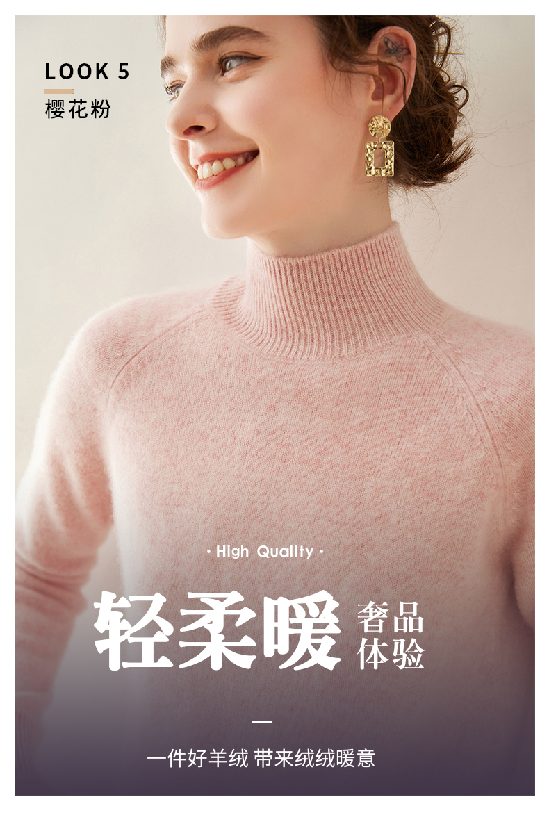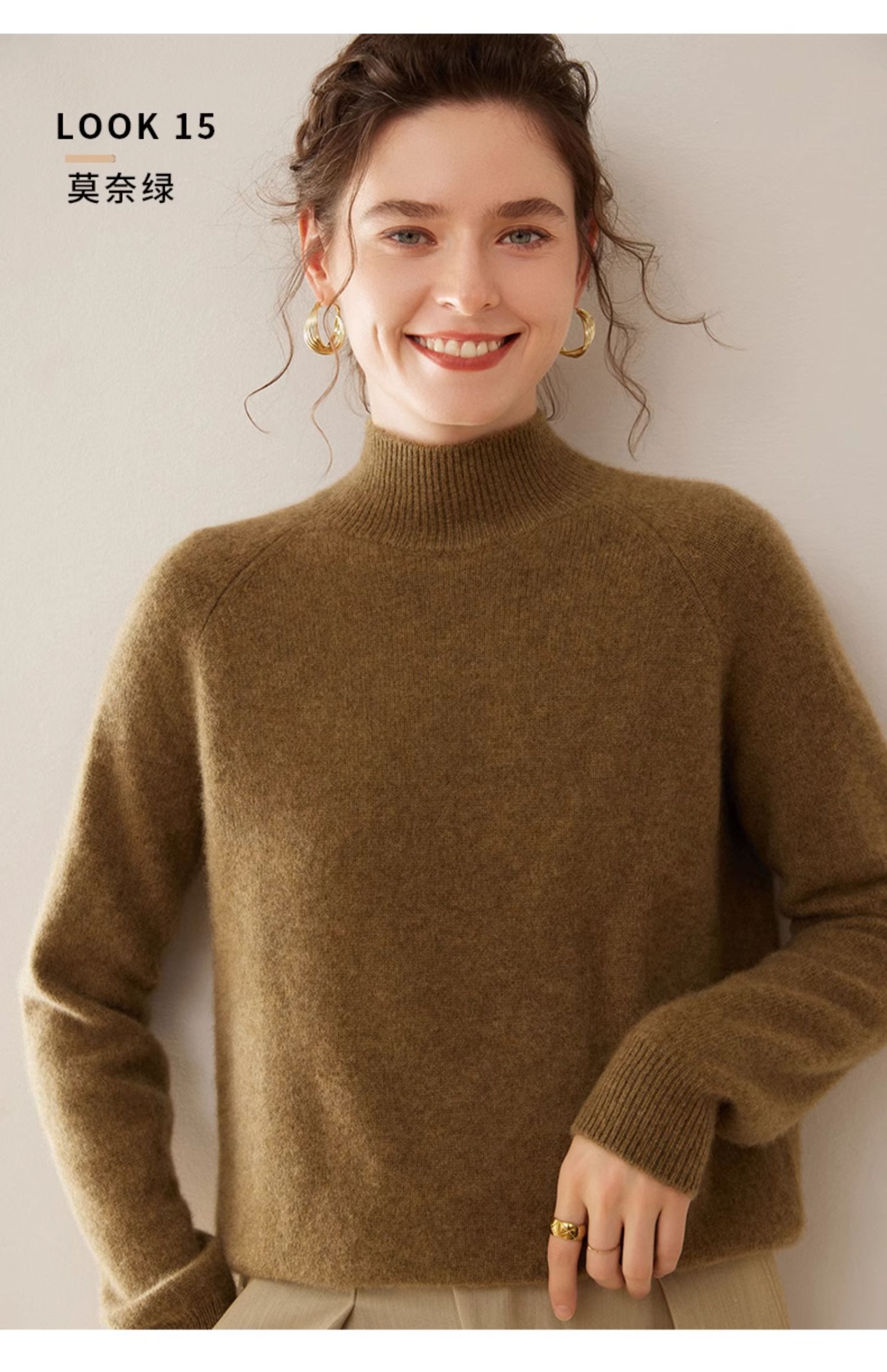 2024冬季新款半高領羊絨衫女加厚親膚山羊絨毛衣內搭針織衫打底衫