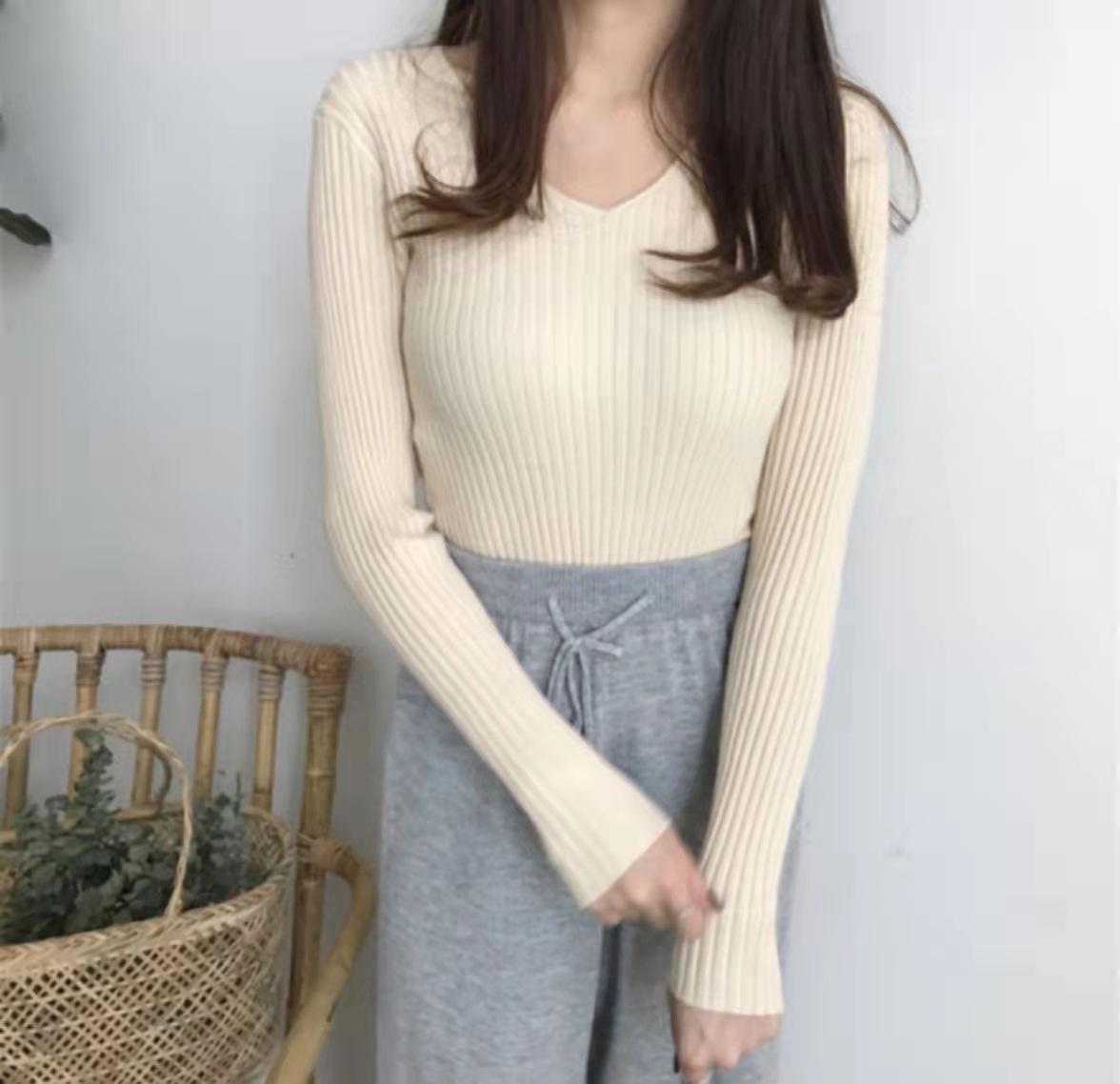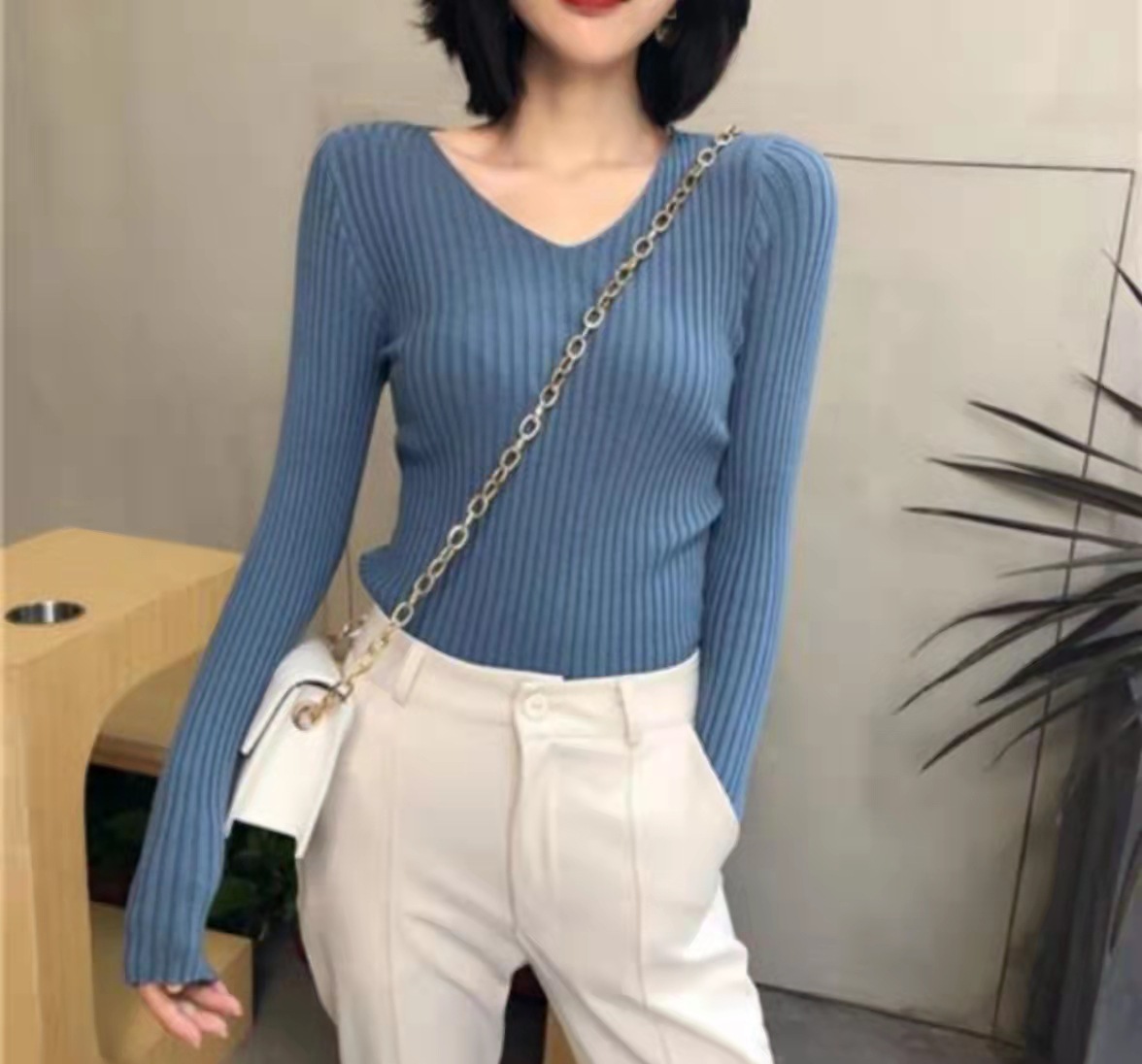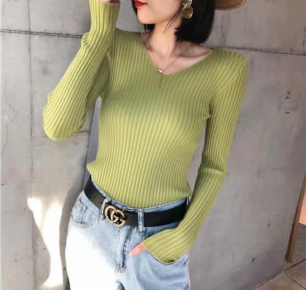 V領長袖修身打底衫女士內搭毛衣女秋冬款洋氣百搭上衣多色針織衫