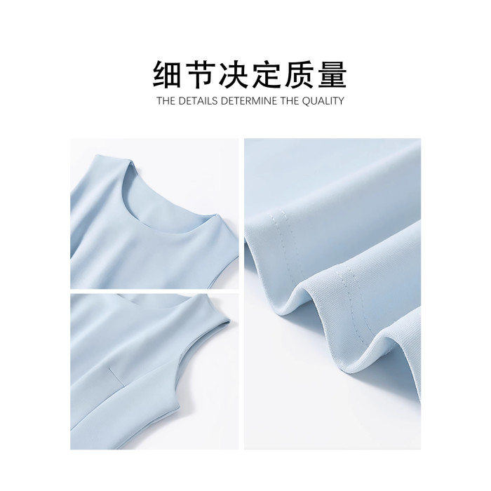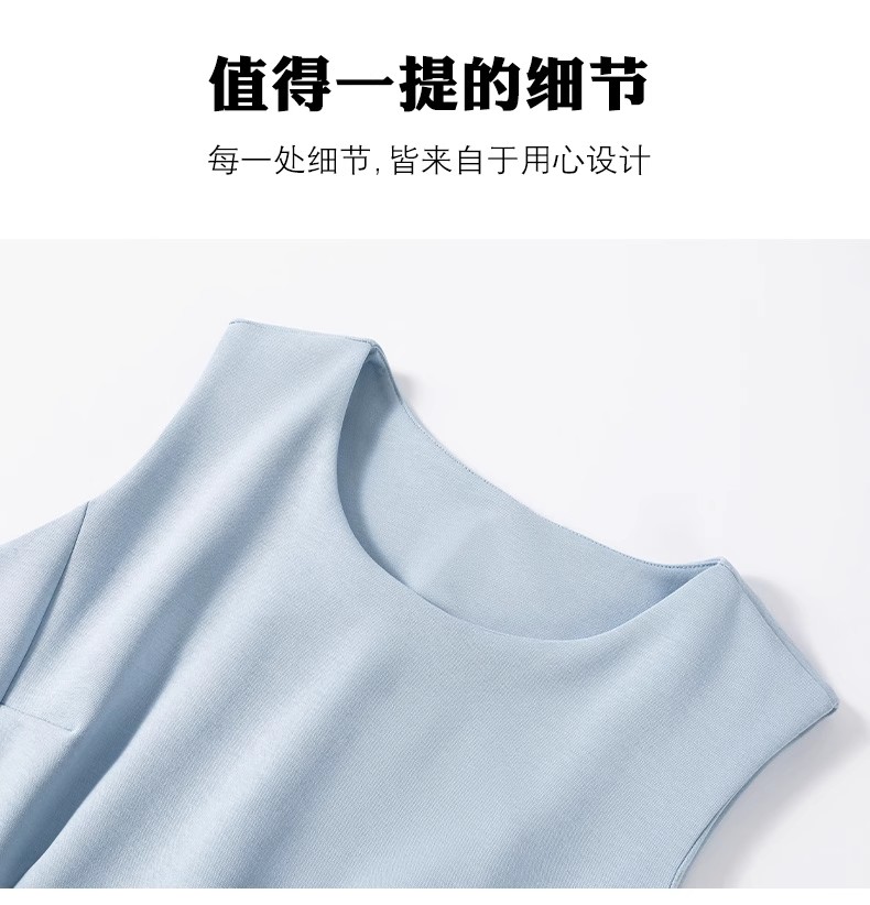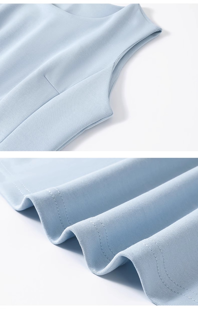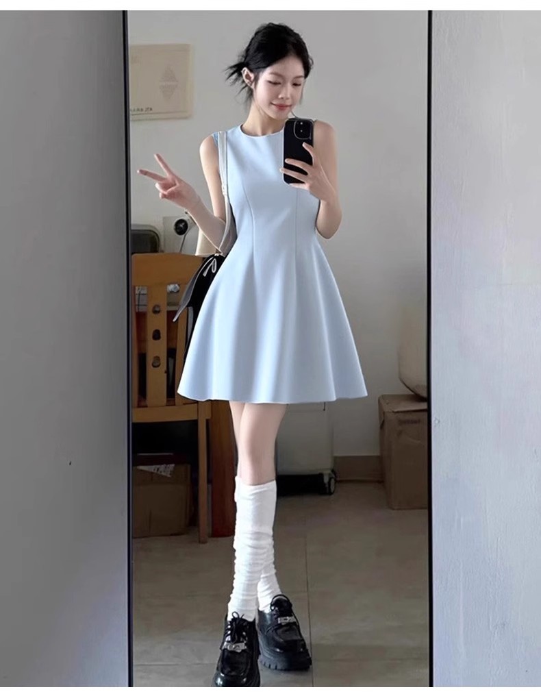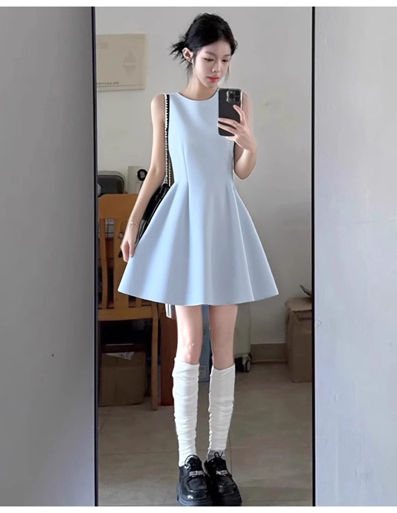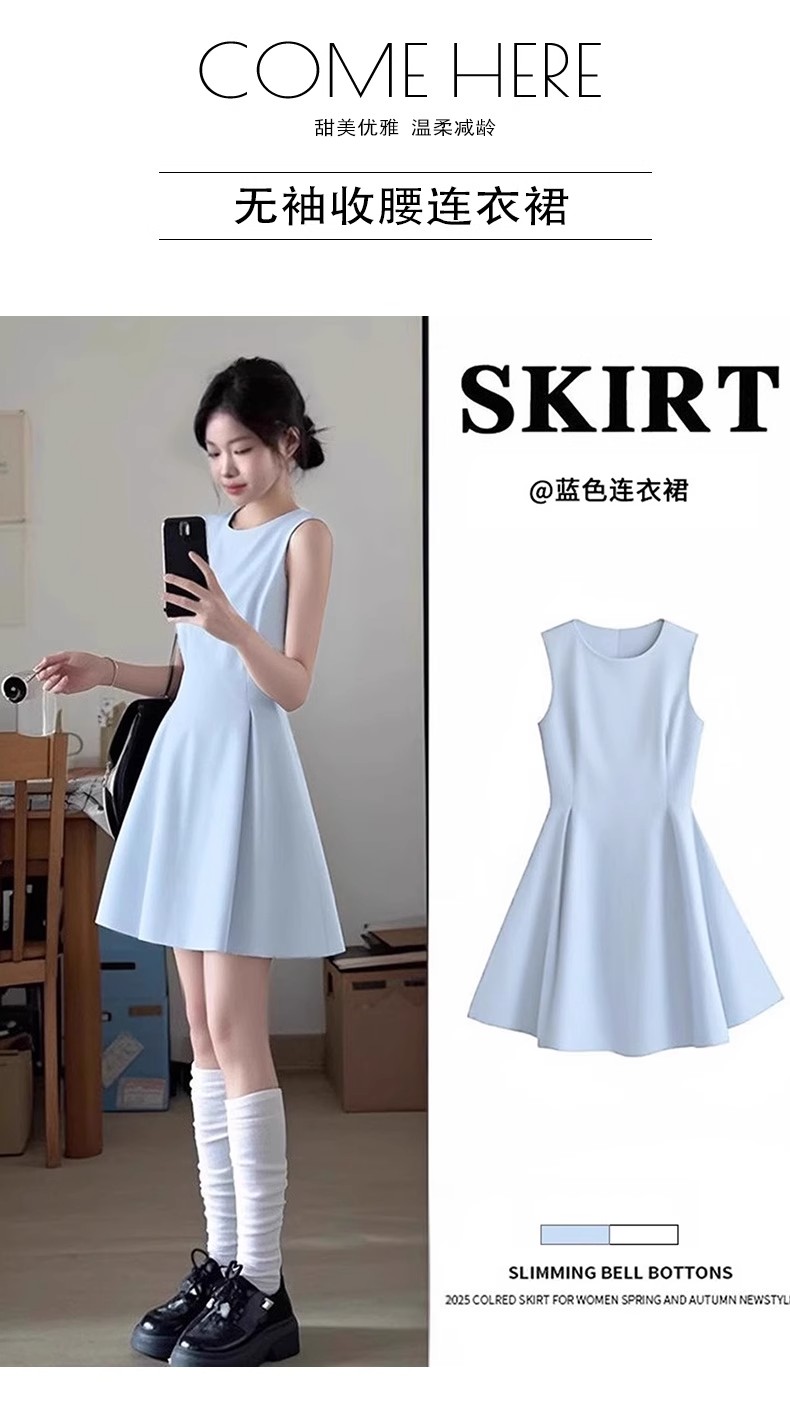 德國藍色連衣裙女夏季收腰a字無袖背心高級感氣質小個子掐腰短裙