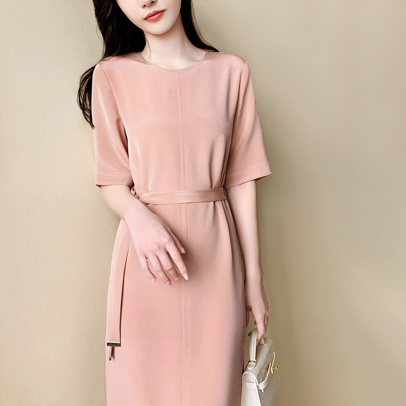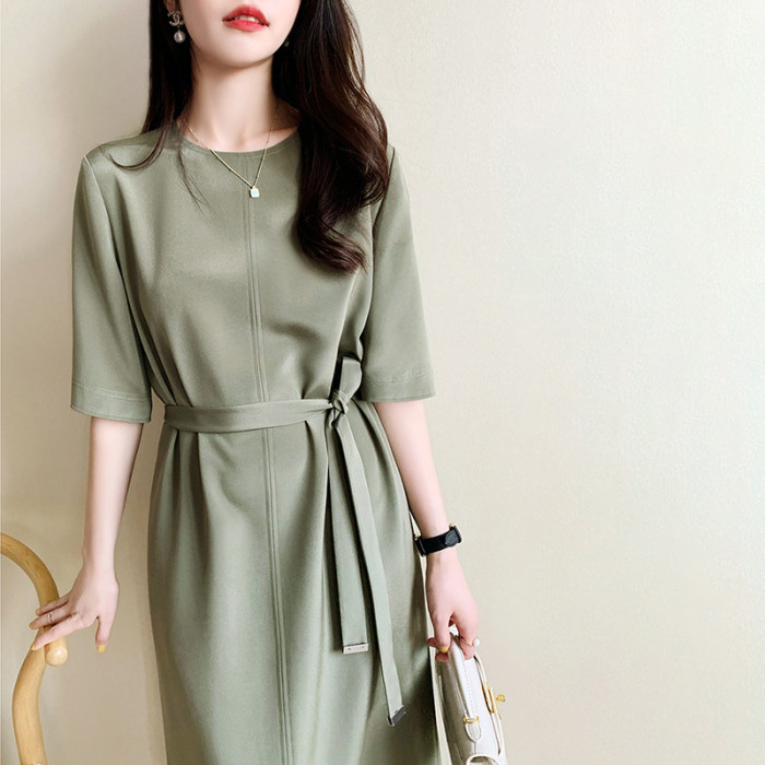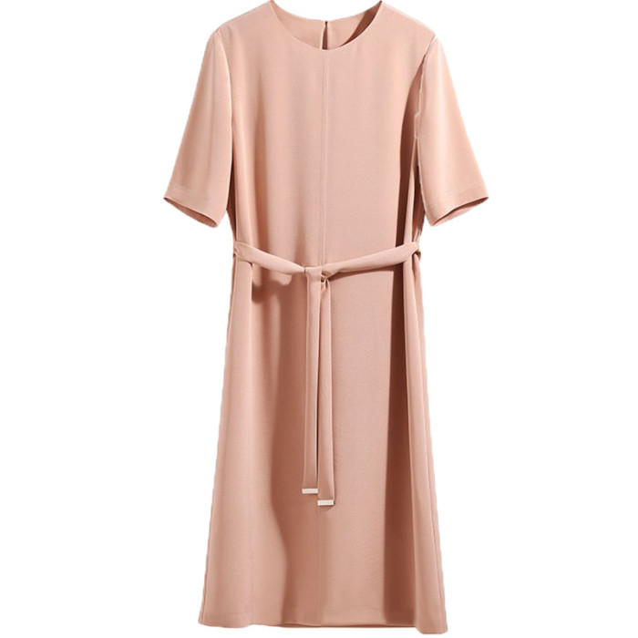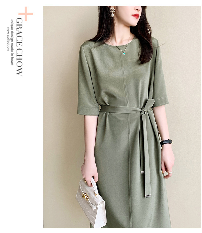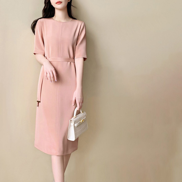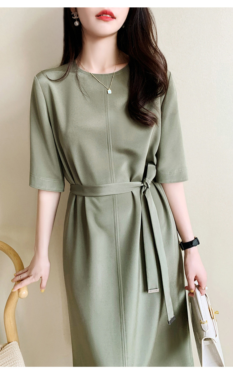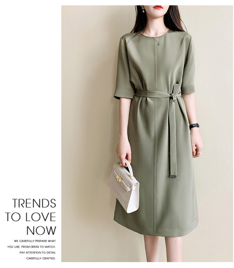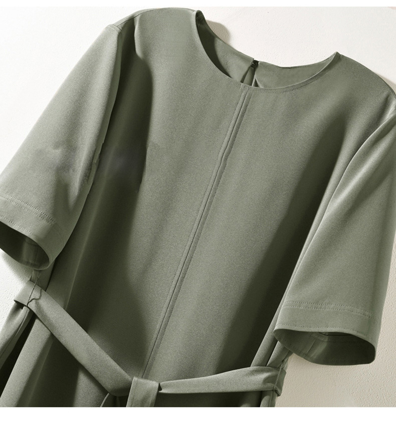 法式半身連衣裙2025夏季新款設計感小衆時尚輕熟風純色圓領中