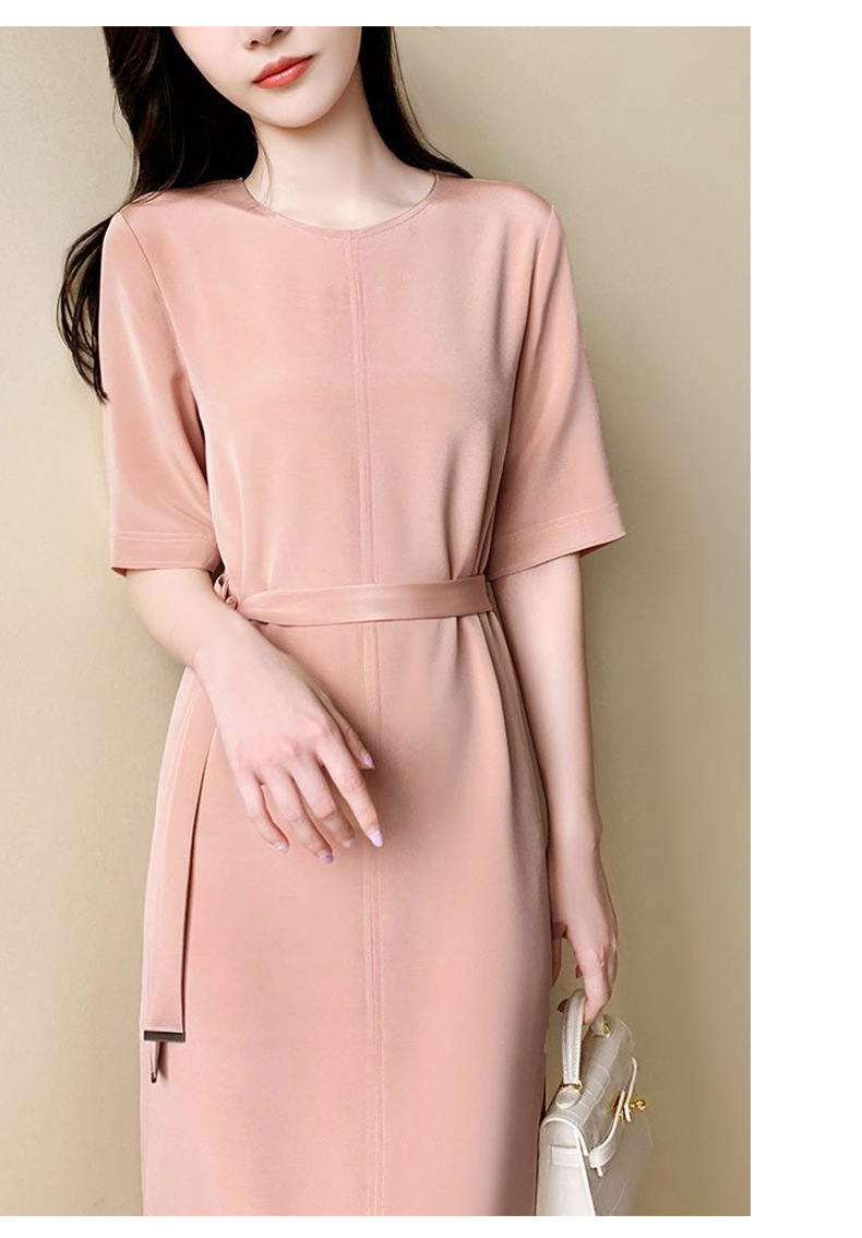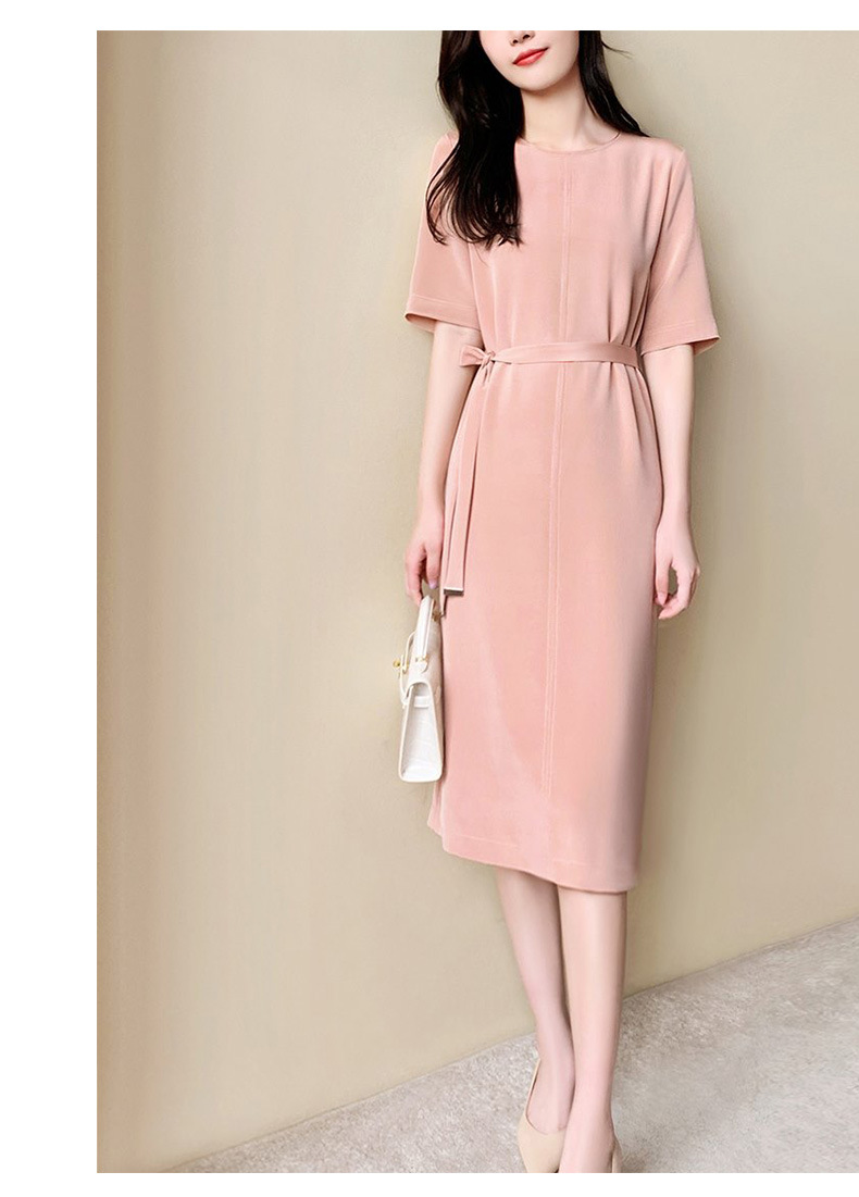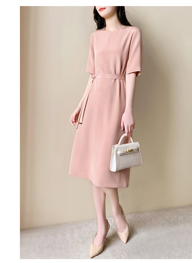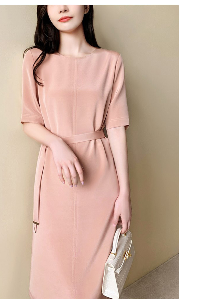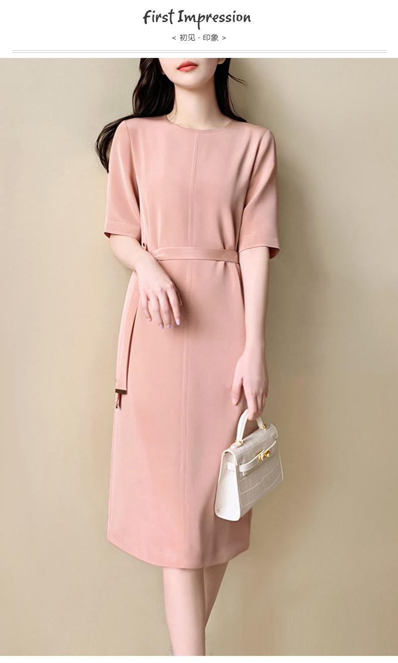 法式半身連衣裙2025夏季新款設計感小衆時尚輕熟風純色圓領中