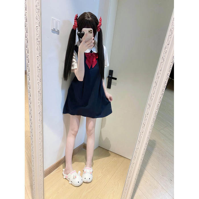 可愛日系幼稚園校服軟妹班服假兩件套裝JK學院風學生娃娃領連衣裙