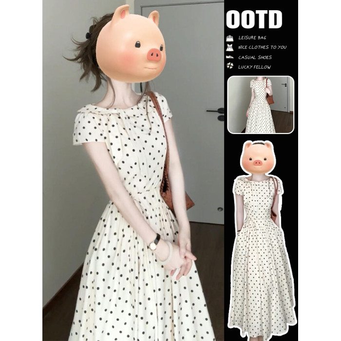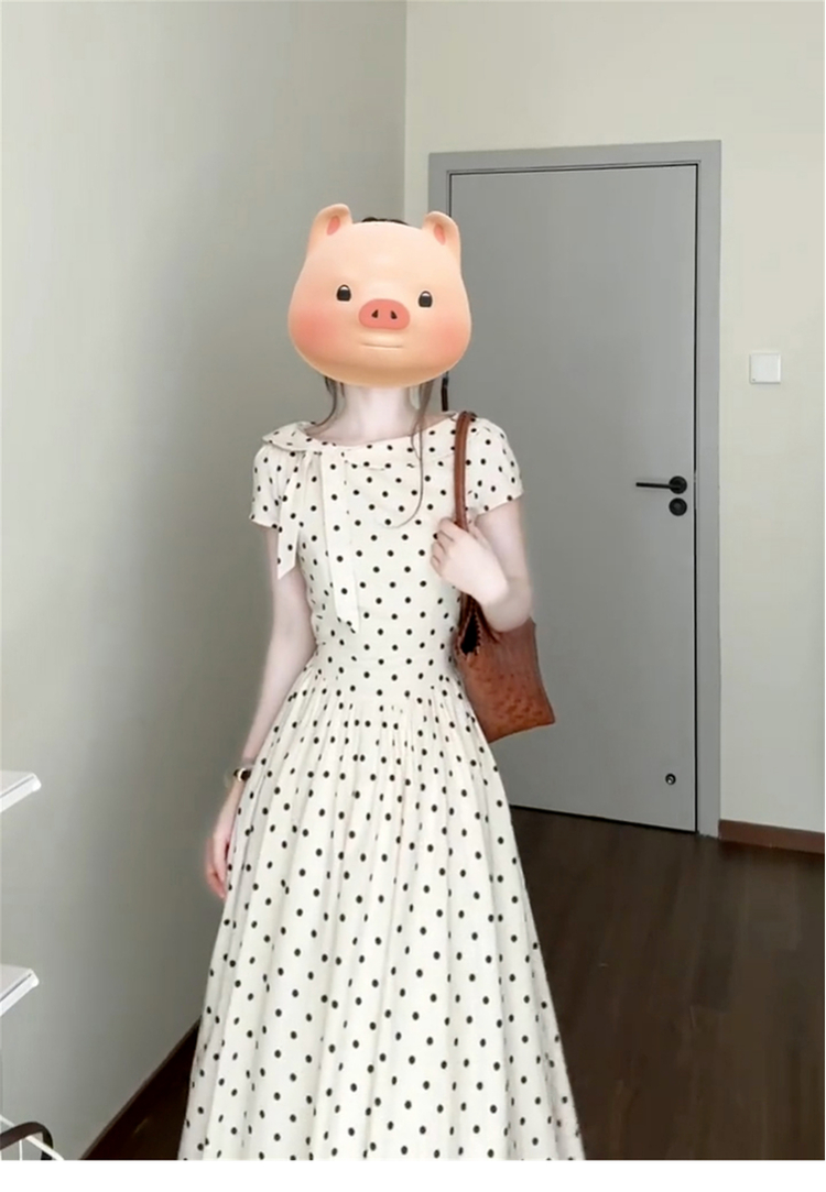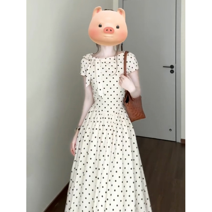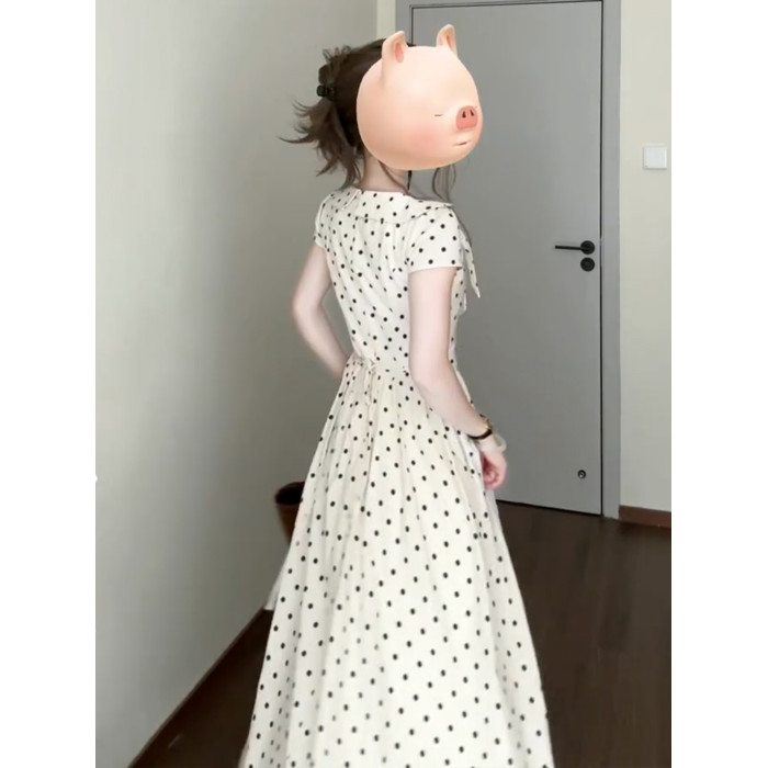 法式白色波點連衣裙子女夏季2025新款夏日巨好看漂亮收腰氣質長裙