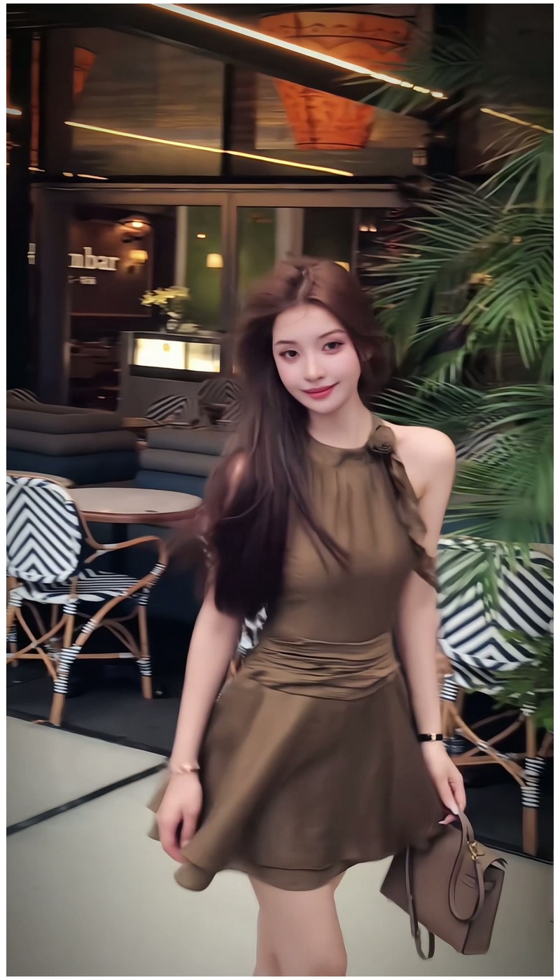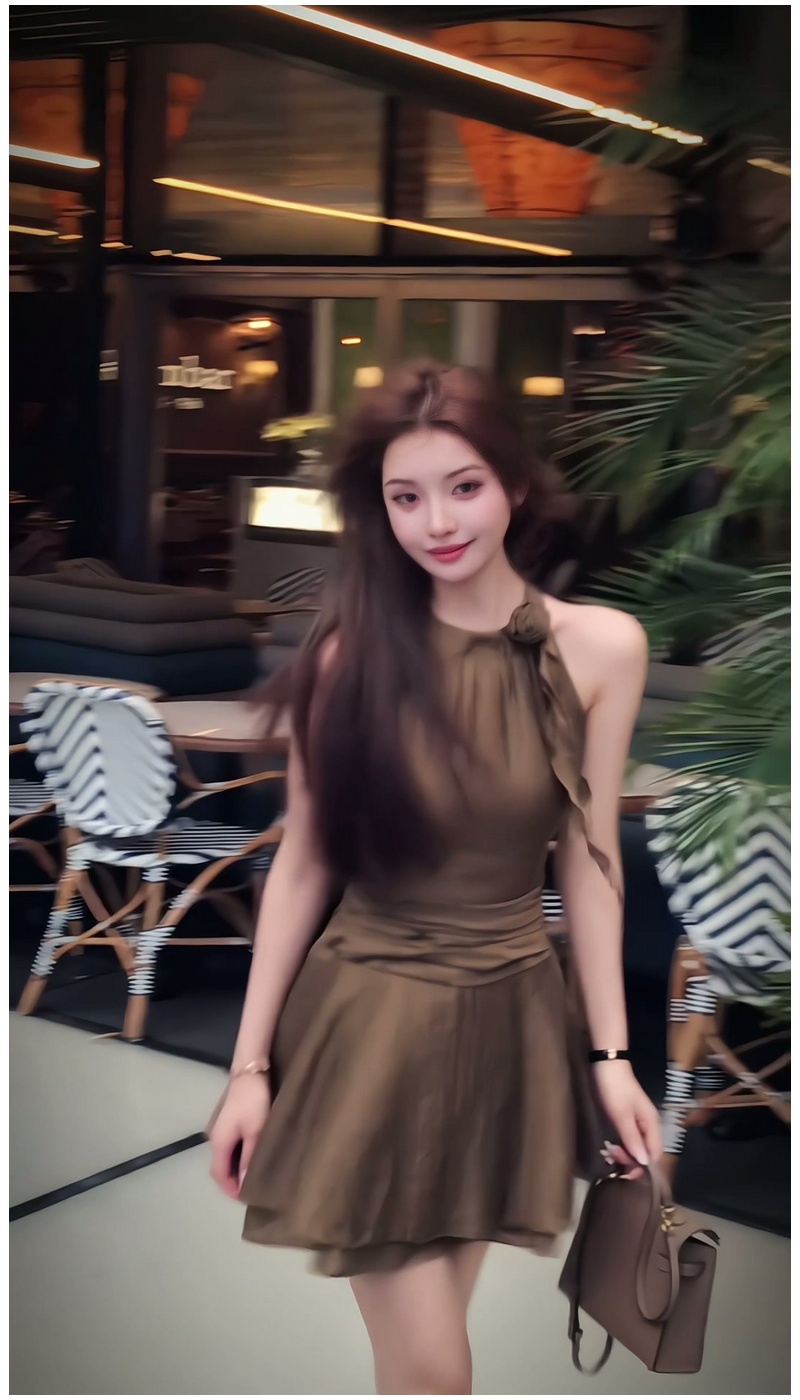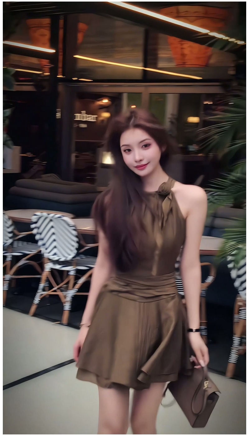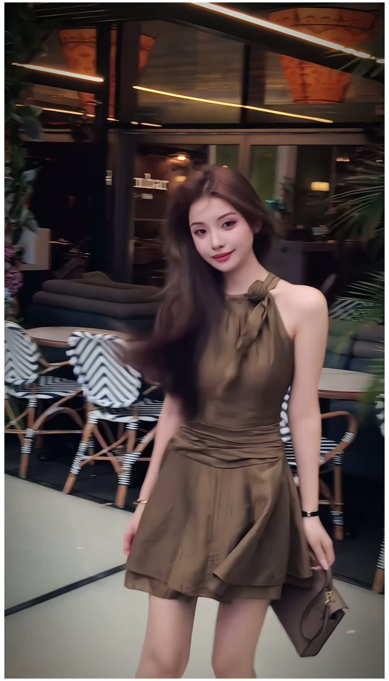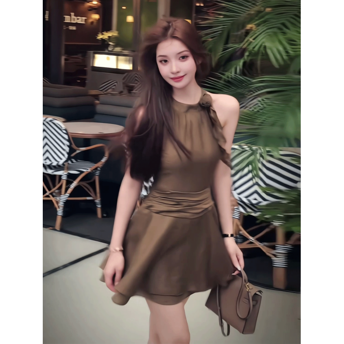 法式復古氣質掛脖連衣裙女2025年夏季新款設計感小衆收腰顯瘦短裙