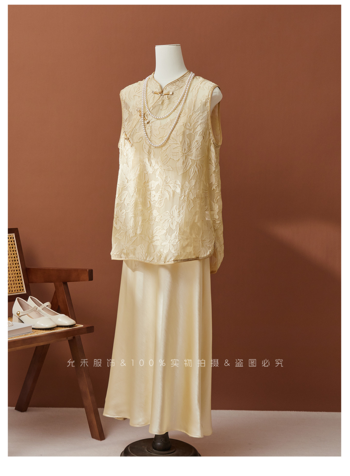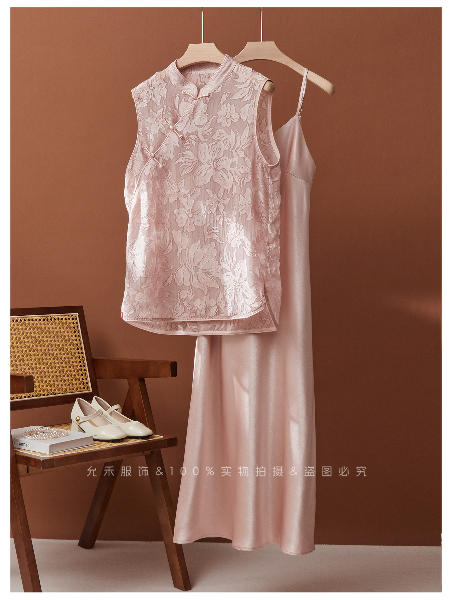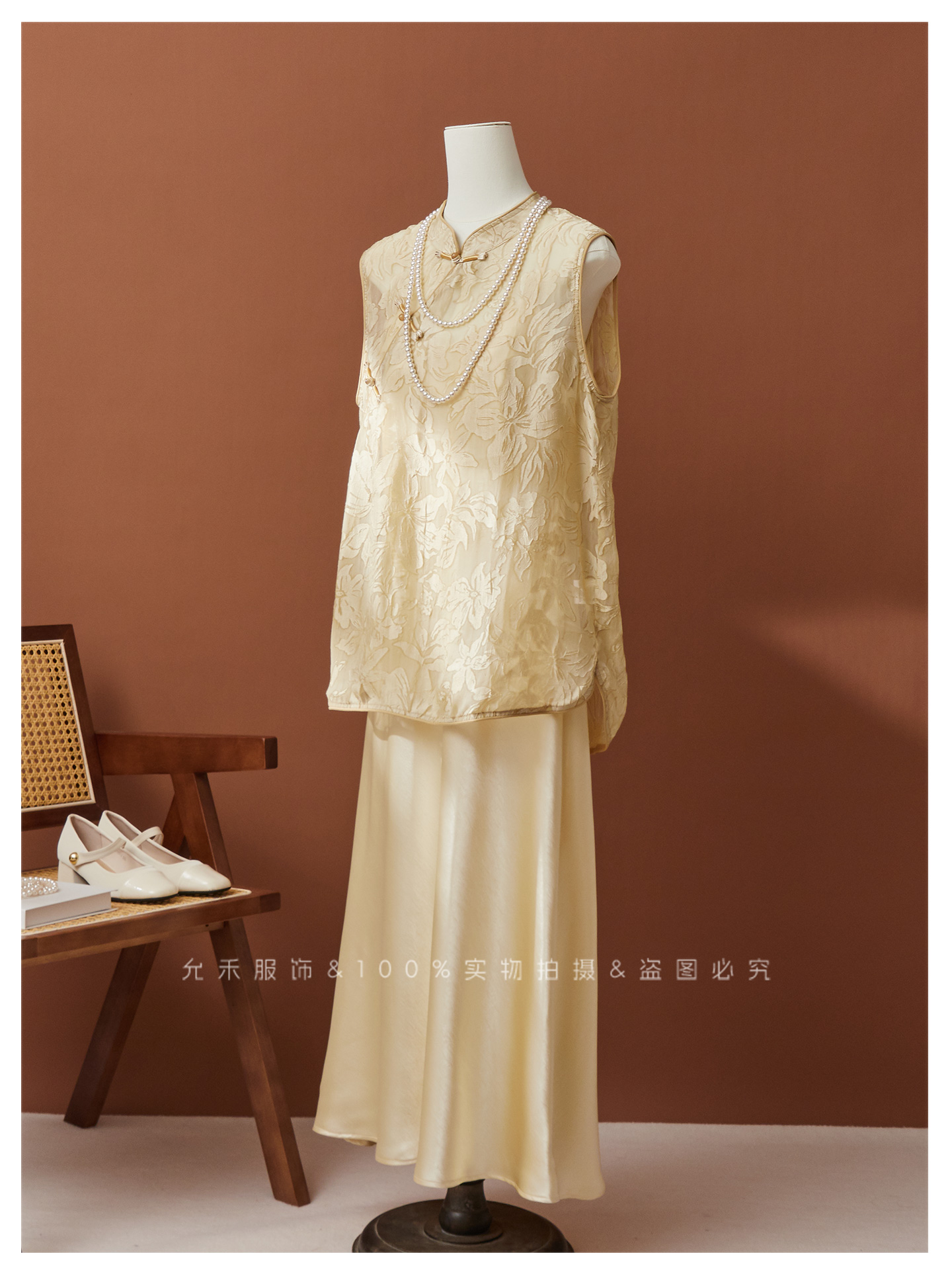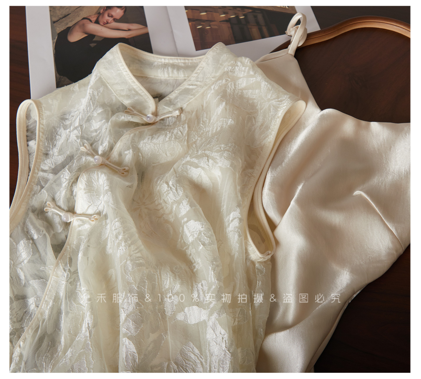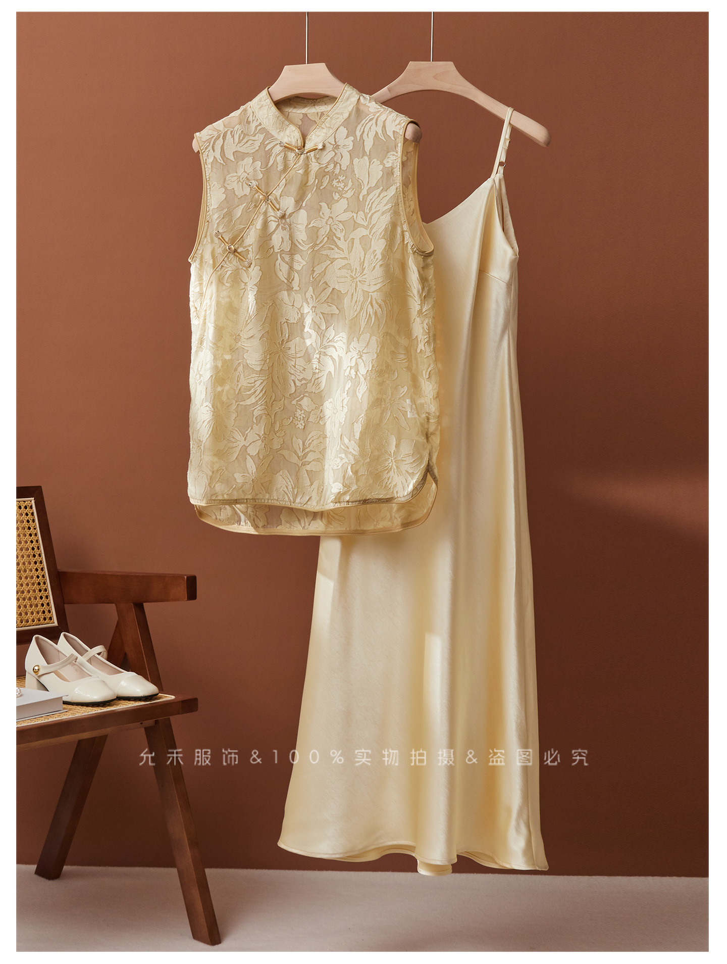 新中式國風馬甲緞面提花連衣裙兩件套高級小衆不撞款氣質套裝女
