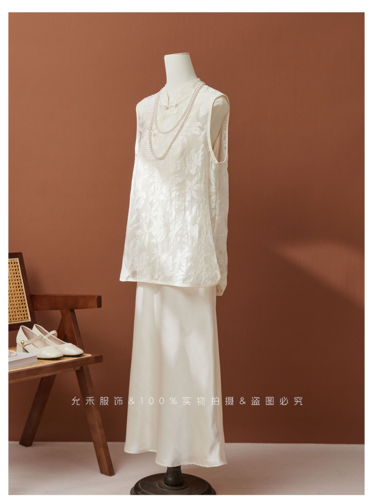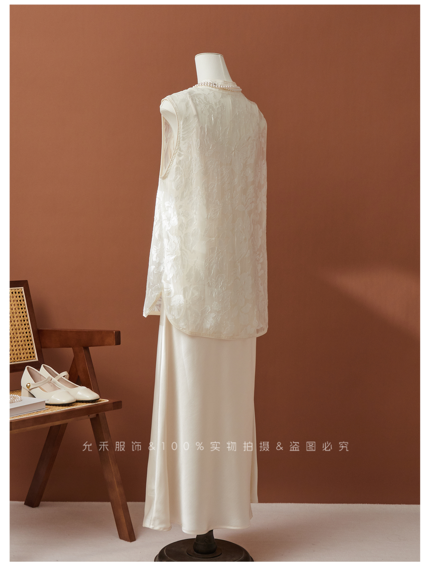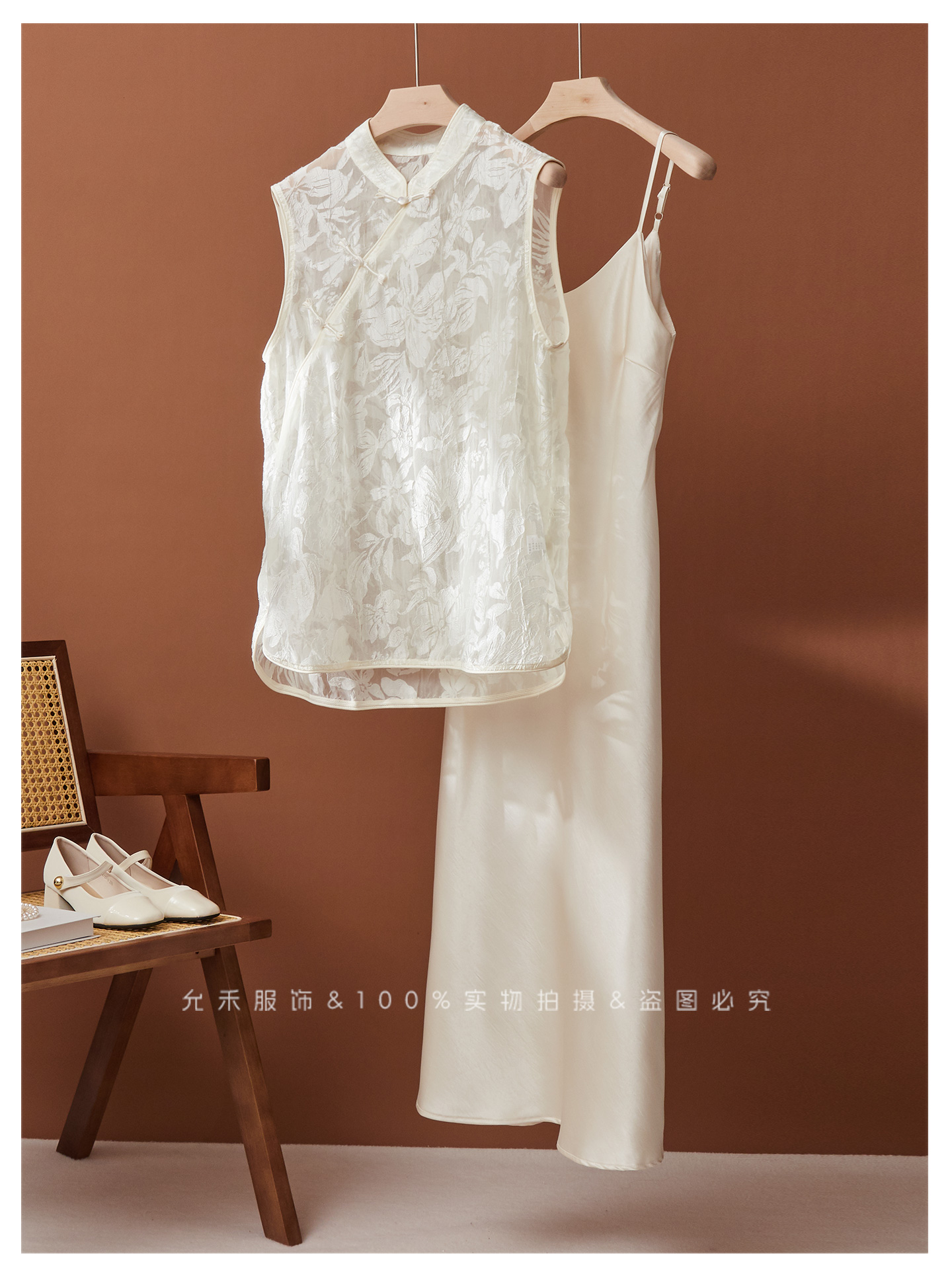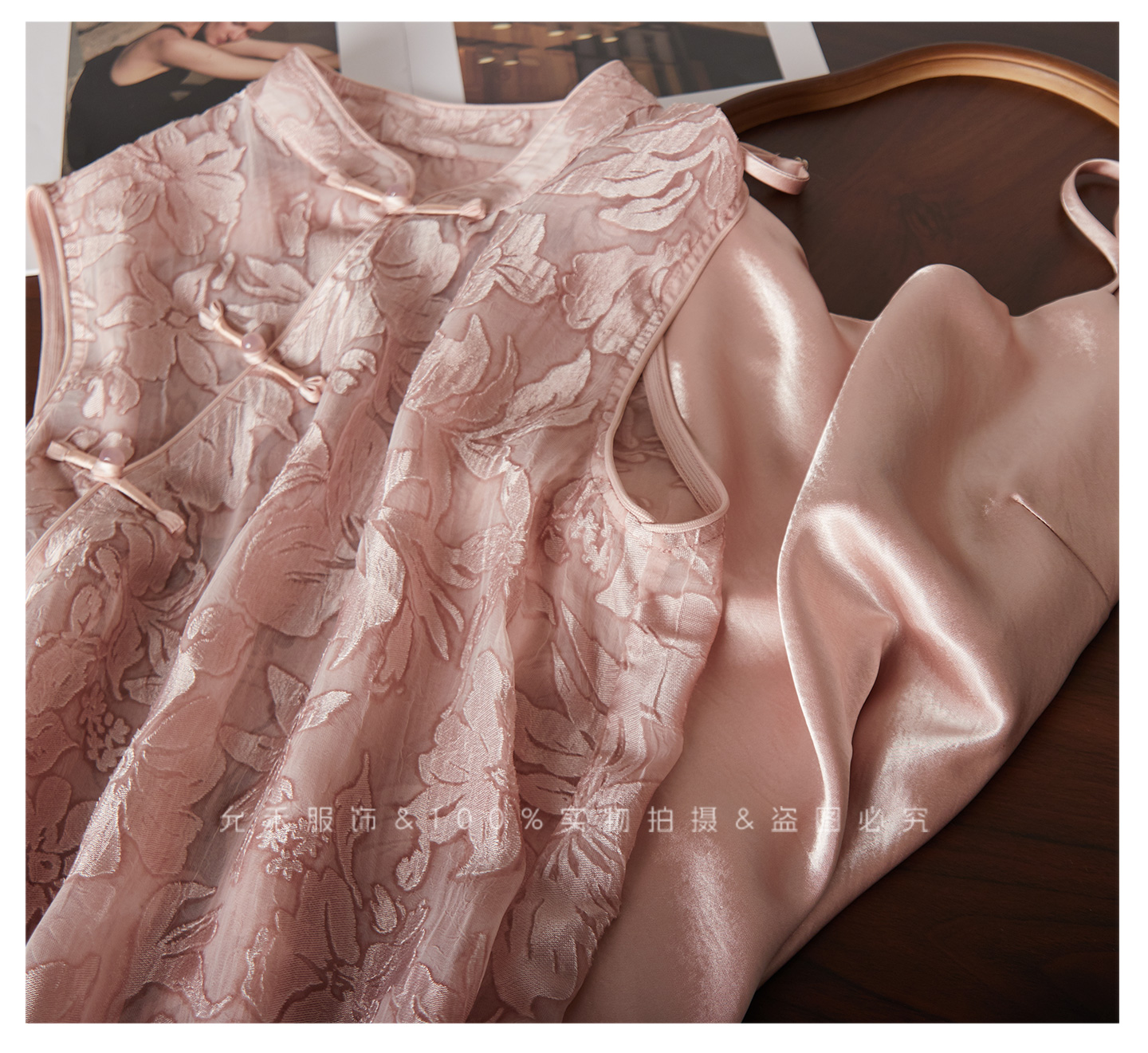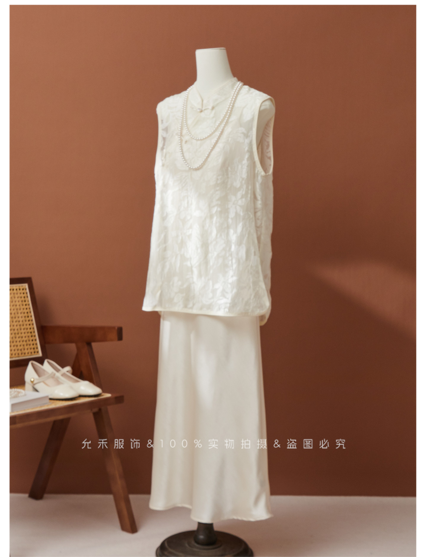 新中式國風馬甲緞面提花連衣裙兩件套高級小衆不撞款氣質套裝女