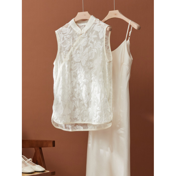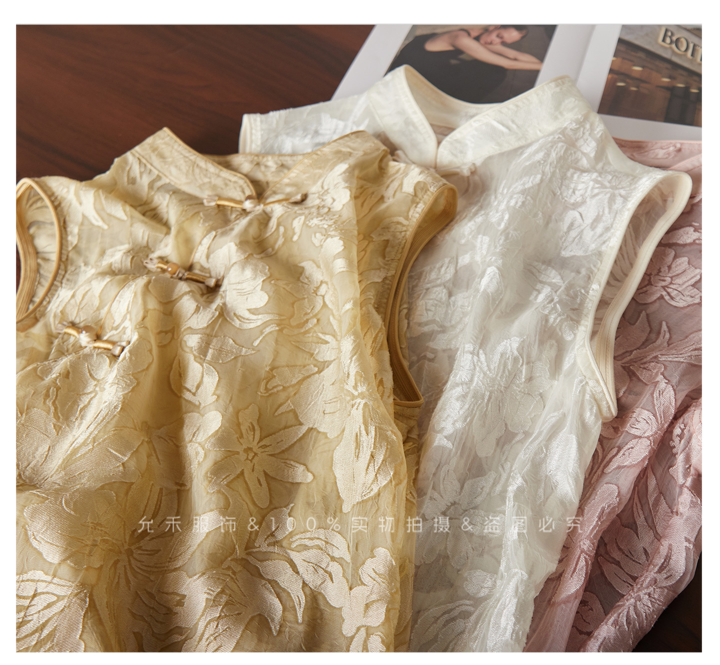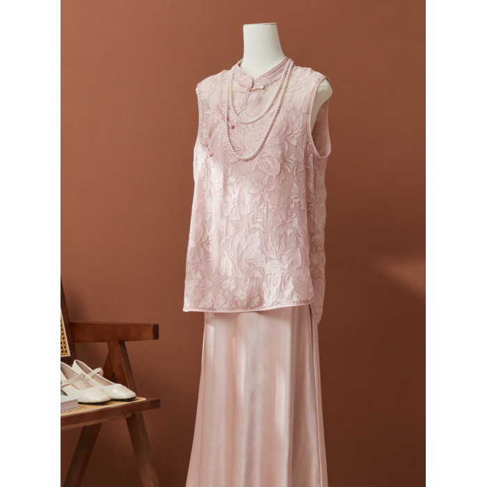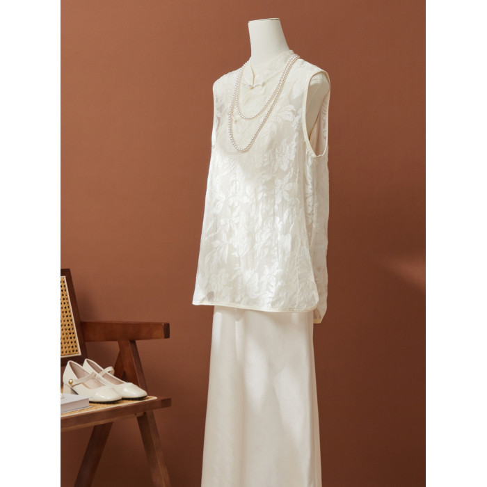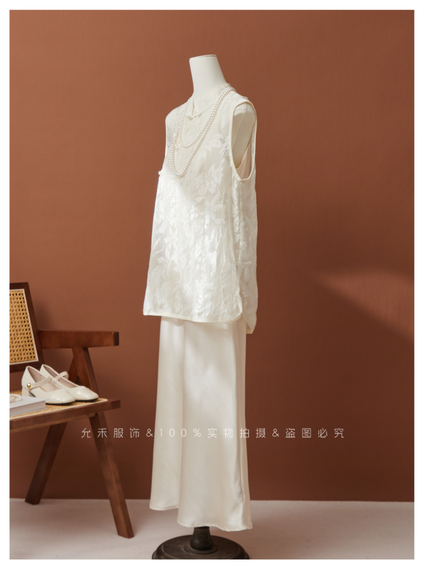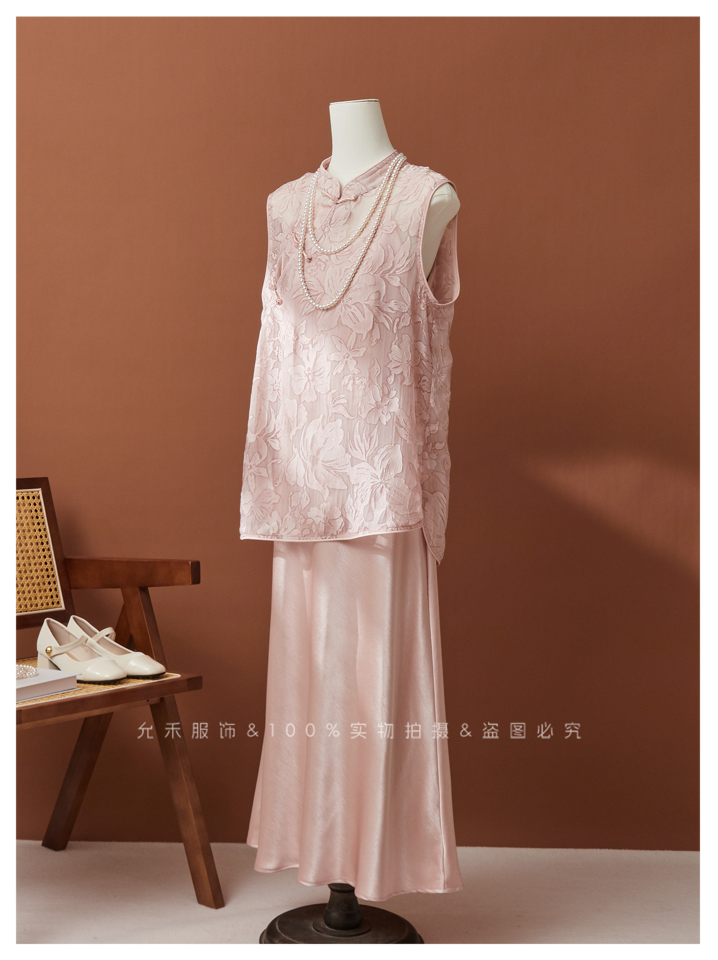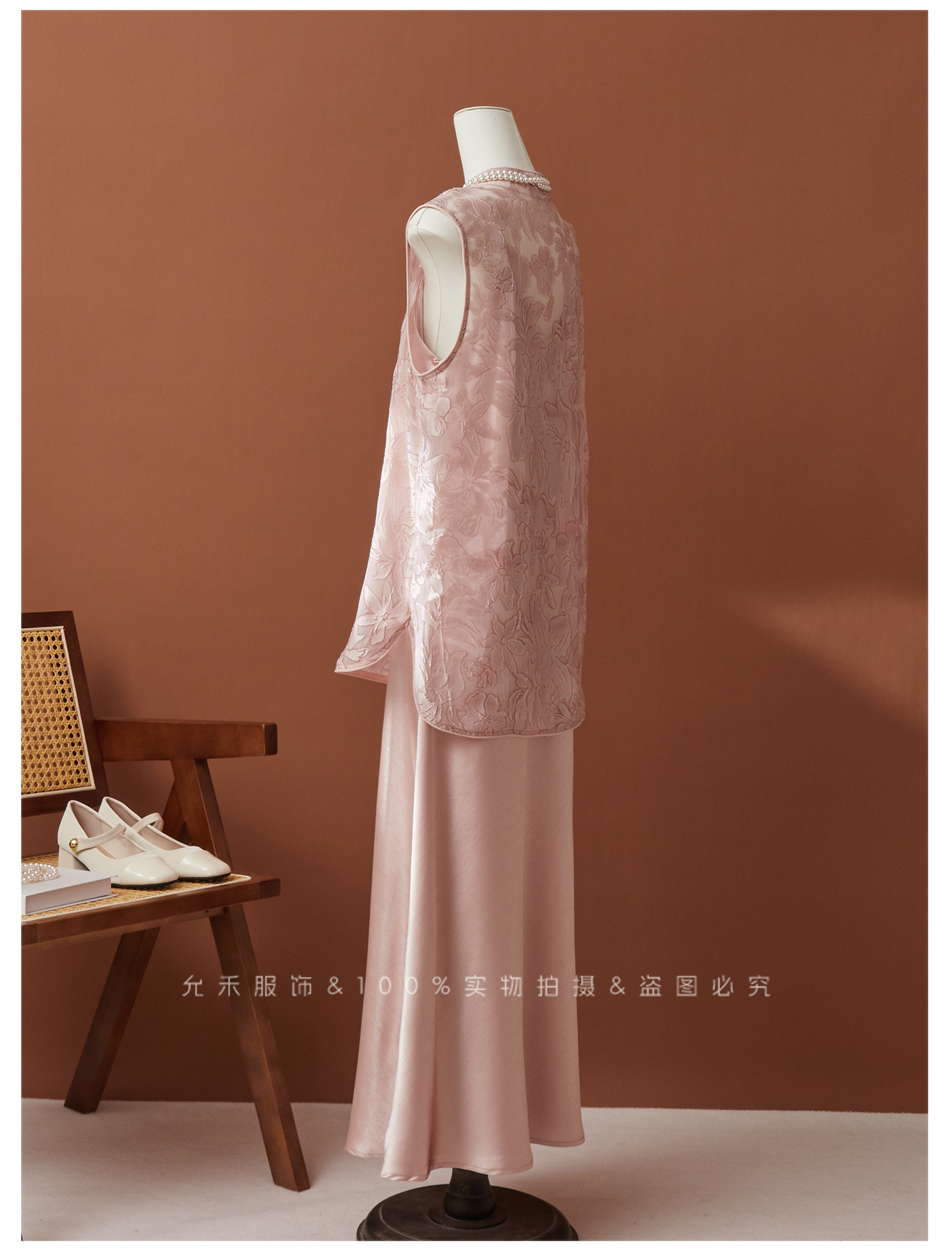 新中式國風馬甲緞面提花連衣裙兩件套高級小衆不撞款氣質套裝女