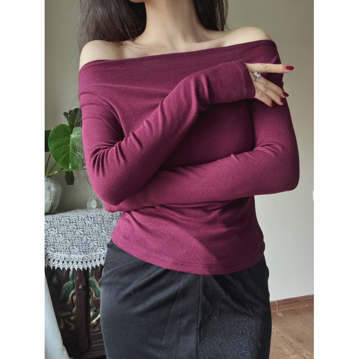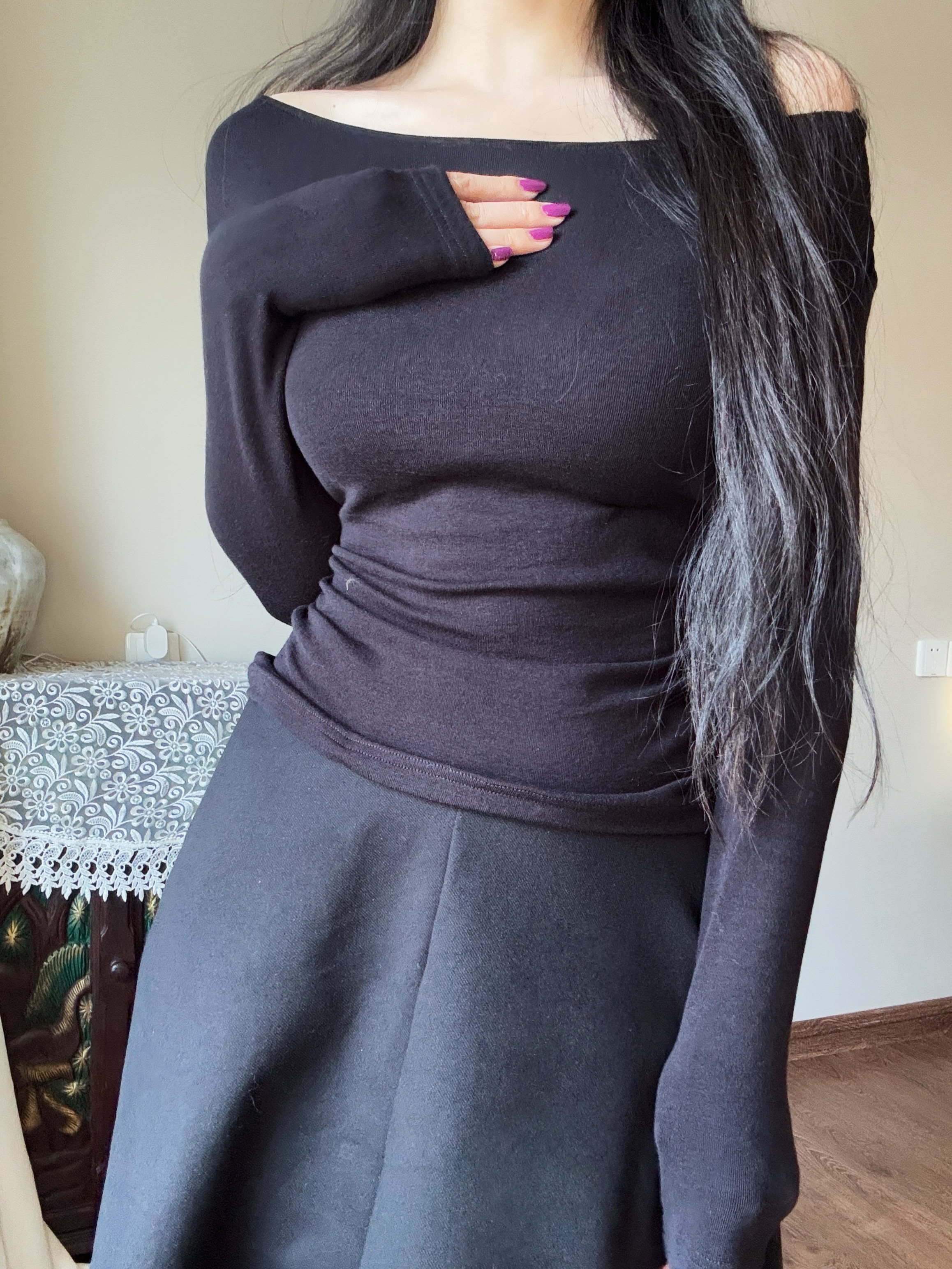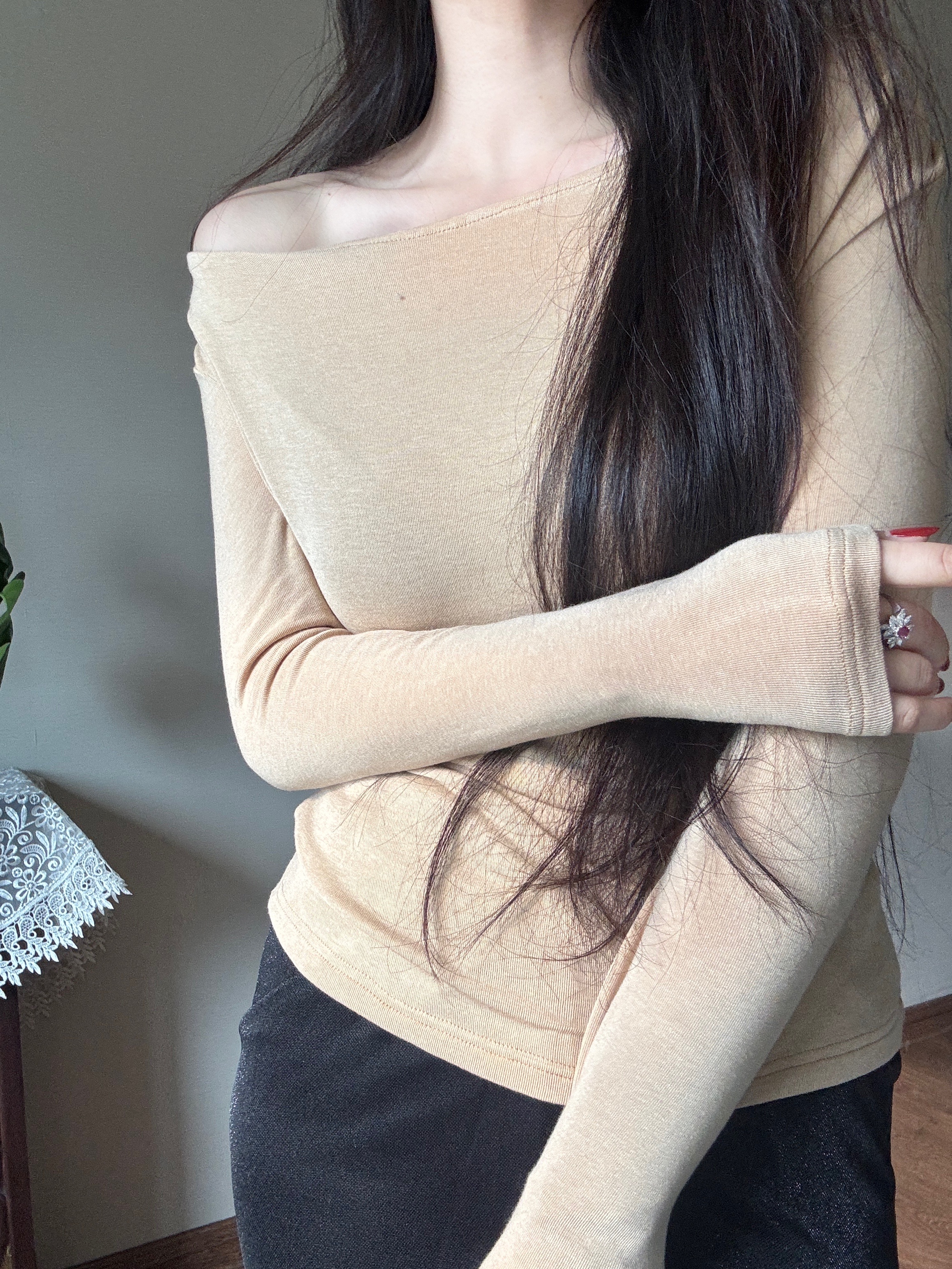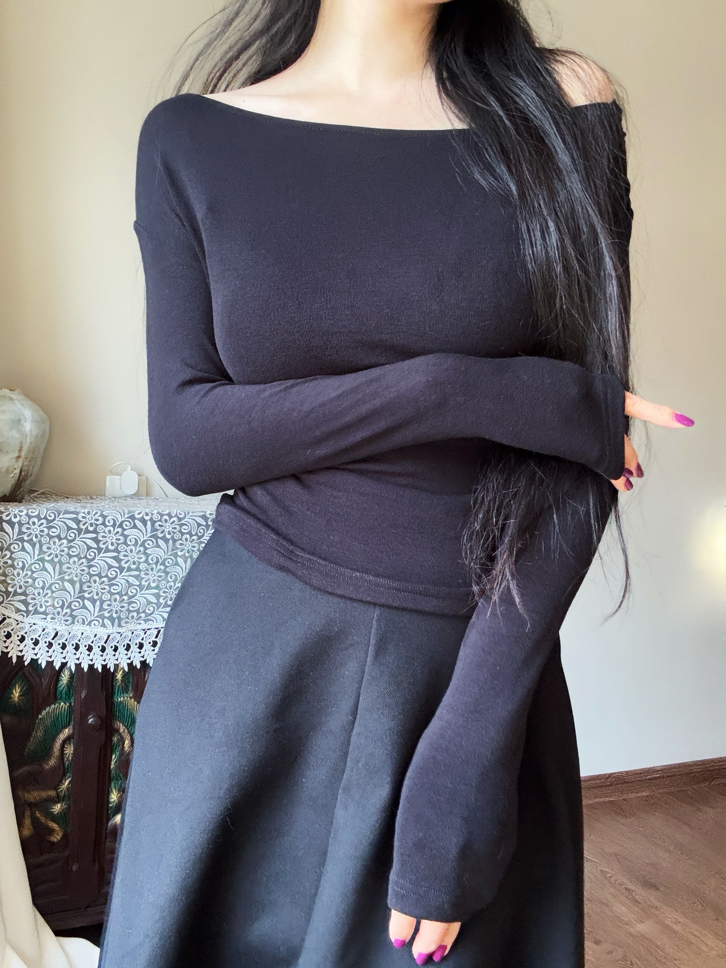 露肩針織衫女裝新品秋冬高級感蕩領修身套頭打底衫氣質長袖上衣
