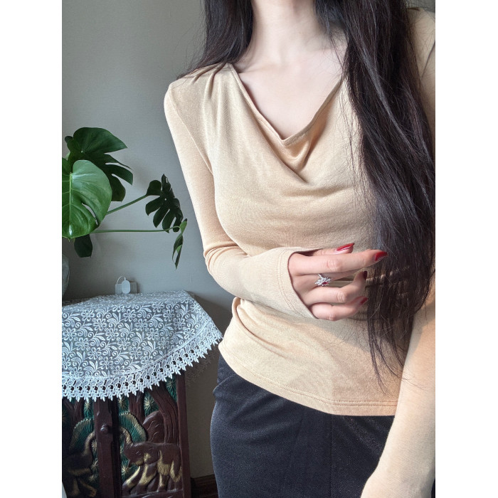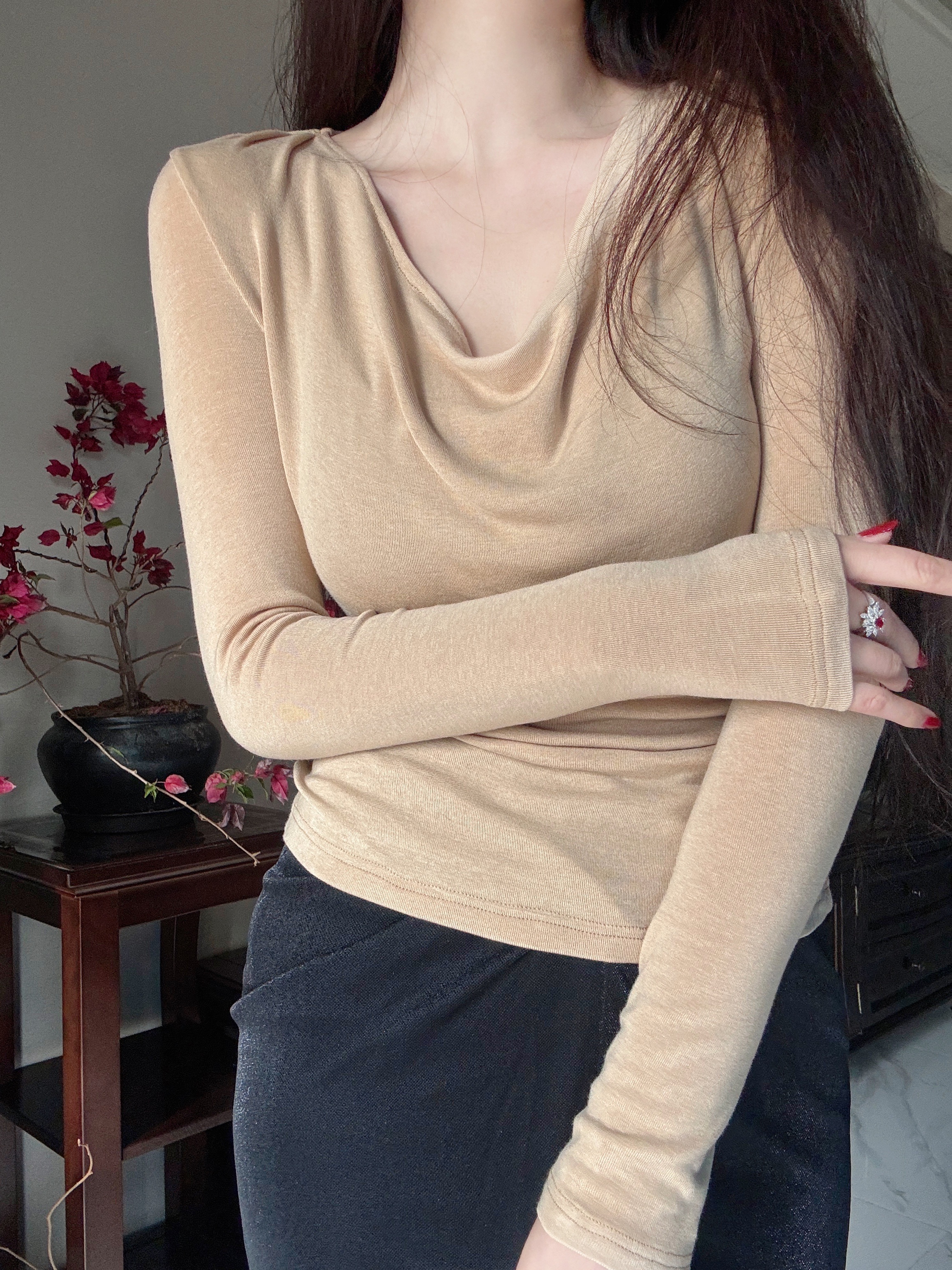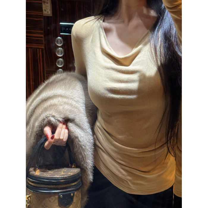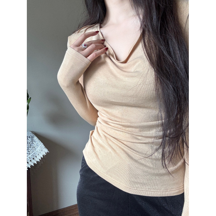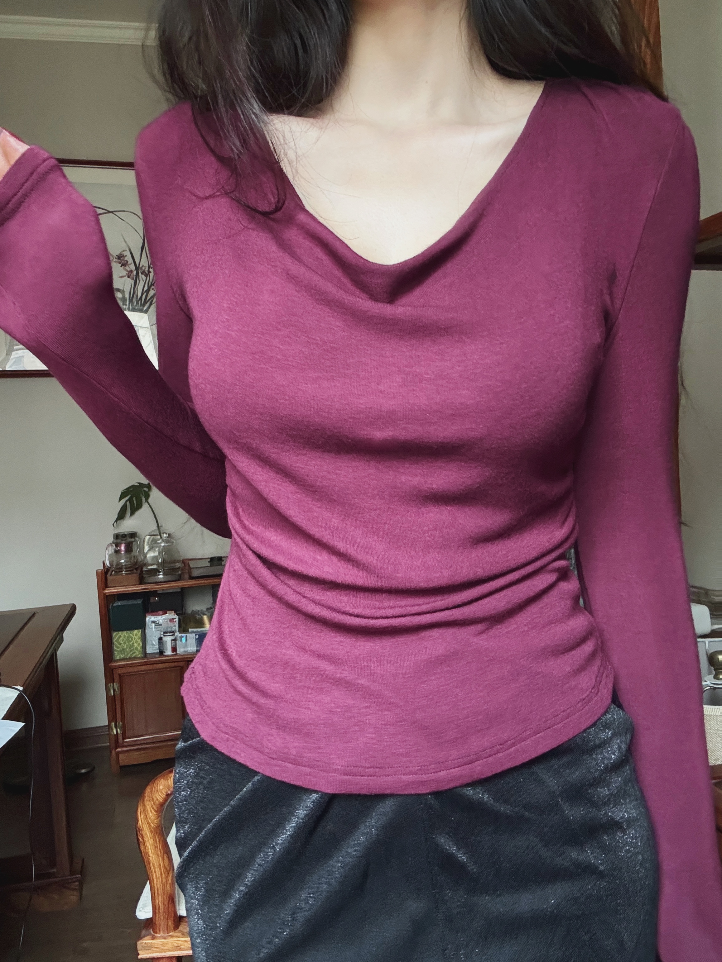 露肩針織衫女裝新品秋冬高級感蕩領修身套頭打底衫氣質長袖上衣