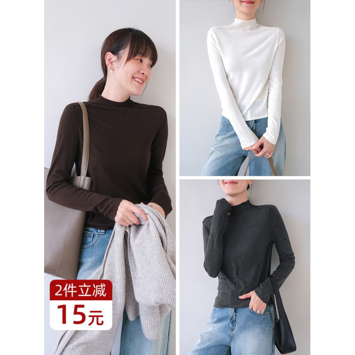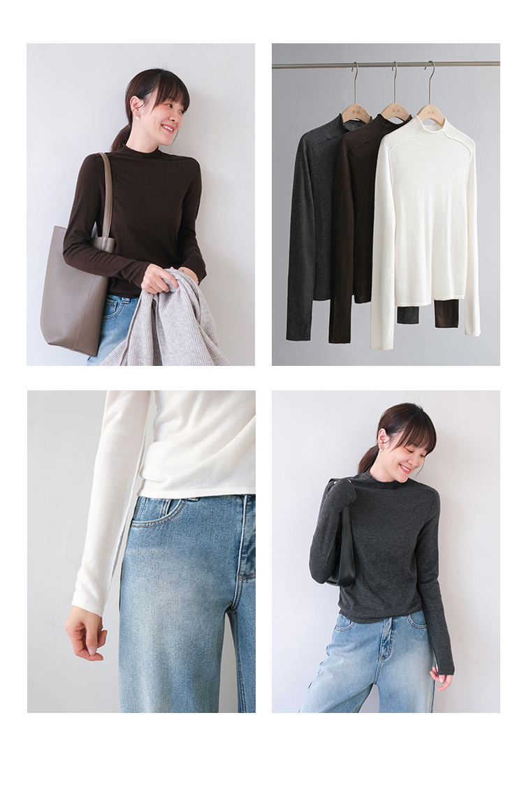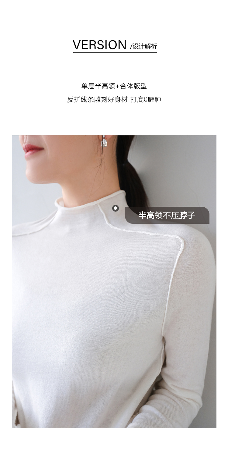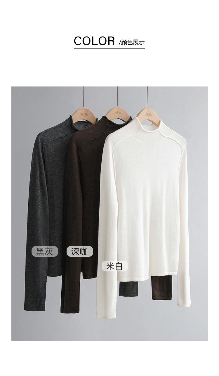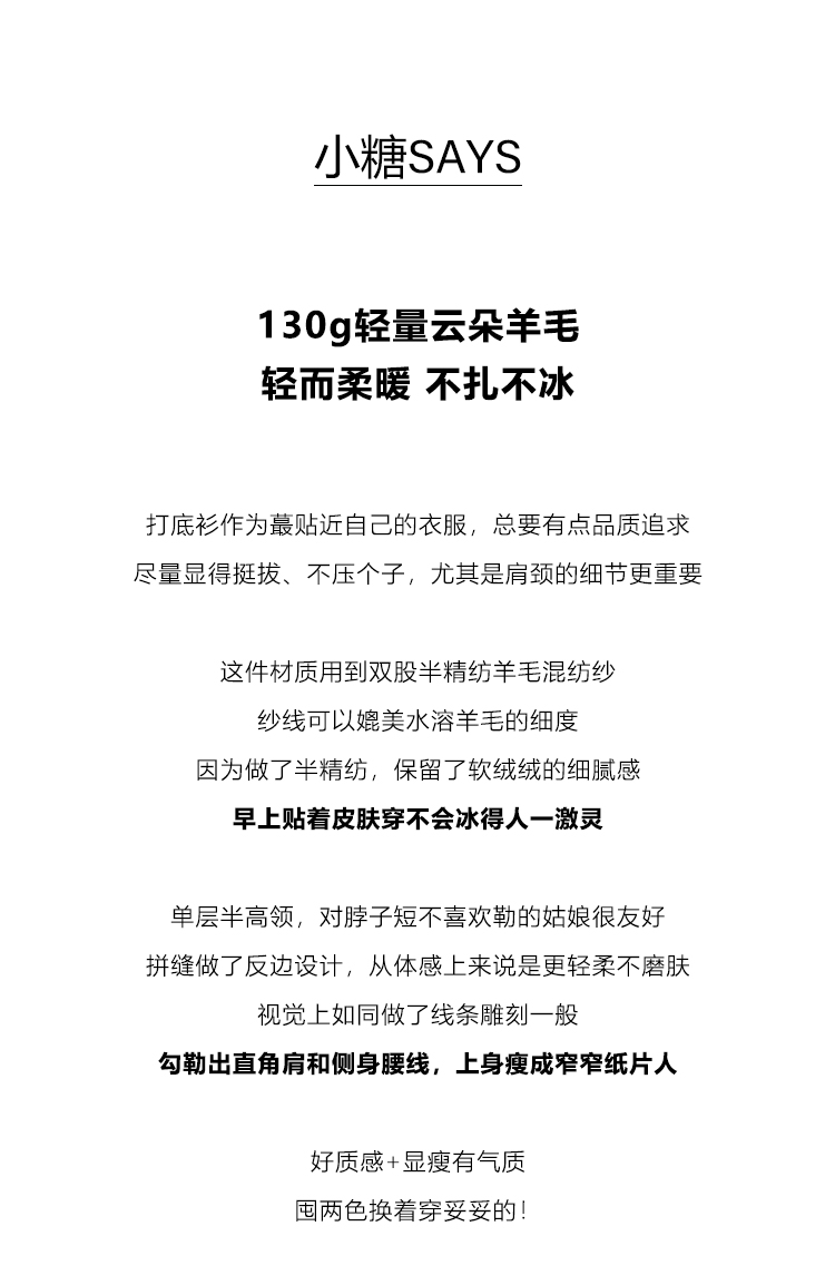 輕城蘇小糖|線雕紙片人打底衫 半高領修身顯瘦針織內搭可機洗羊毛