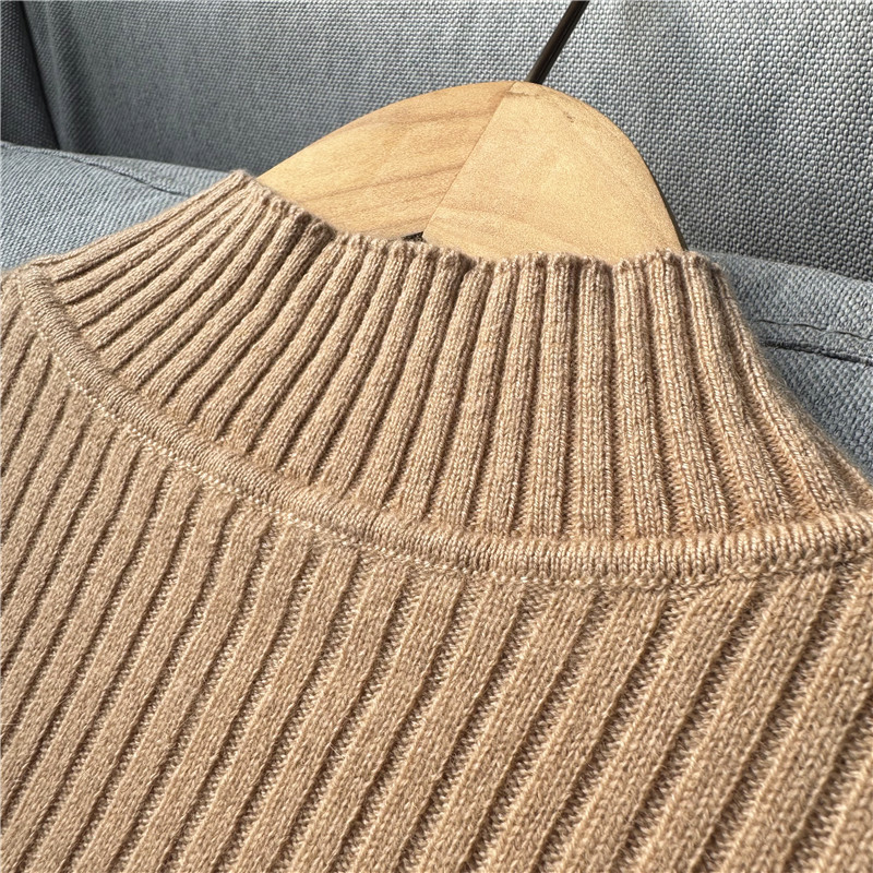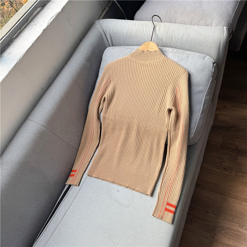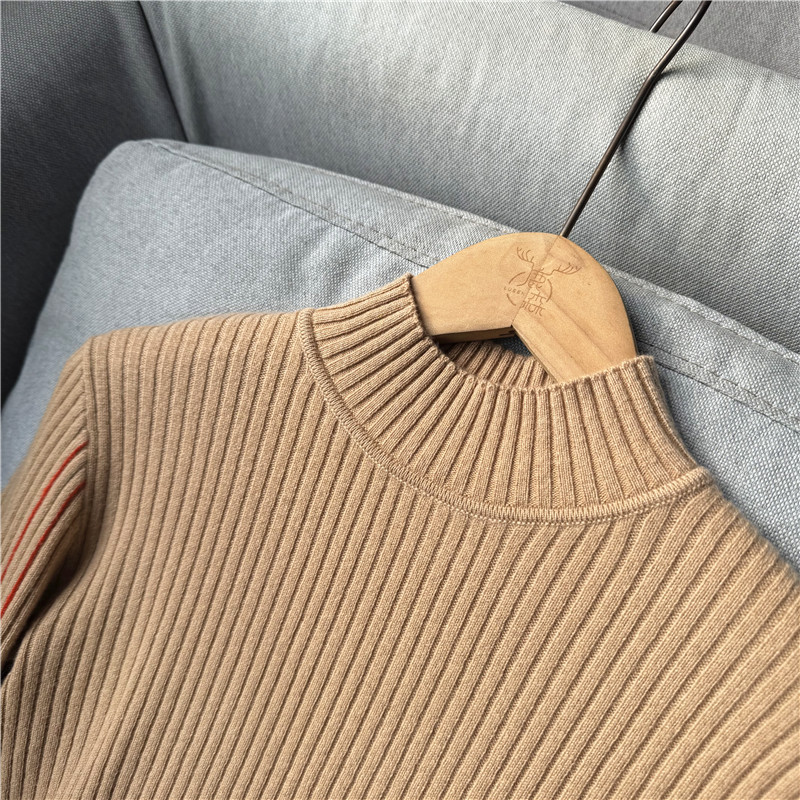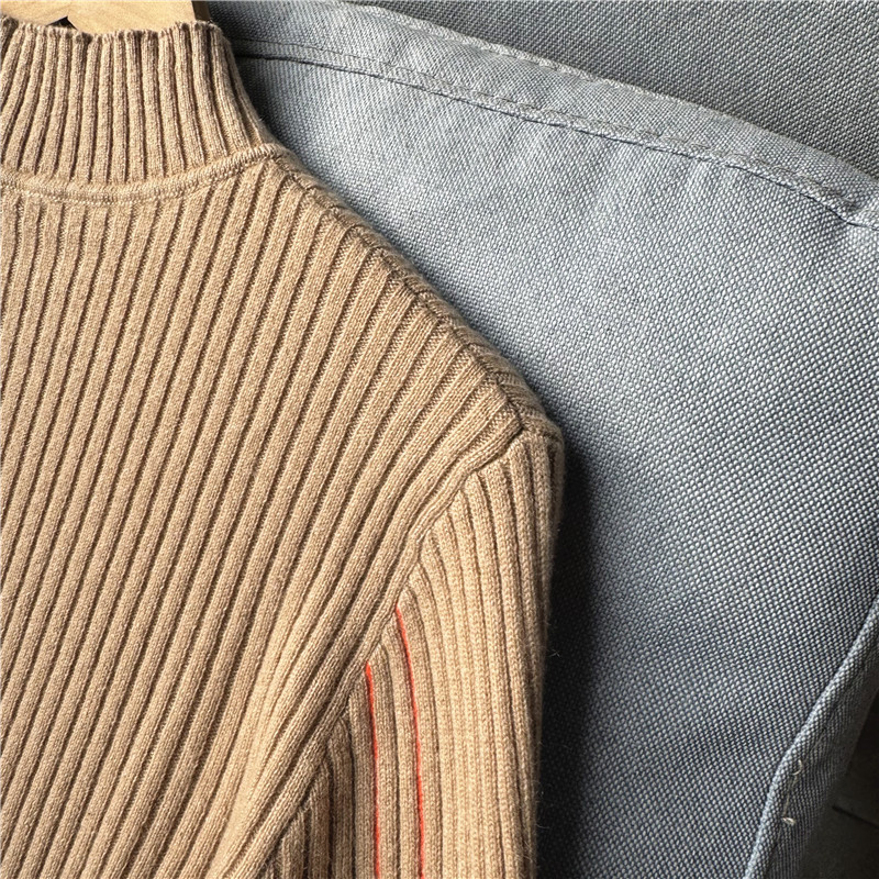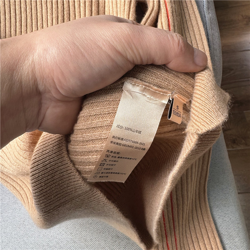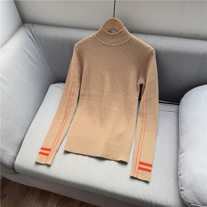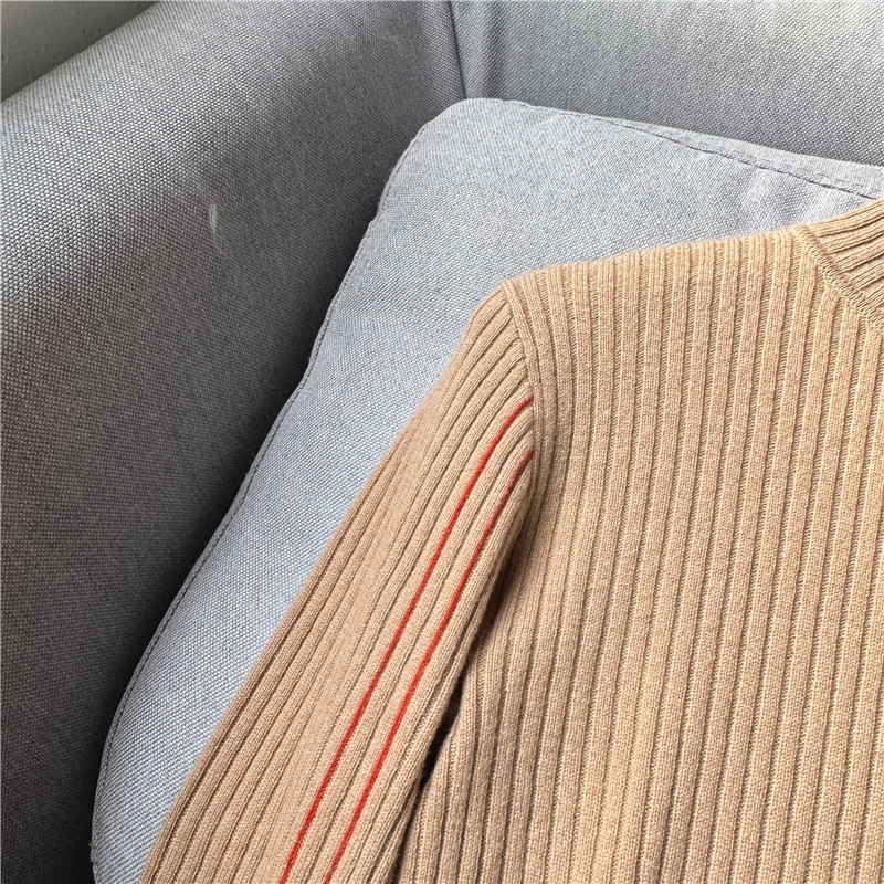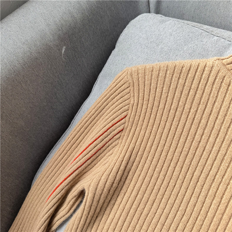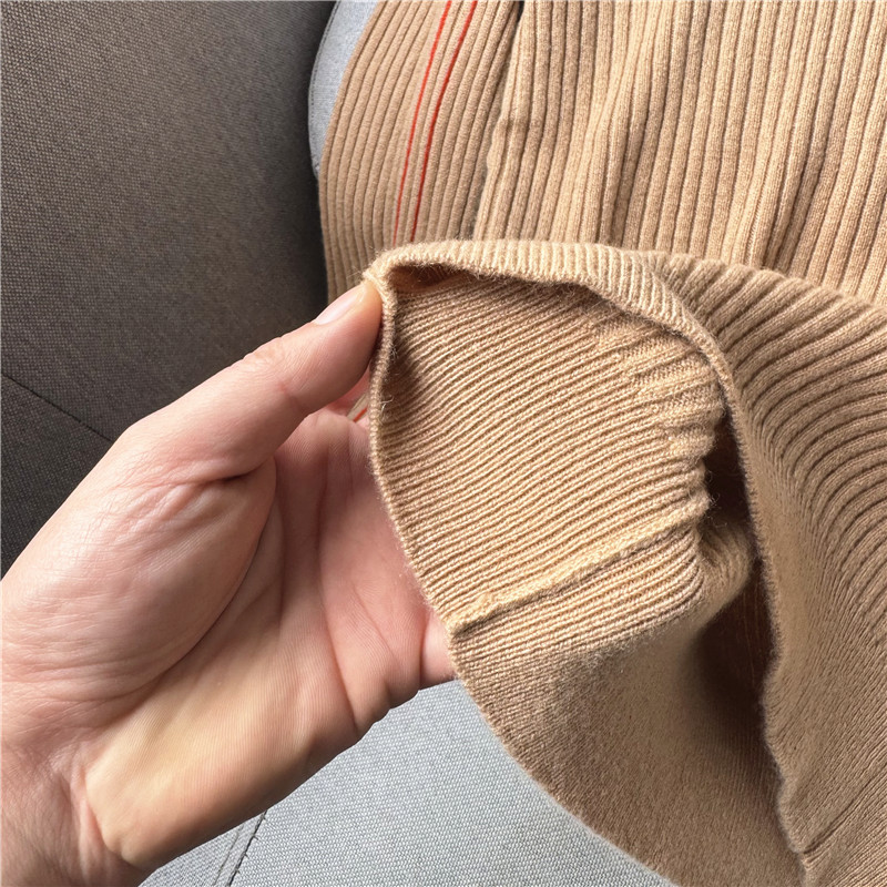 鄭任性時尚修身氣質羊絨打底衫 小高領100%山羊絨撞色打底毛衣