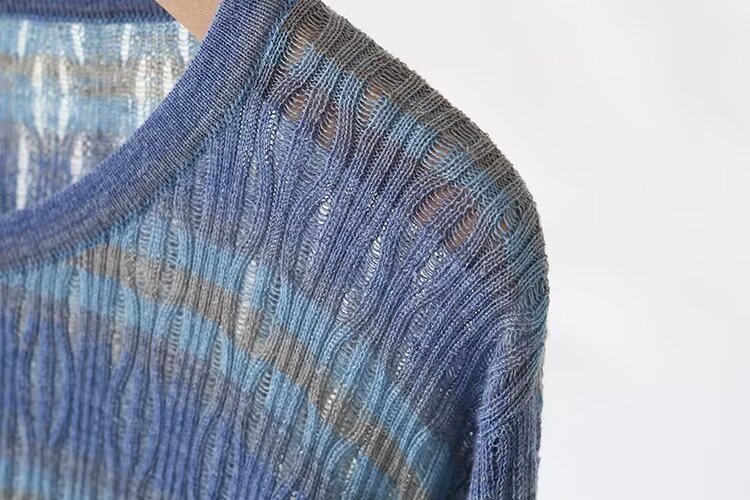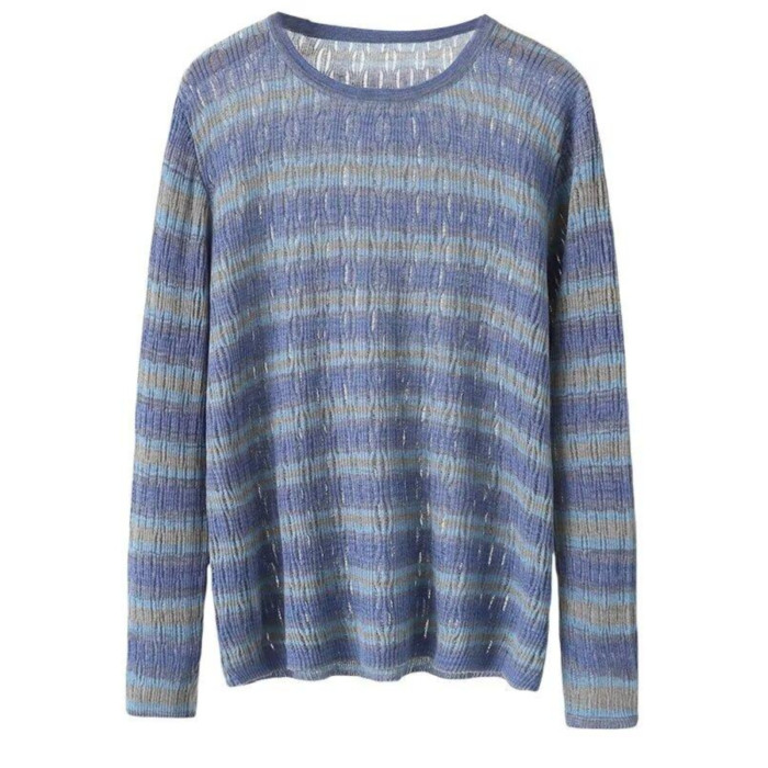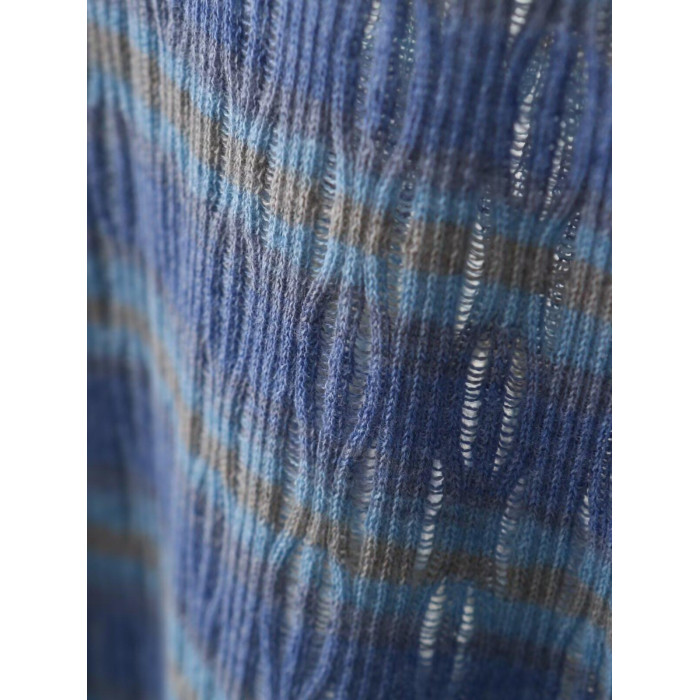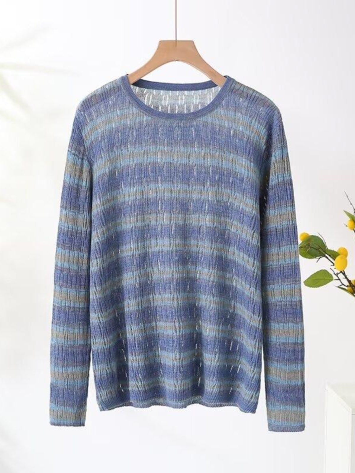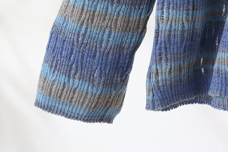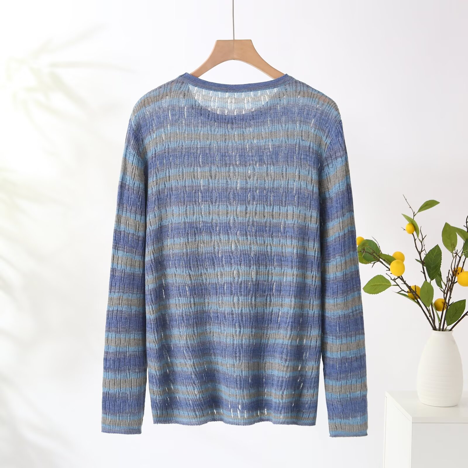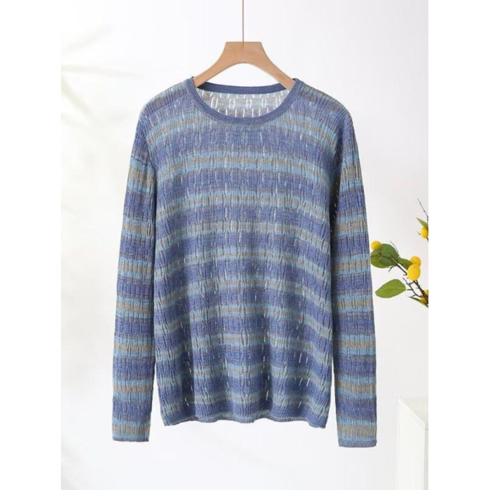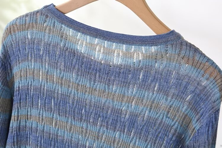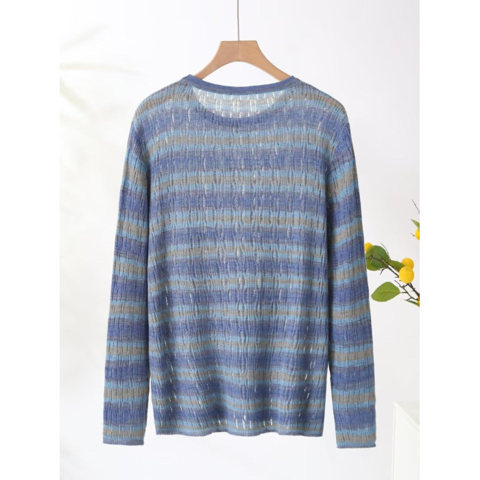 大碼撞色條紋圓領針織衫春秋長袖打底衫法式小款設計感小衆上衣