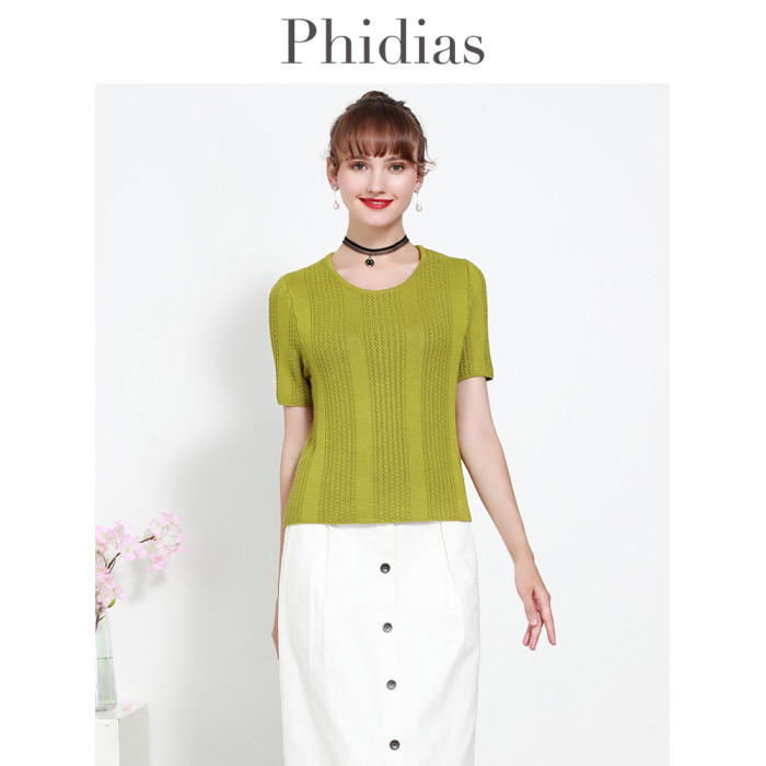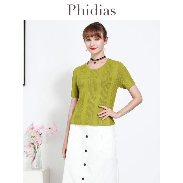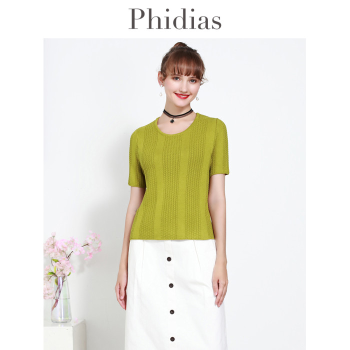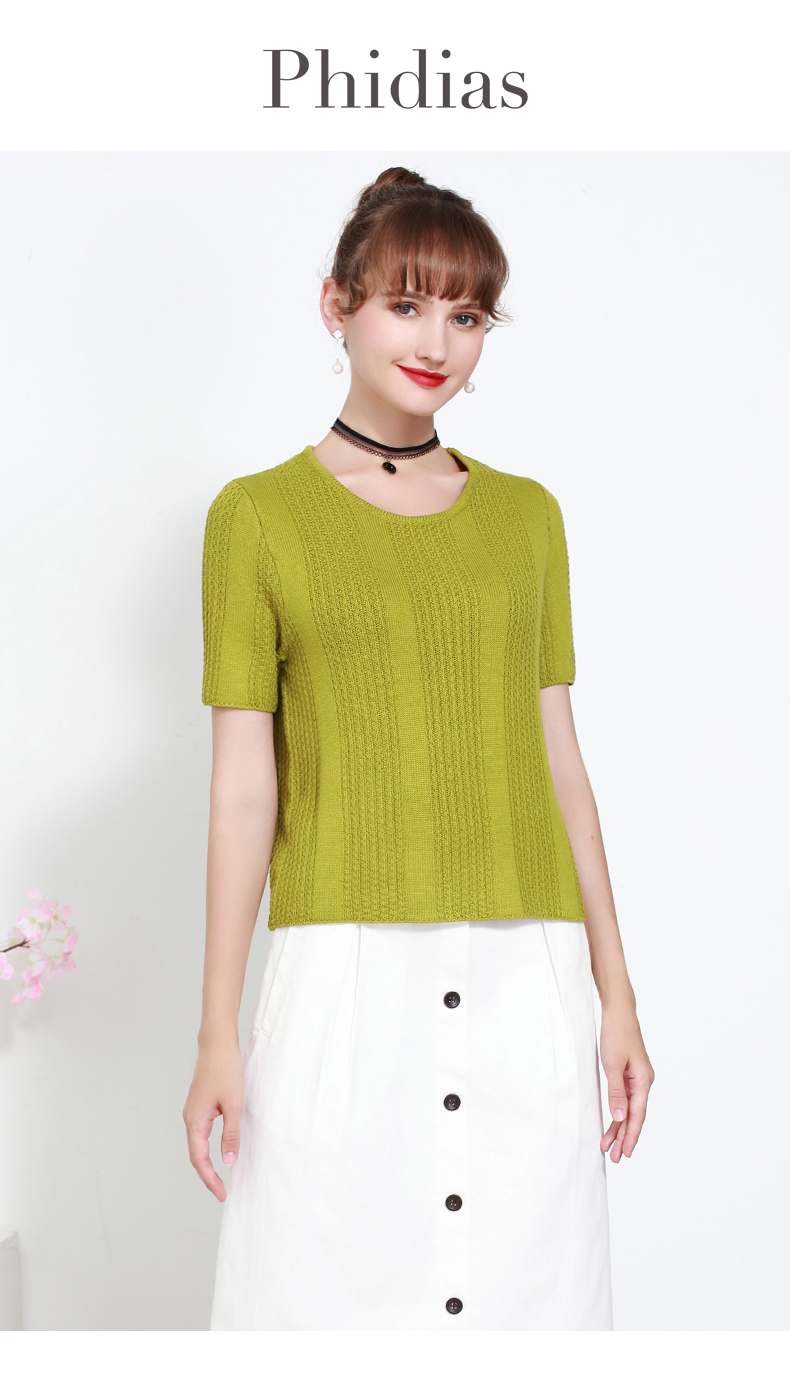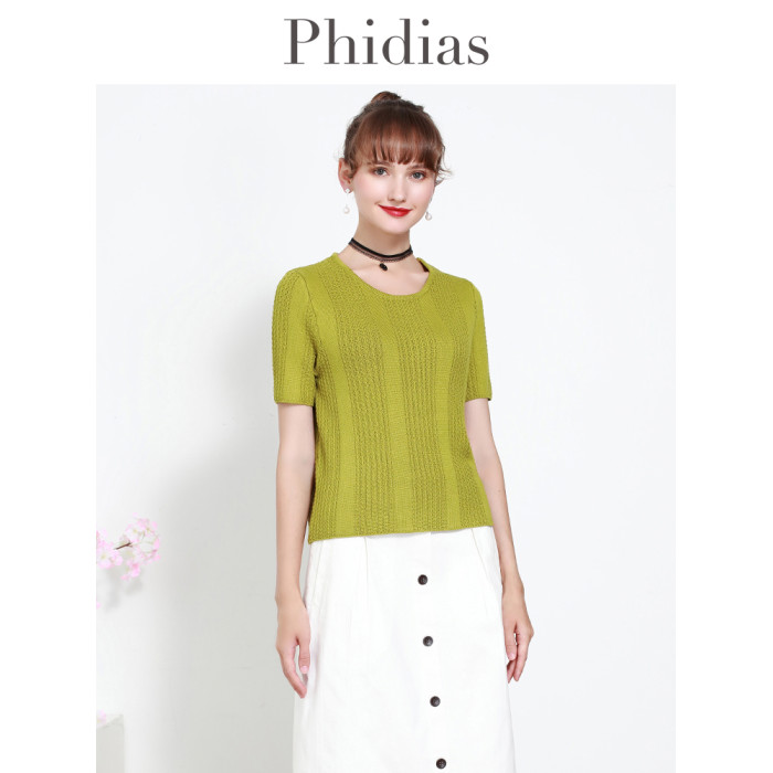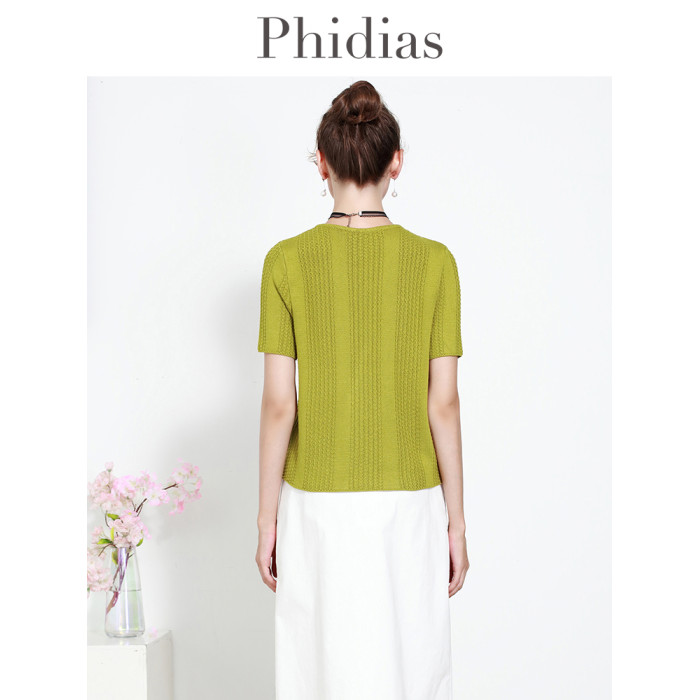 Phidias圓領短款針織衫外套女2025夏新款內搭毛衣短袖打底衫上衣