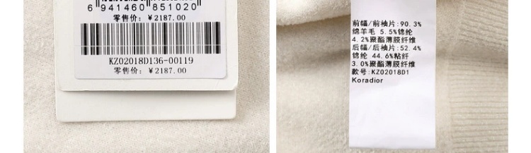 材質成分 | 羊毛90.3% 聚醯胺纖維(錦綸)5.5% 其他4.2% |