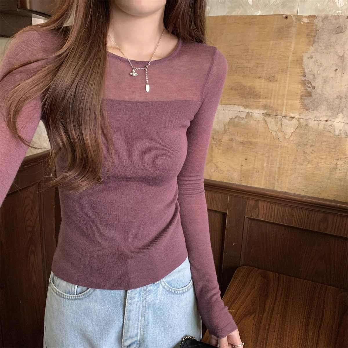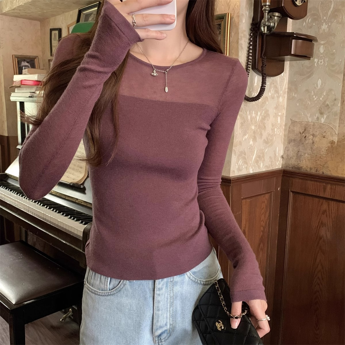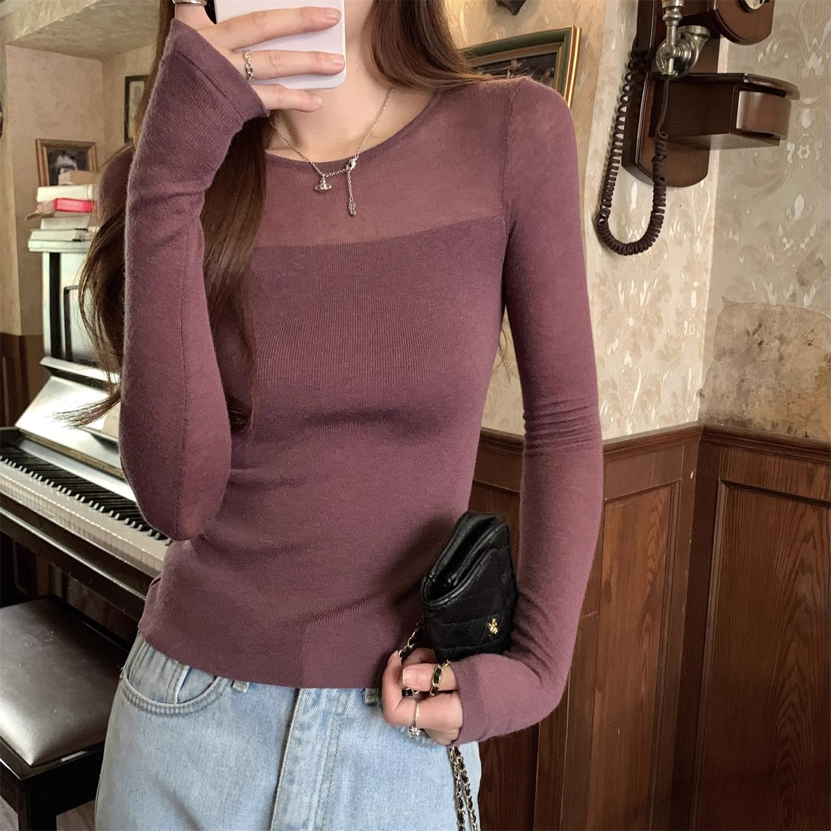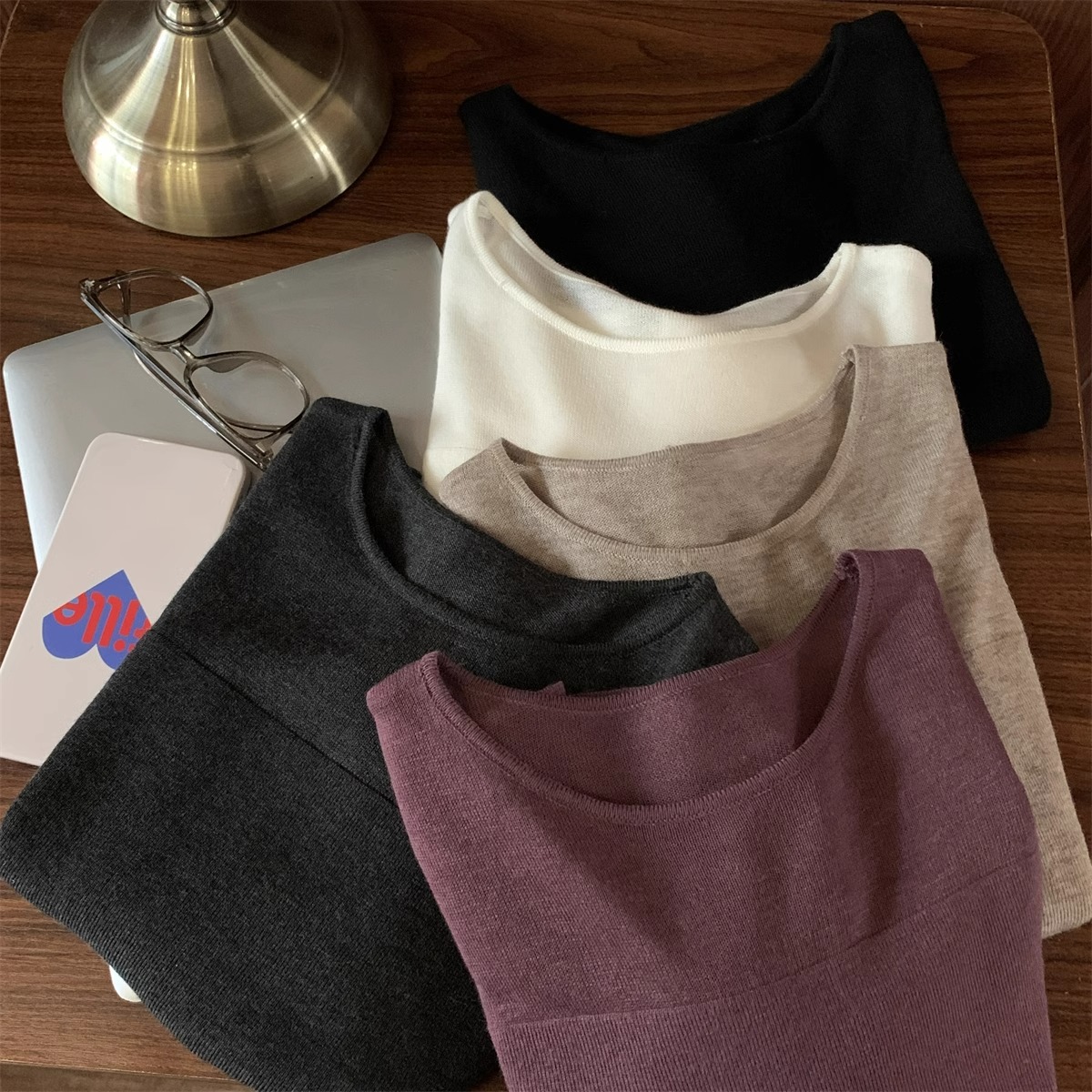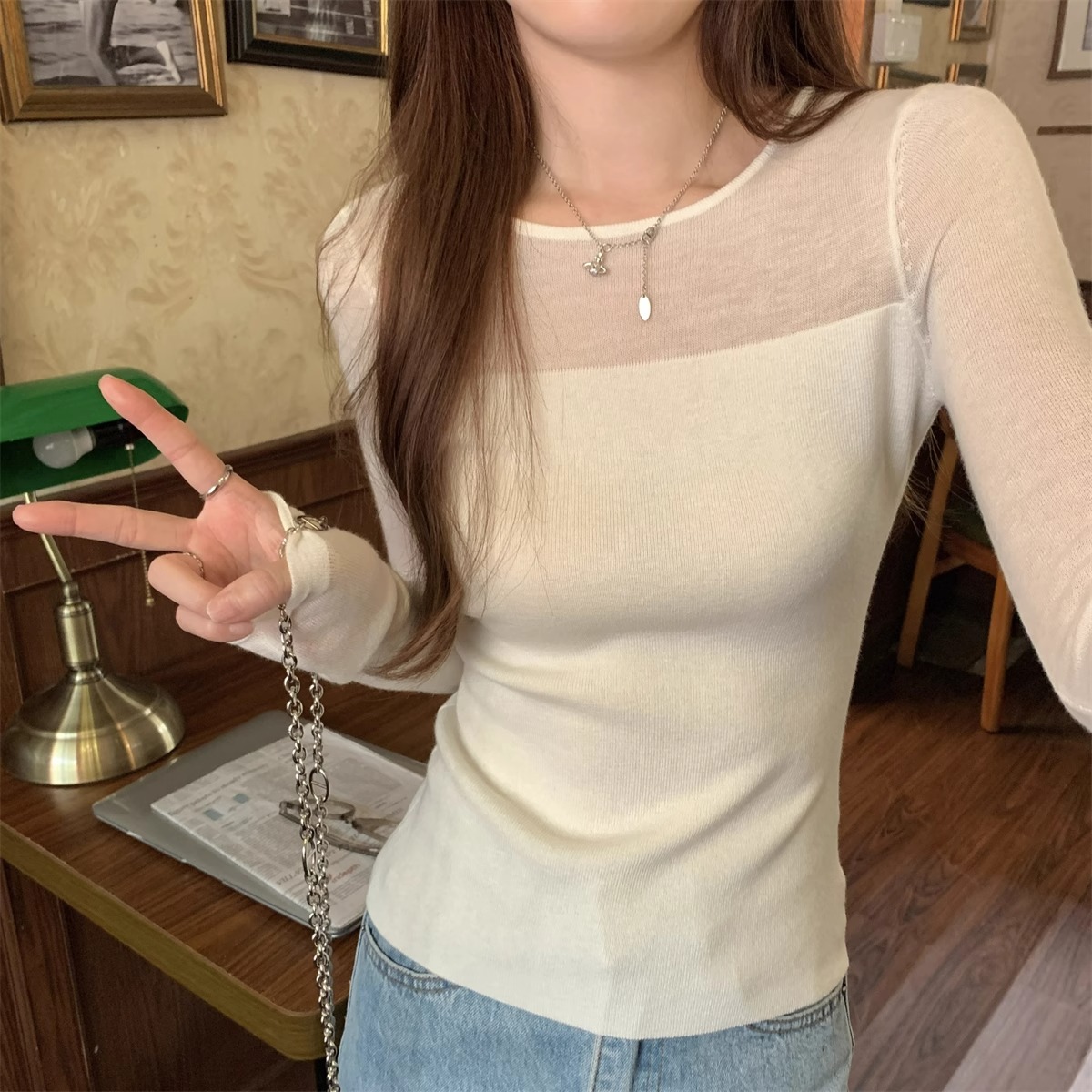 拉夏貝爾杏色針織打底衫女春秋2025年新款高級感內搭修身長袖上衣