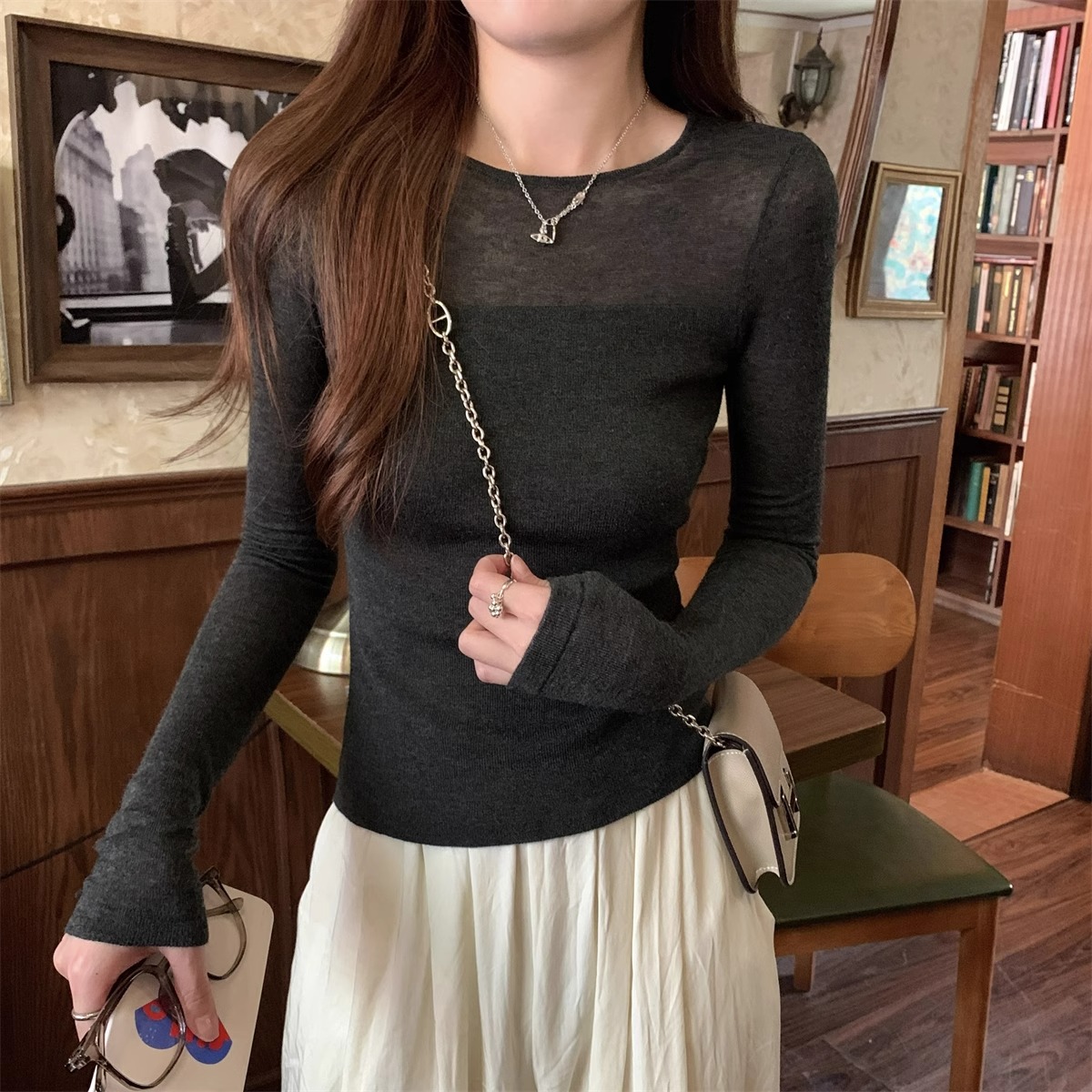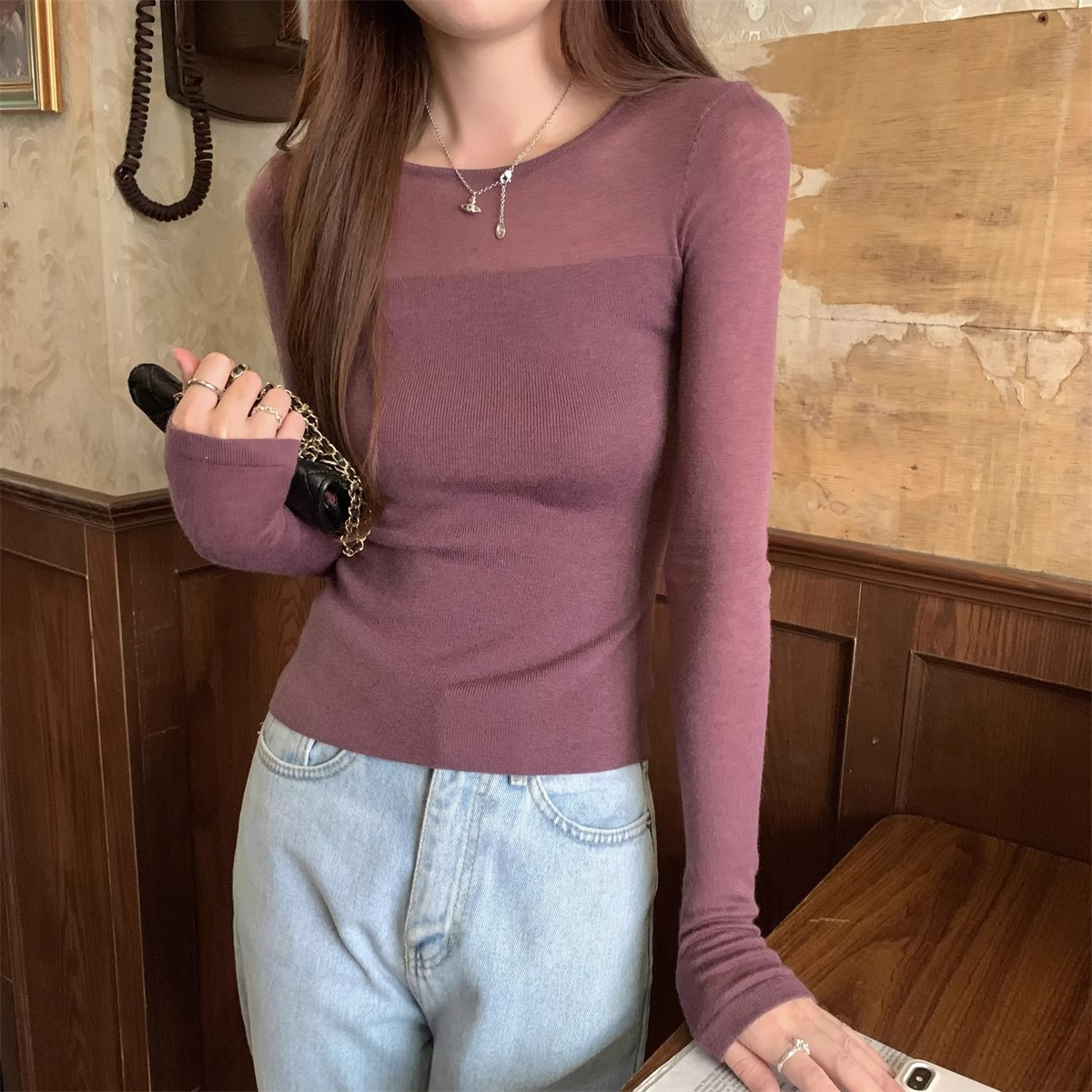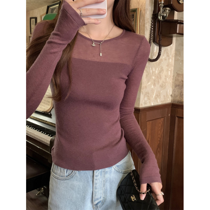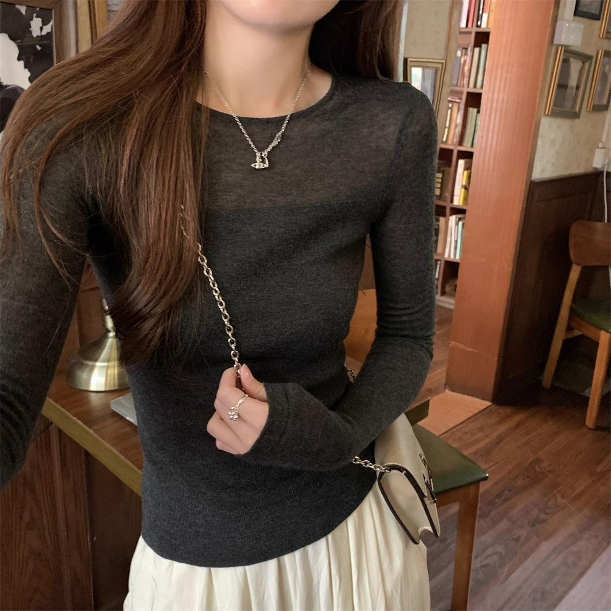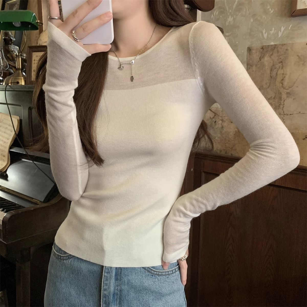拉夏貝爾杏色針織打底衫女春秋2025年新款高級感內搭修身長袖上衣