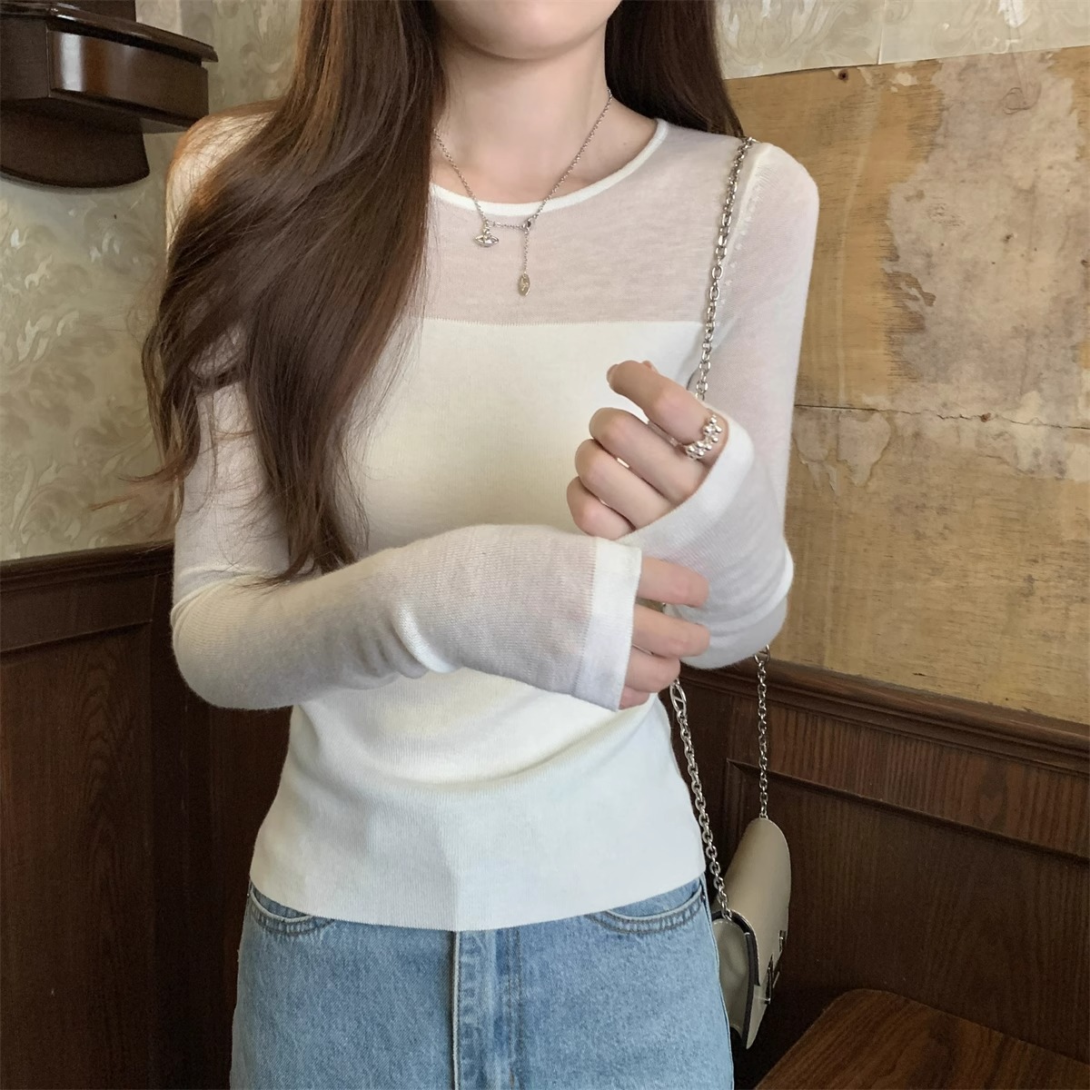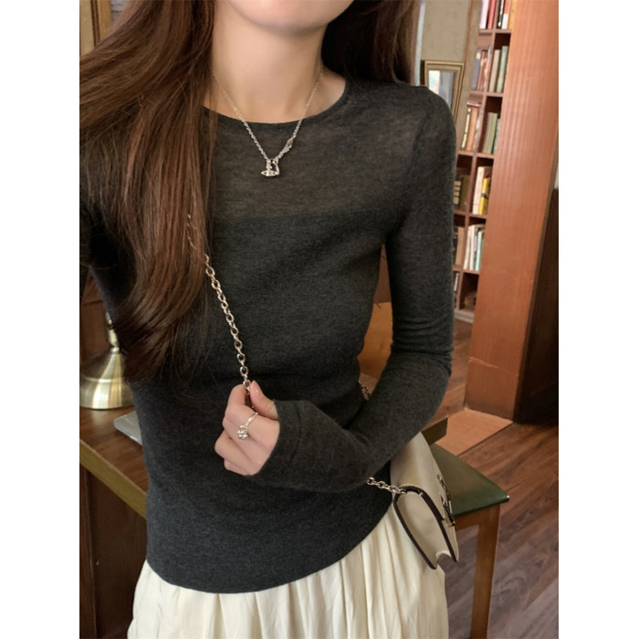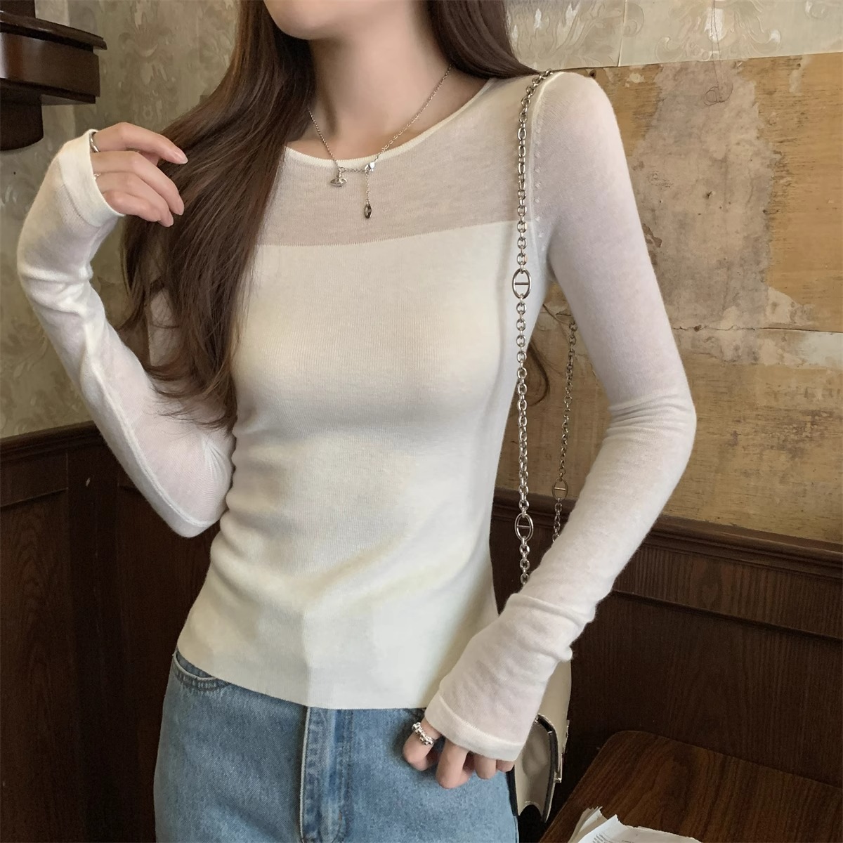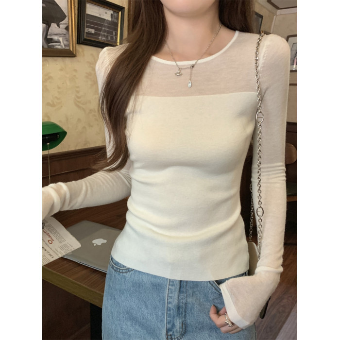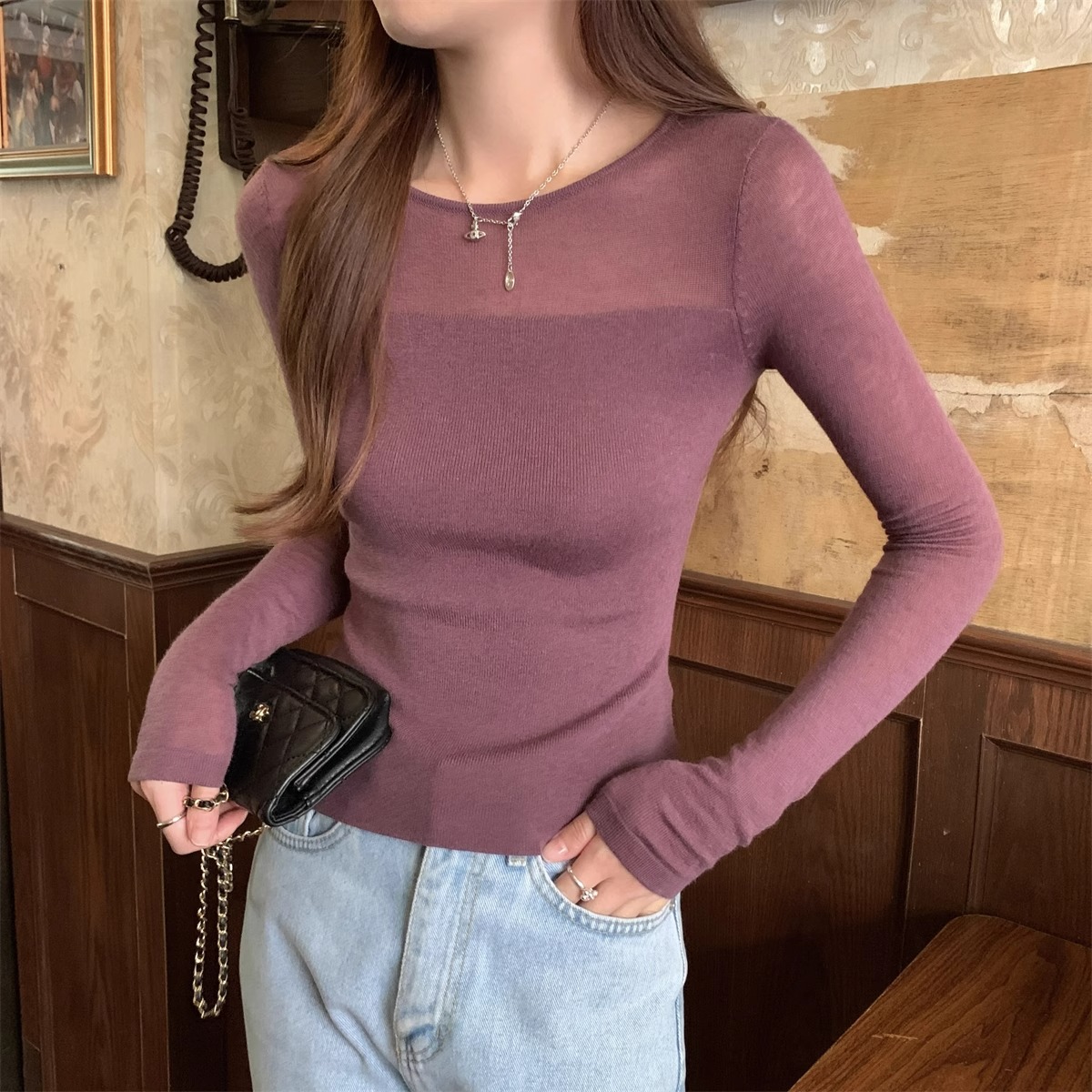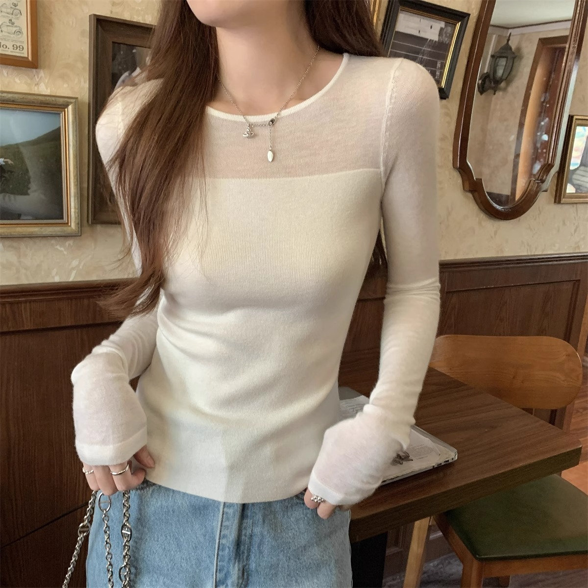 拉夏貝爾杏色針織打底衫女春秋2025年新款高級感內搭修身長袖上衣