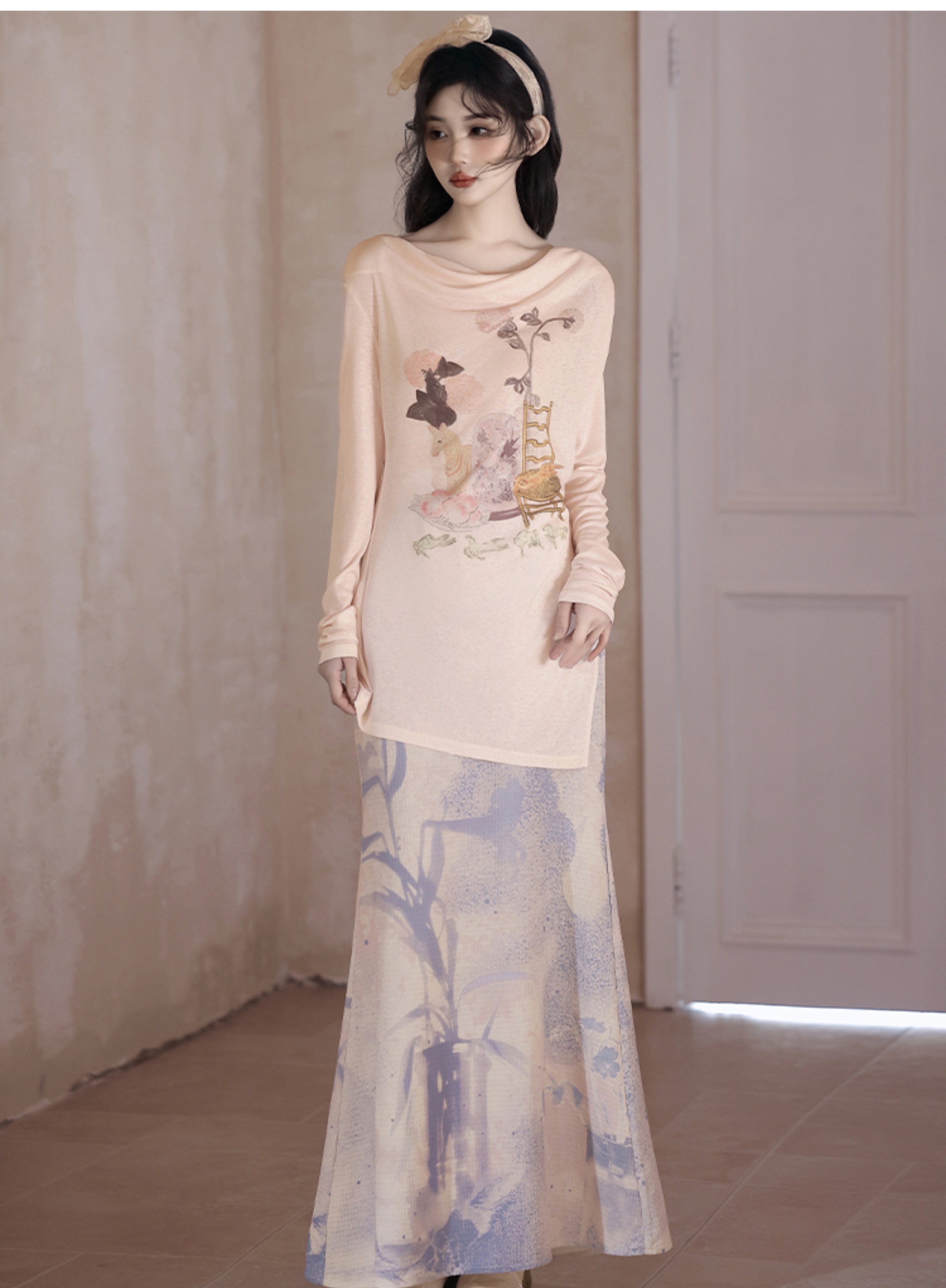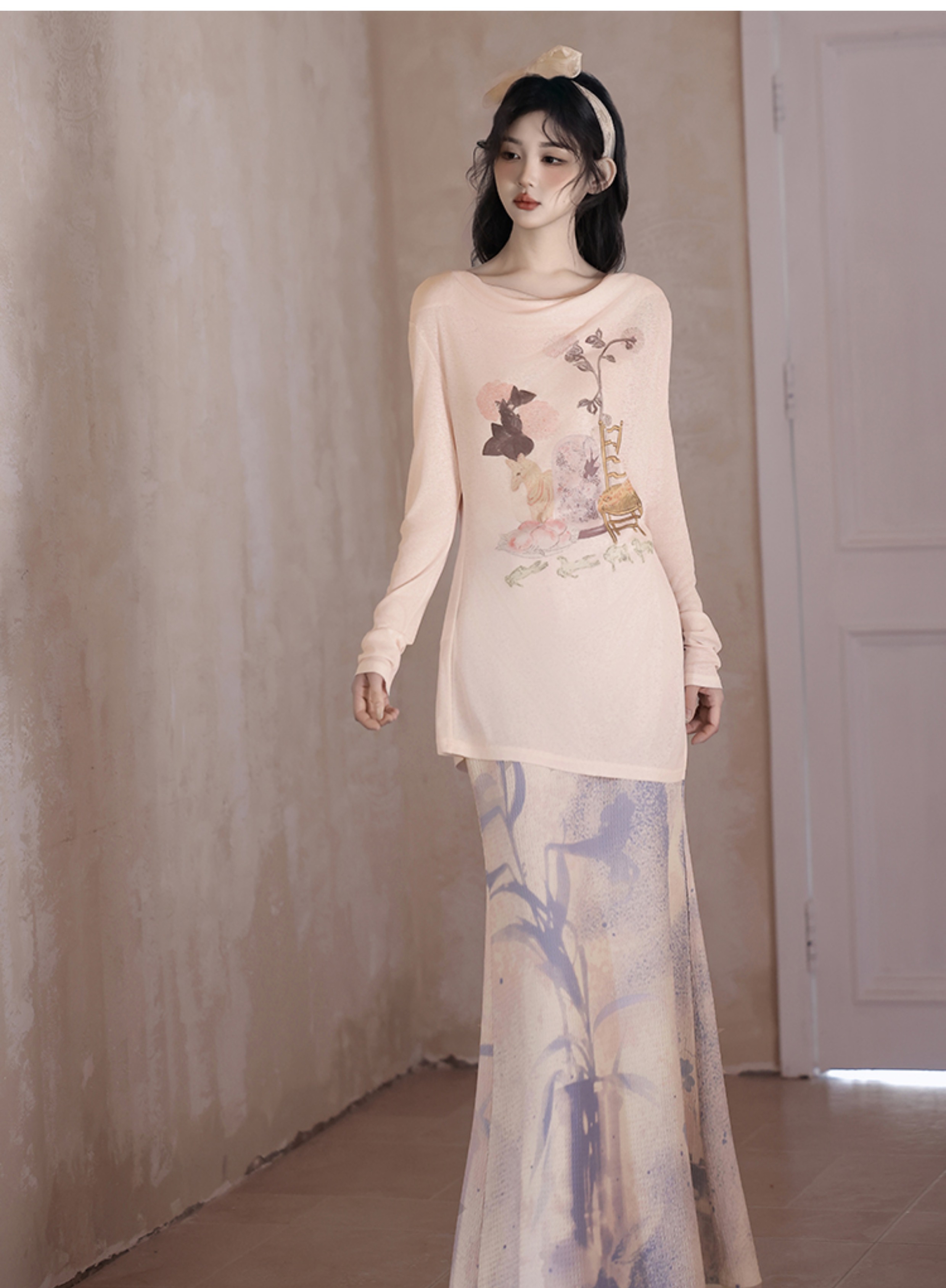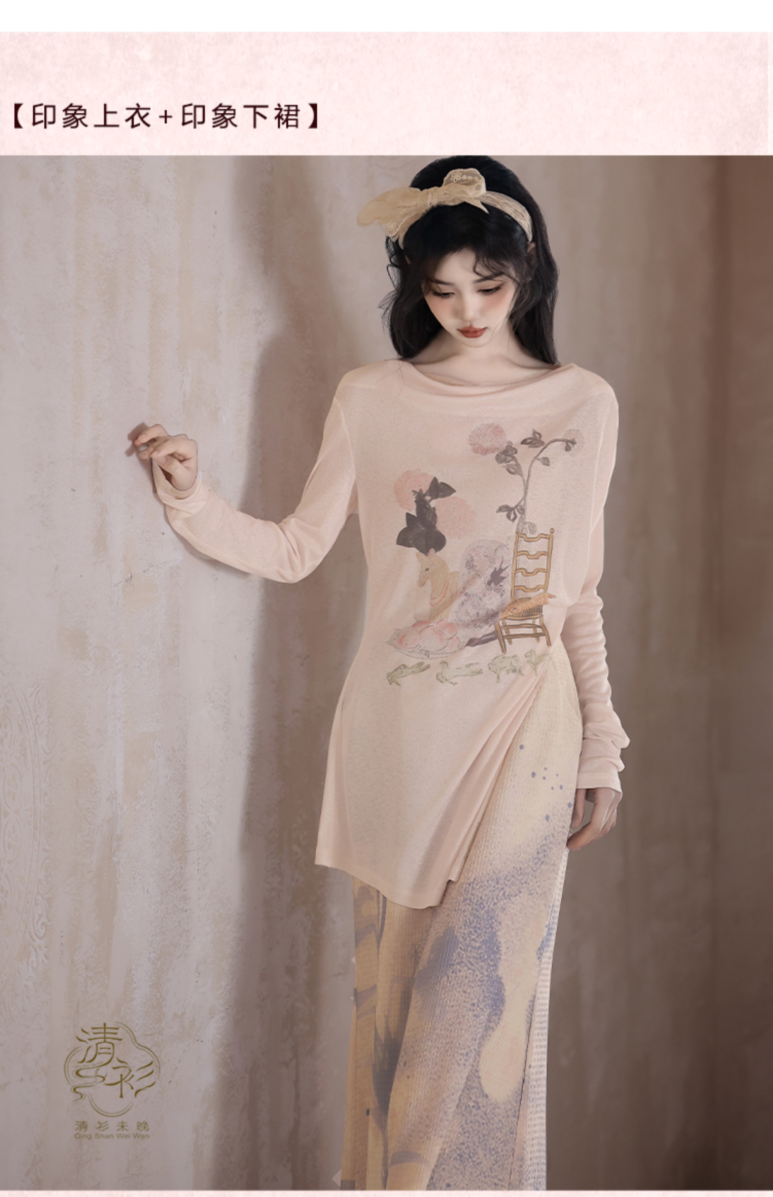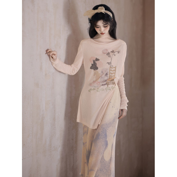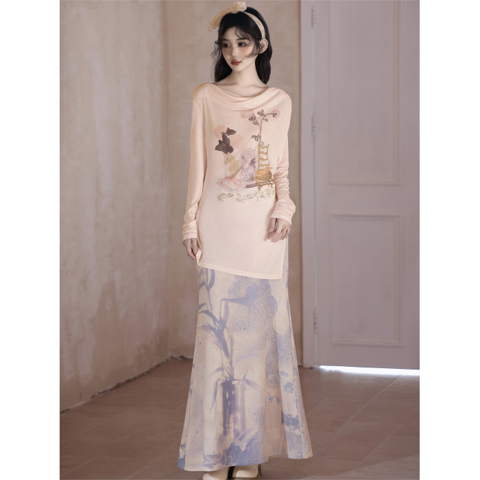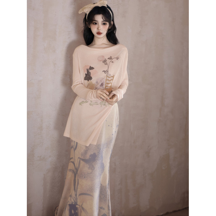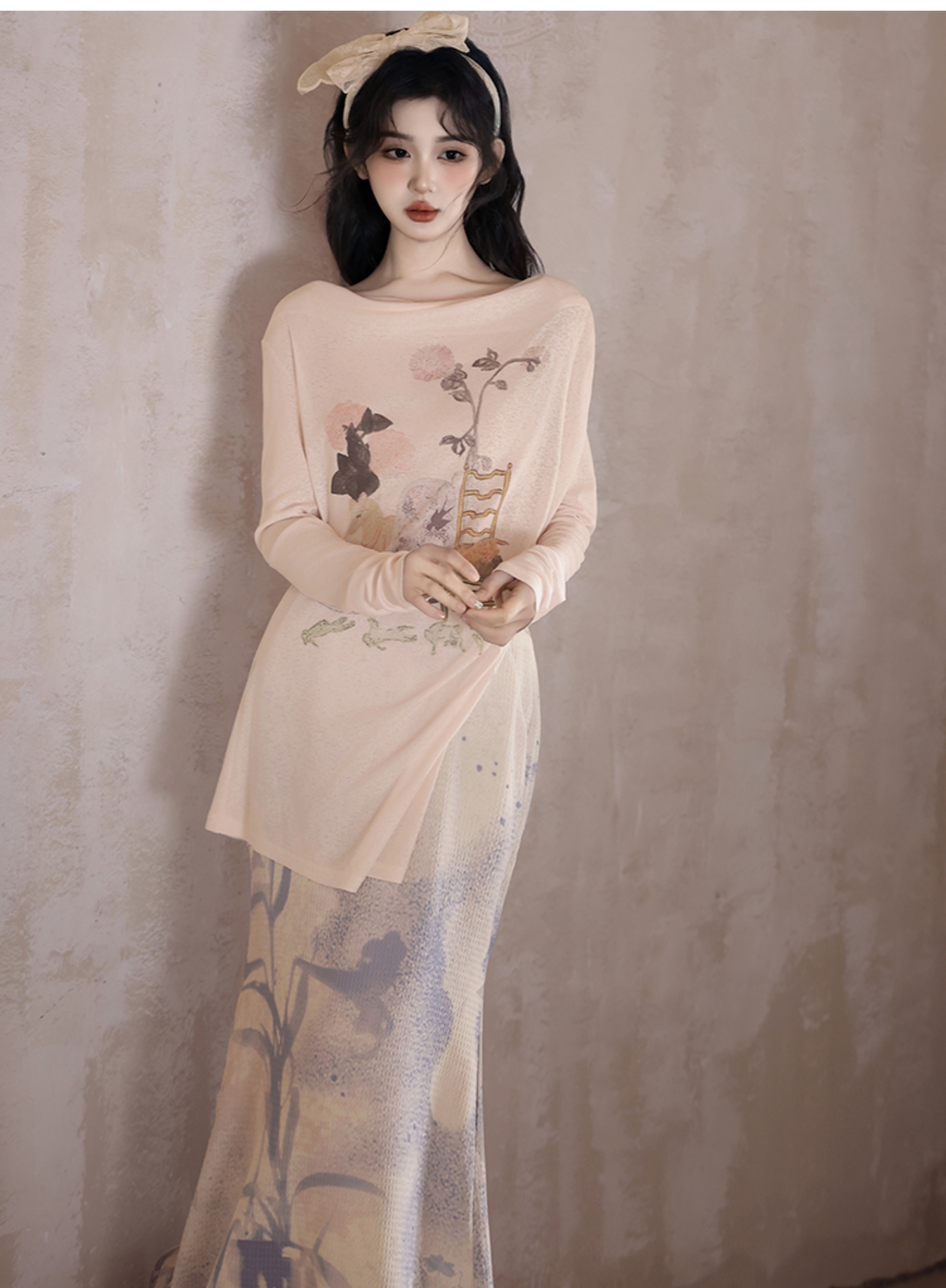 清衫未晚 印象上衣不規則打底衫 小蕩領修身內搭魚尾半身裙百搭女