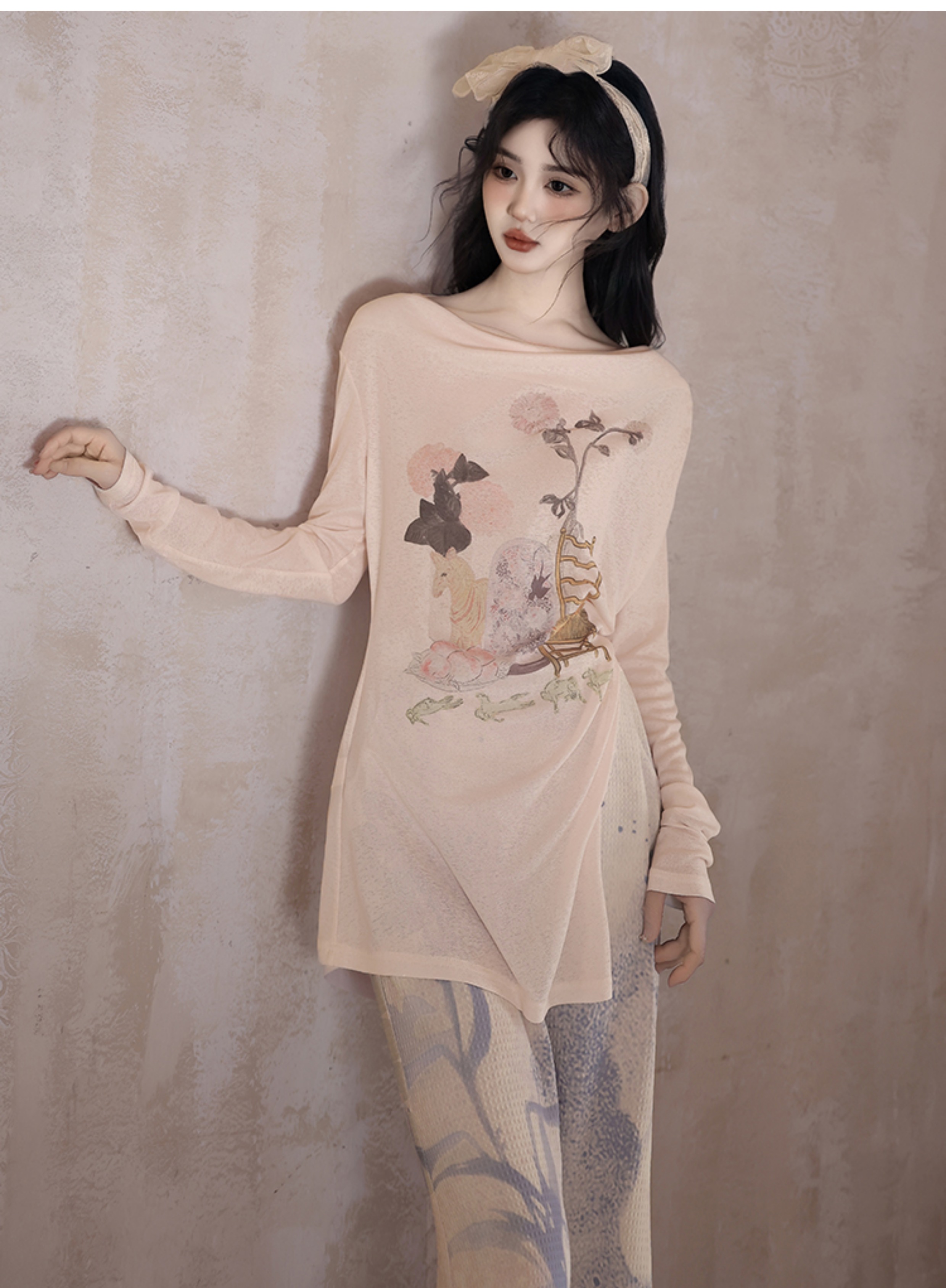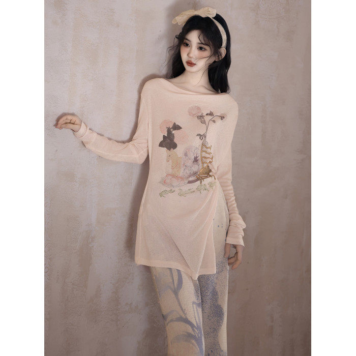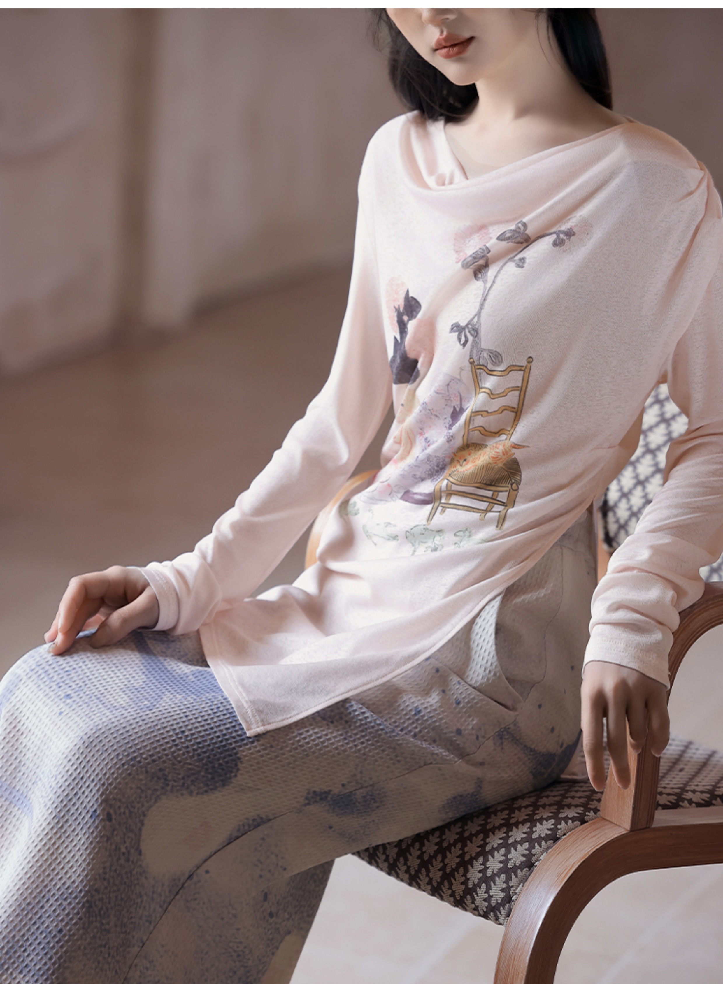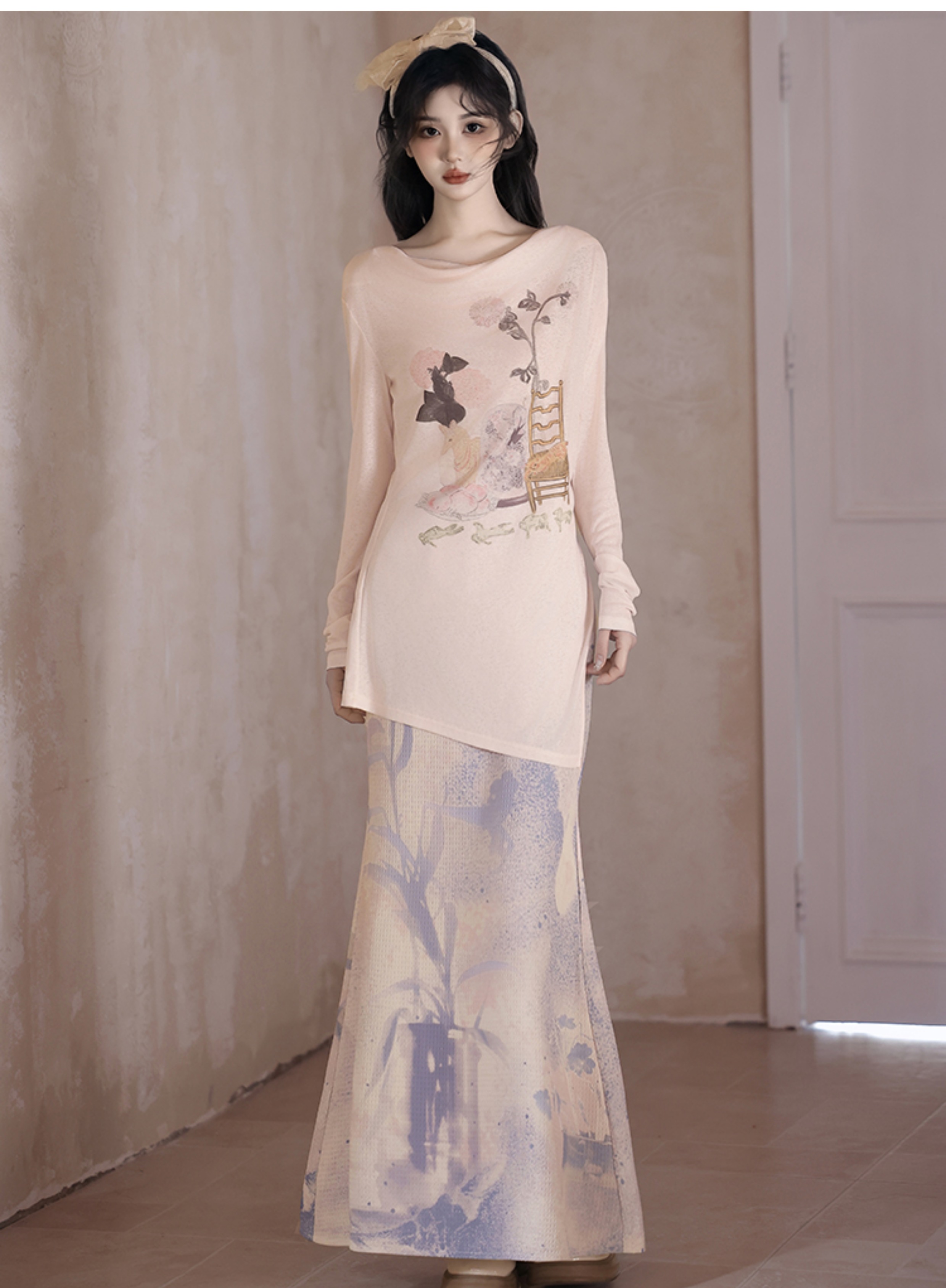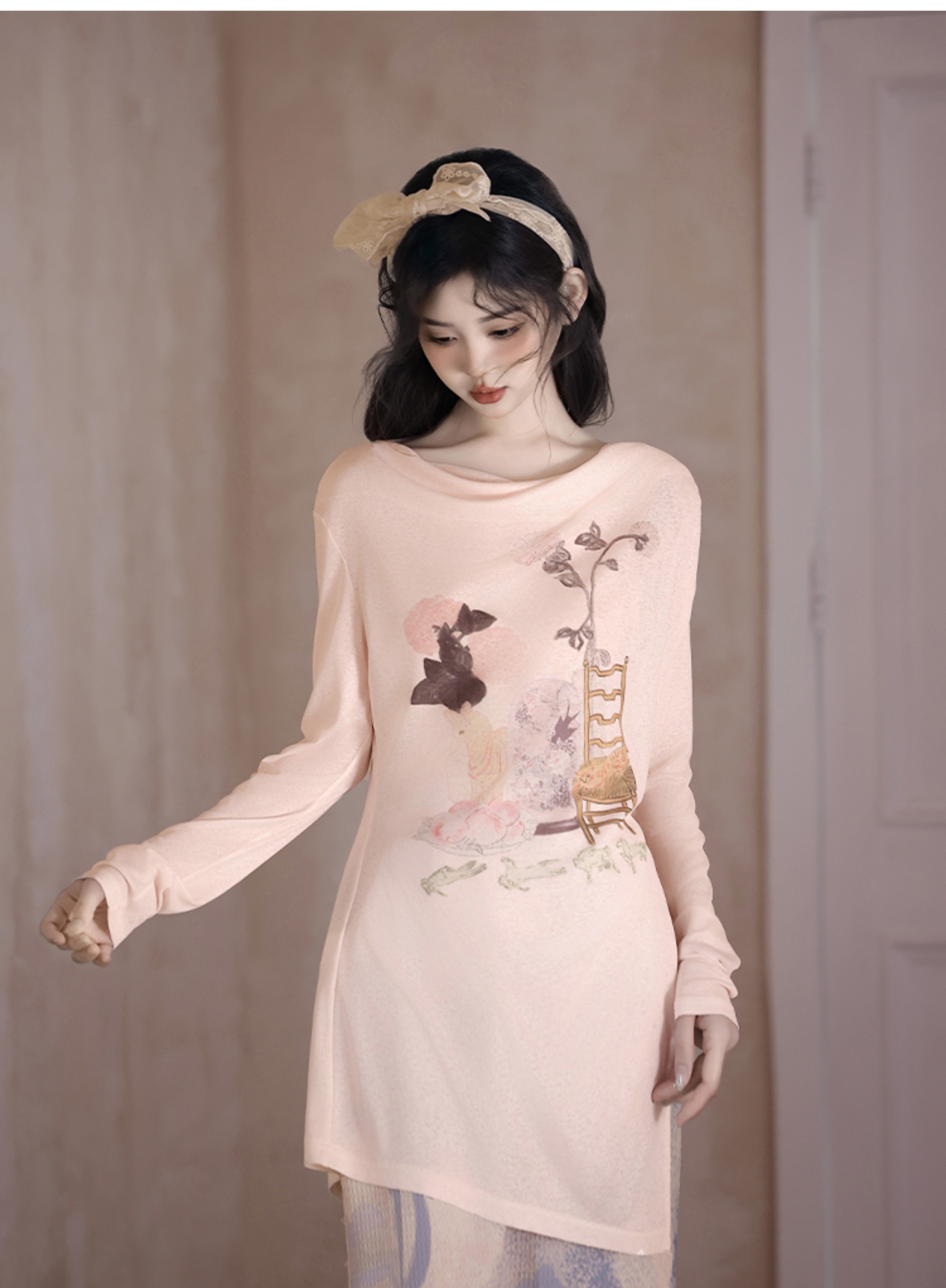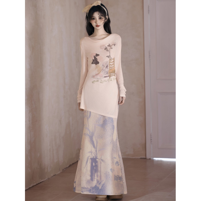 清衫未晚 印象上衣不規則打底衫 小蕩領修身內搭魚尾半身裙百搭女