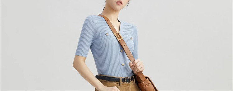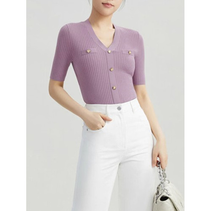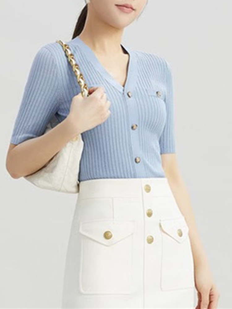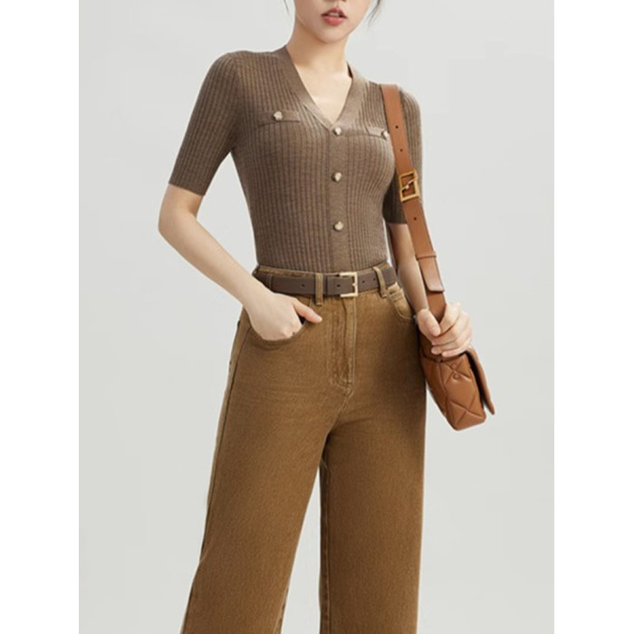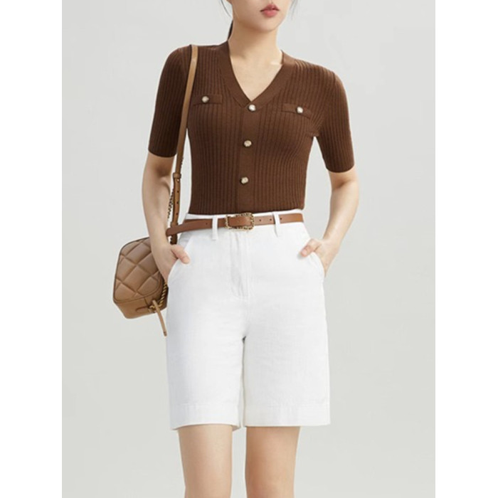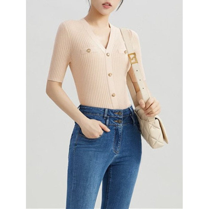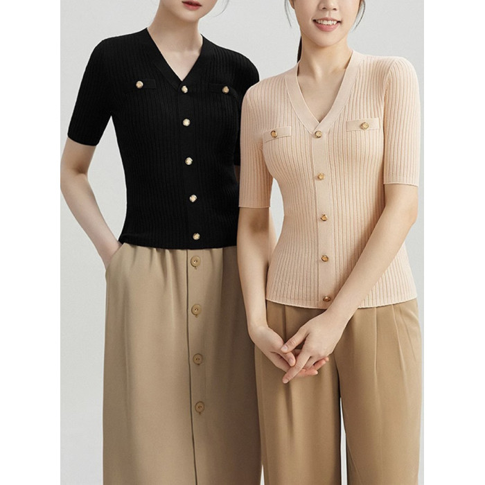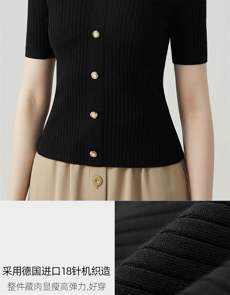 白領哥弟新2025夏羊毛V領小香風針織衫半袖女早秋修身打底衫毛衣