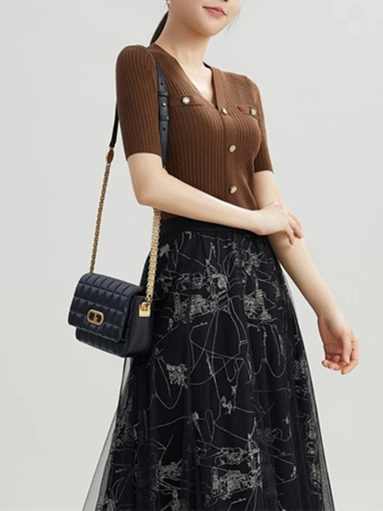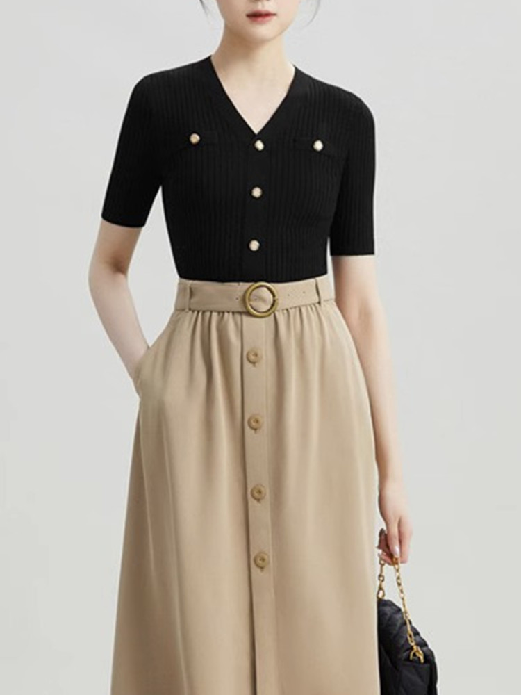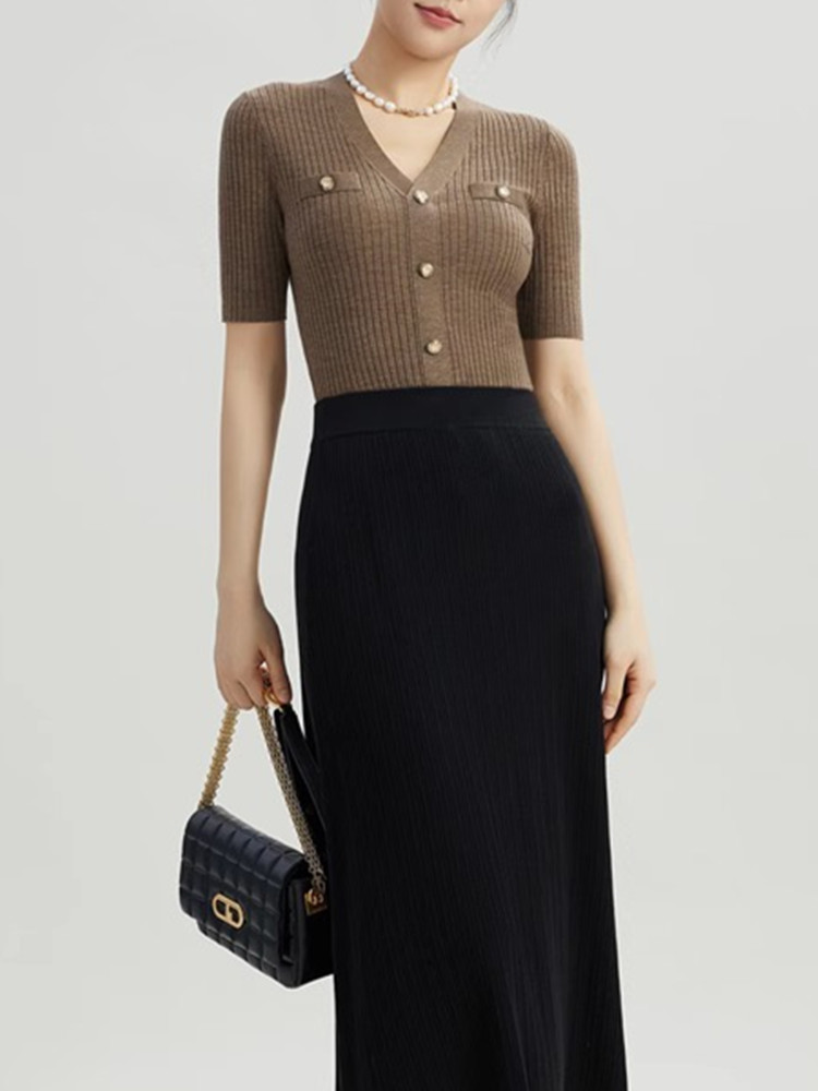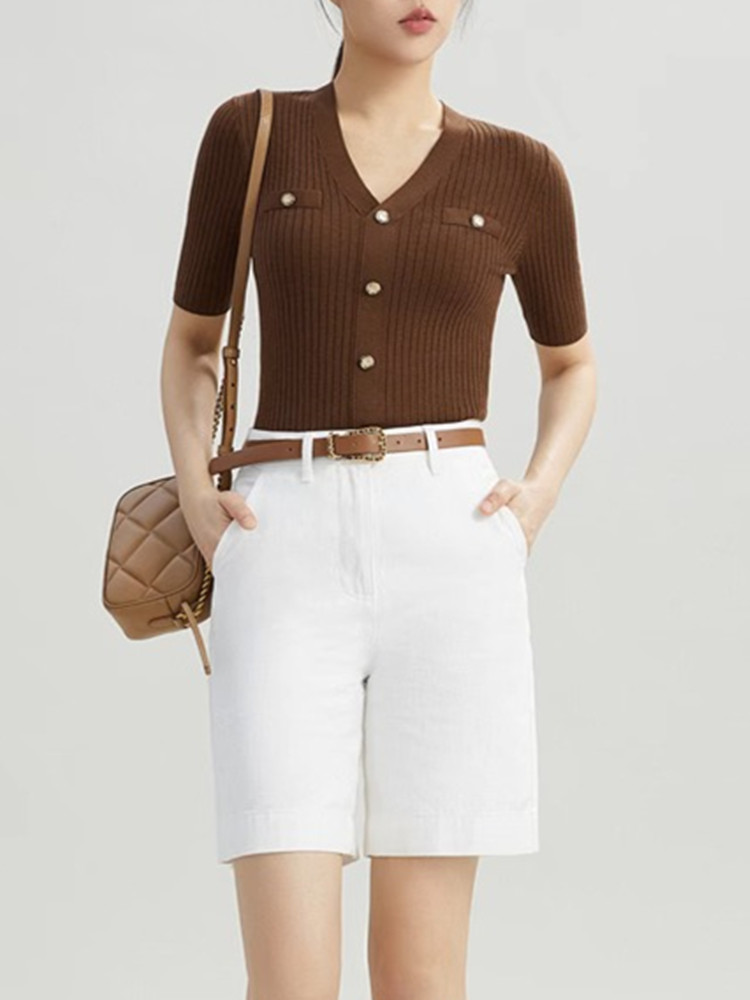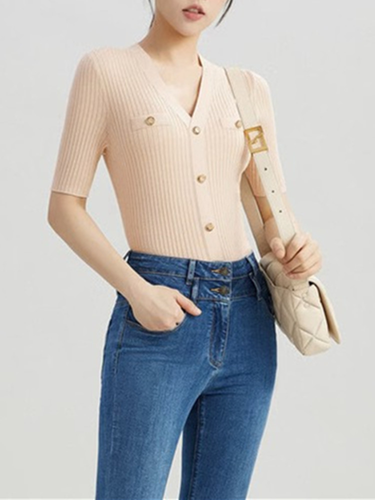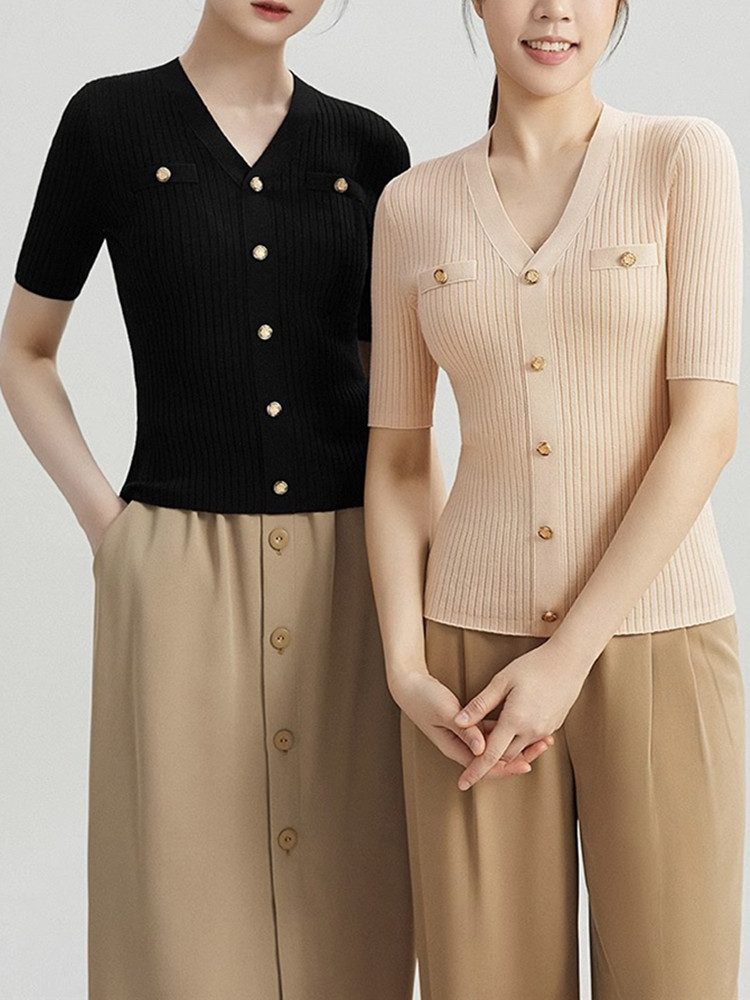 白領哥弟新2025夏羊毛V領小香風針織衫半袖女早秋修身打底衫毛衣
