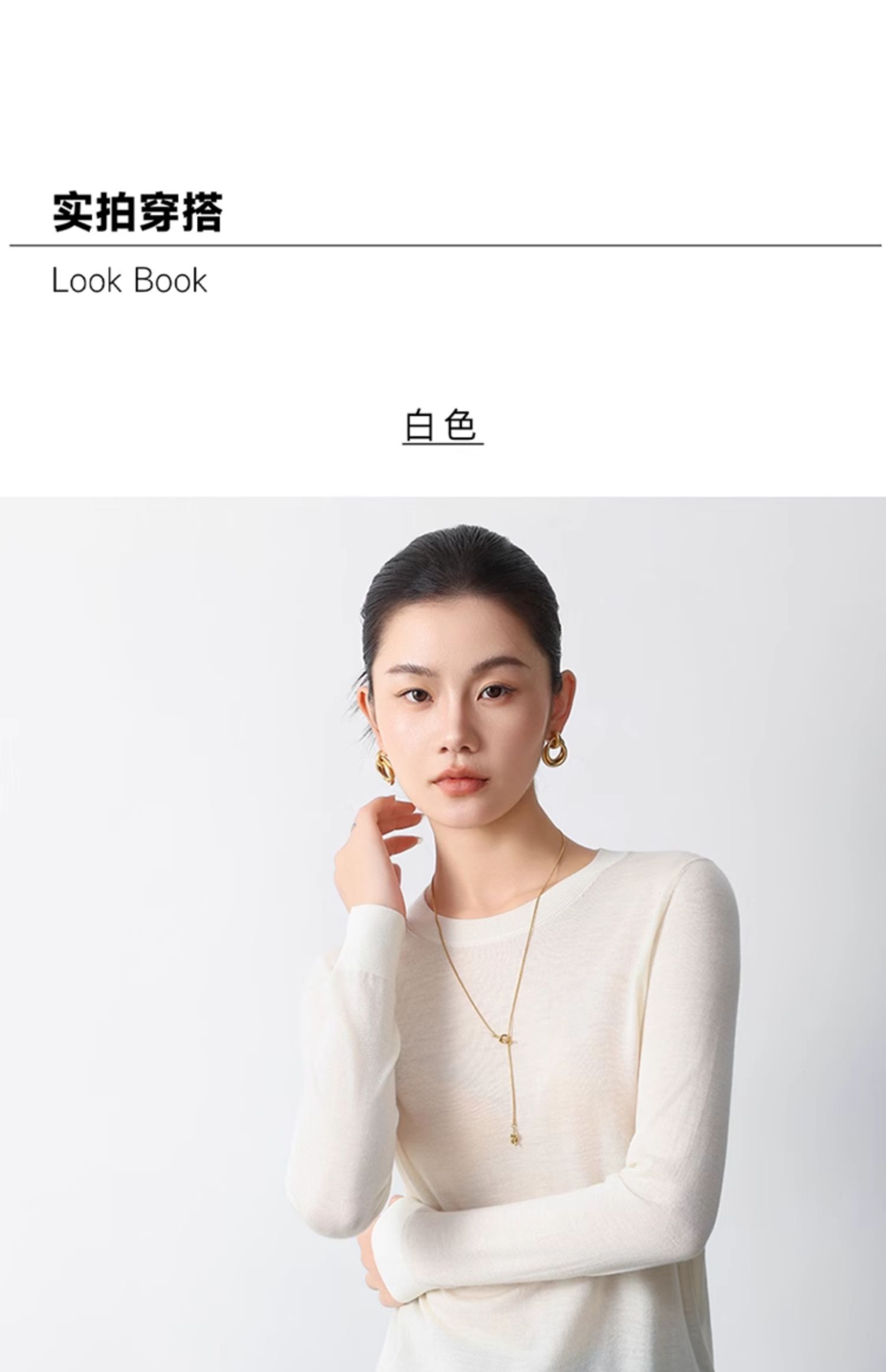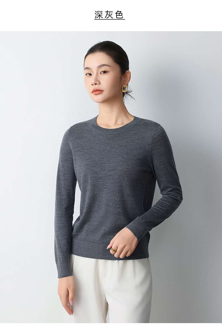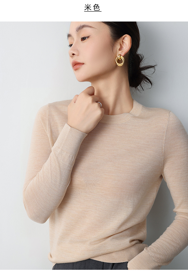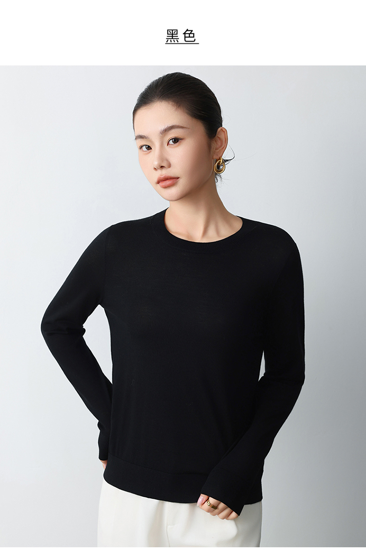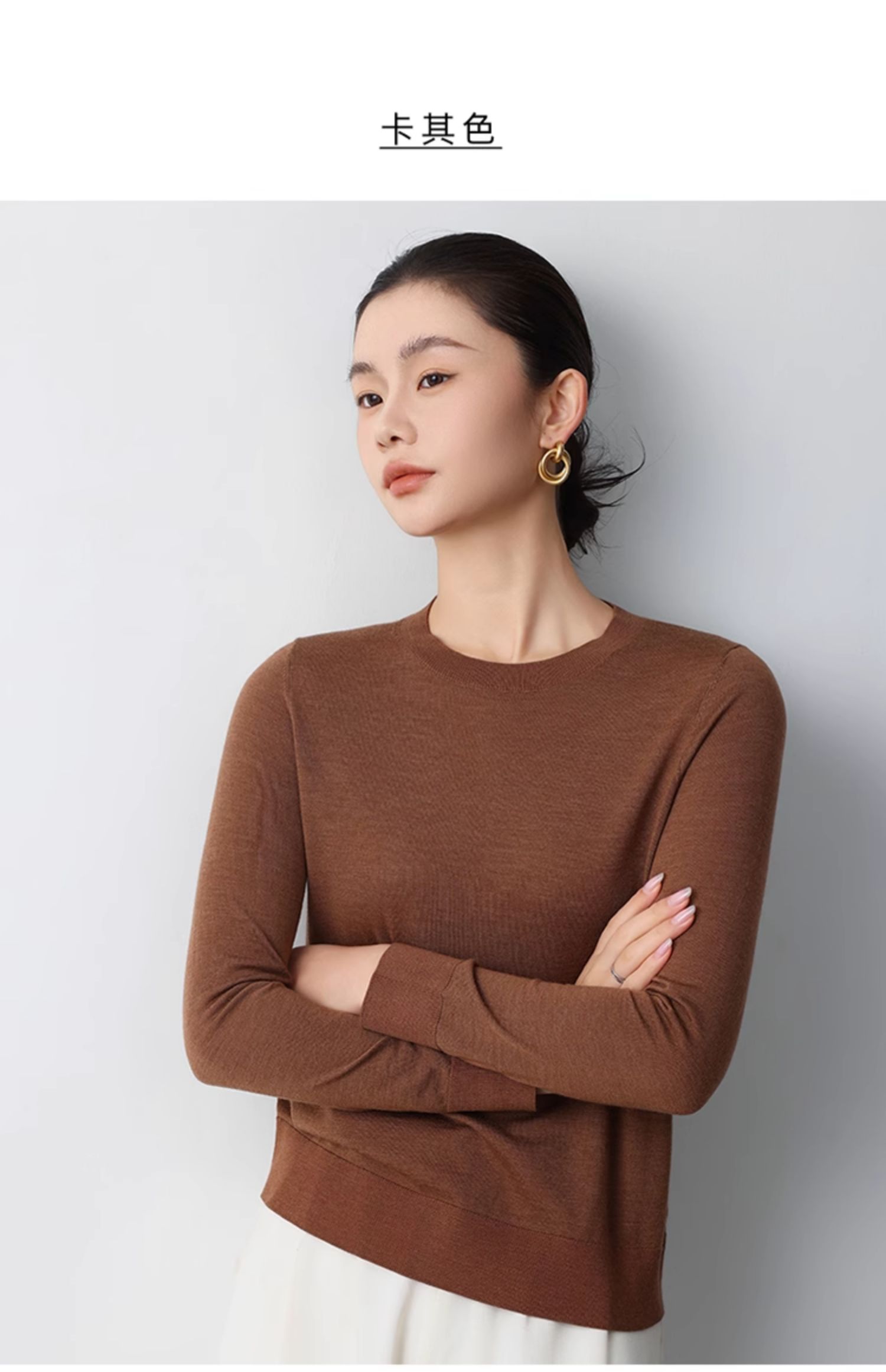 德國敭子紗精紡100%純羊毛衫女士寬松休閒時尚圓領薄款打底衫上衣