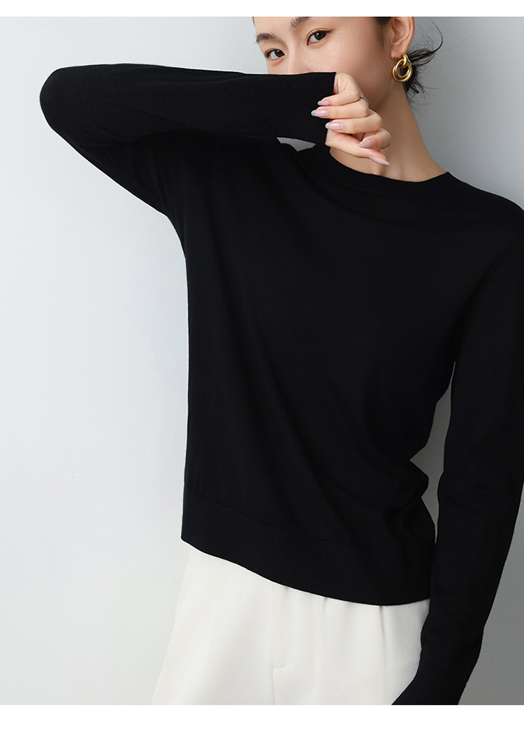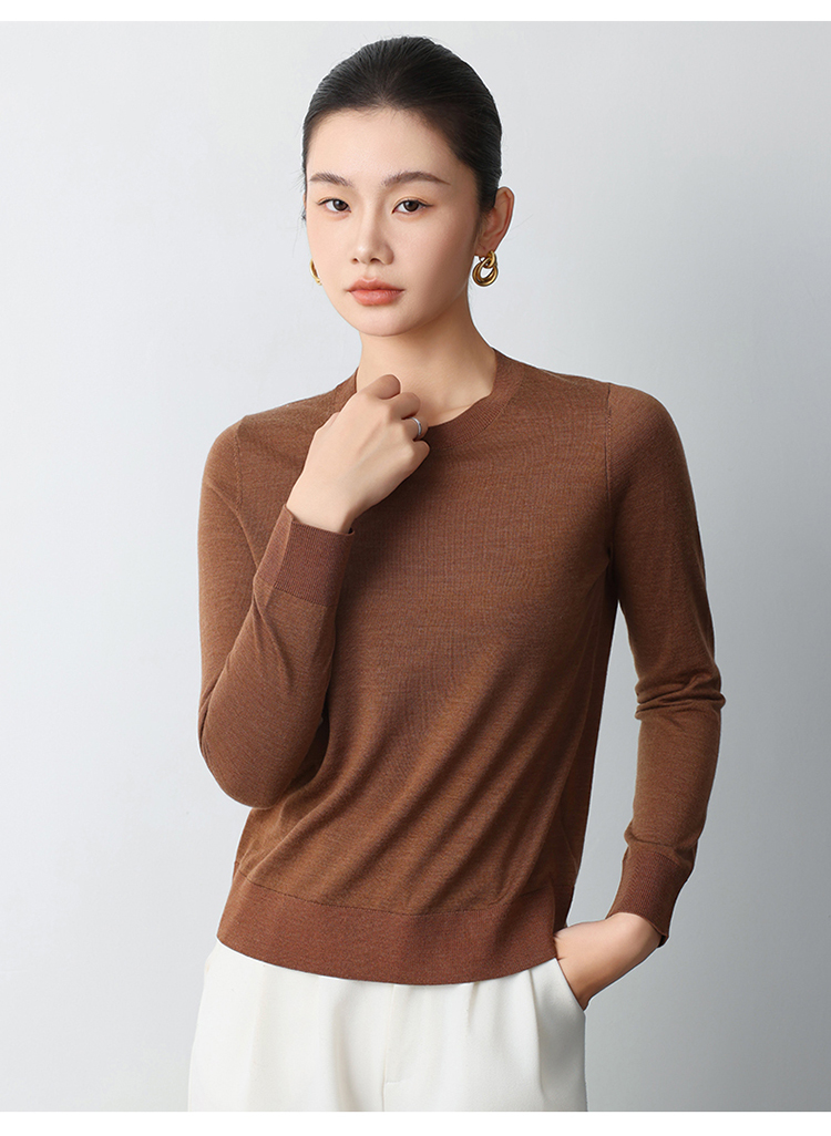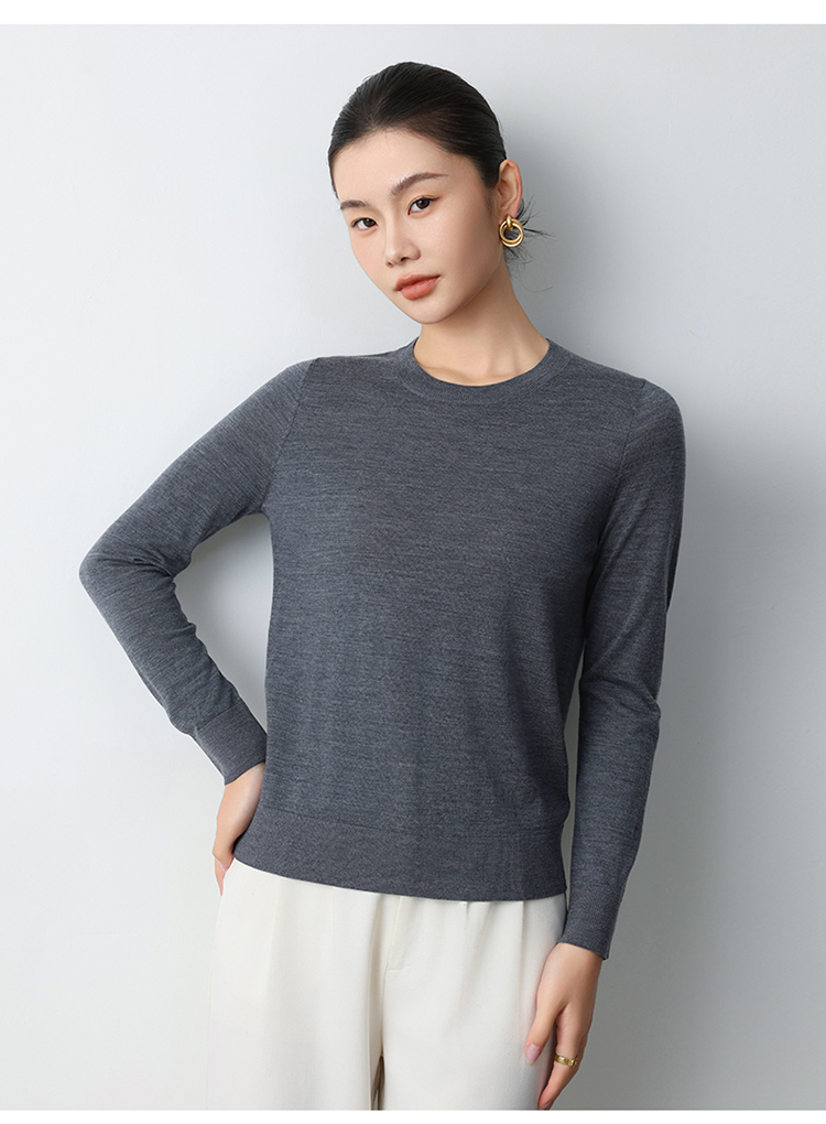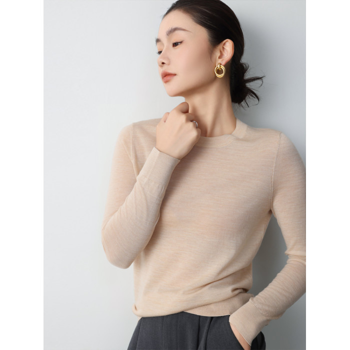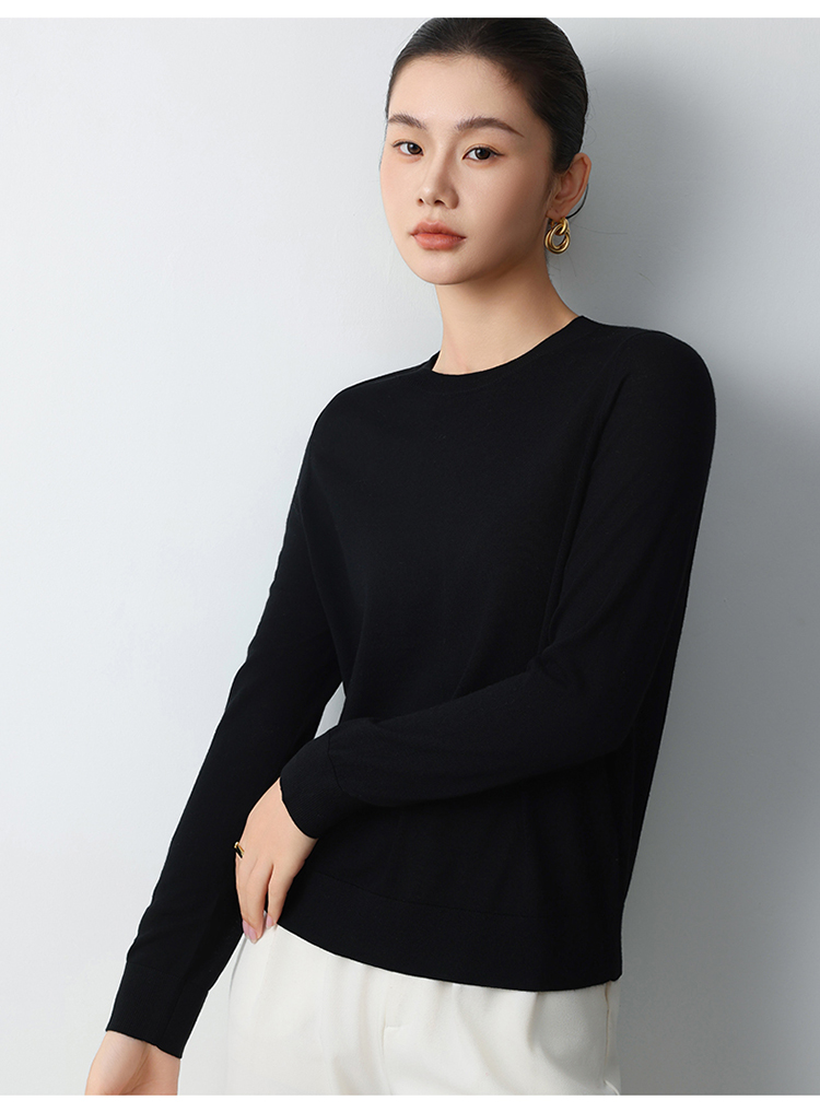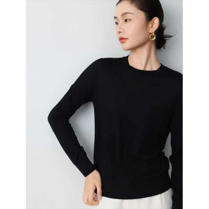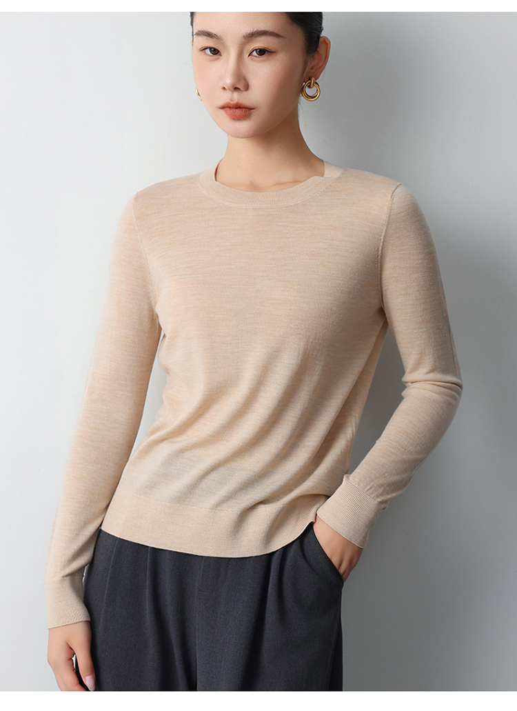 德國敭子紗精紡100%純羊毛衫女士寬松休閒時尚圓領薄款打底衫上衣