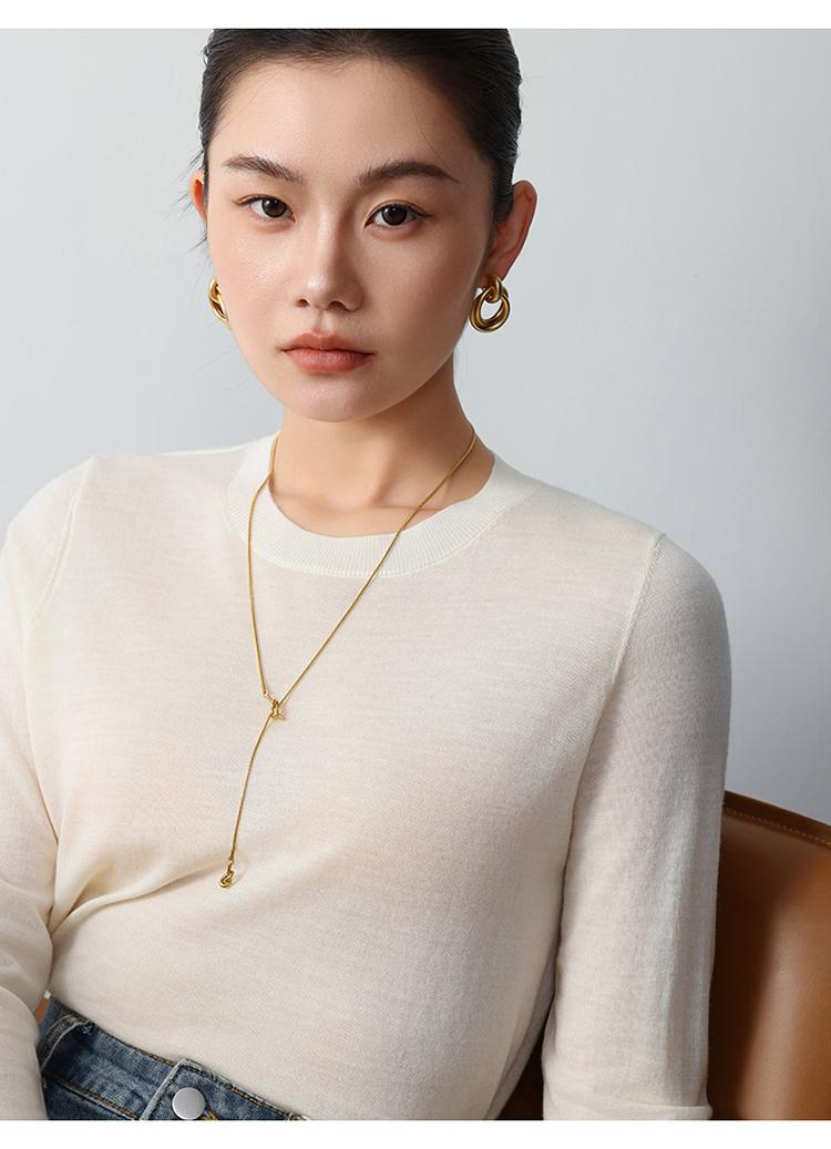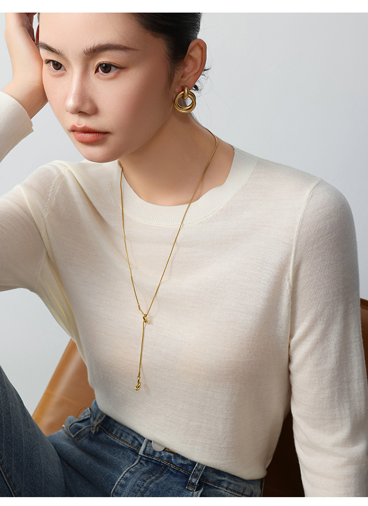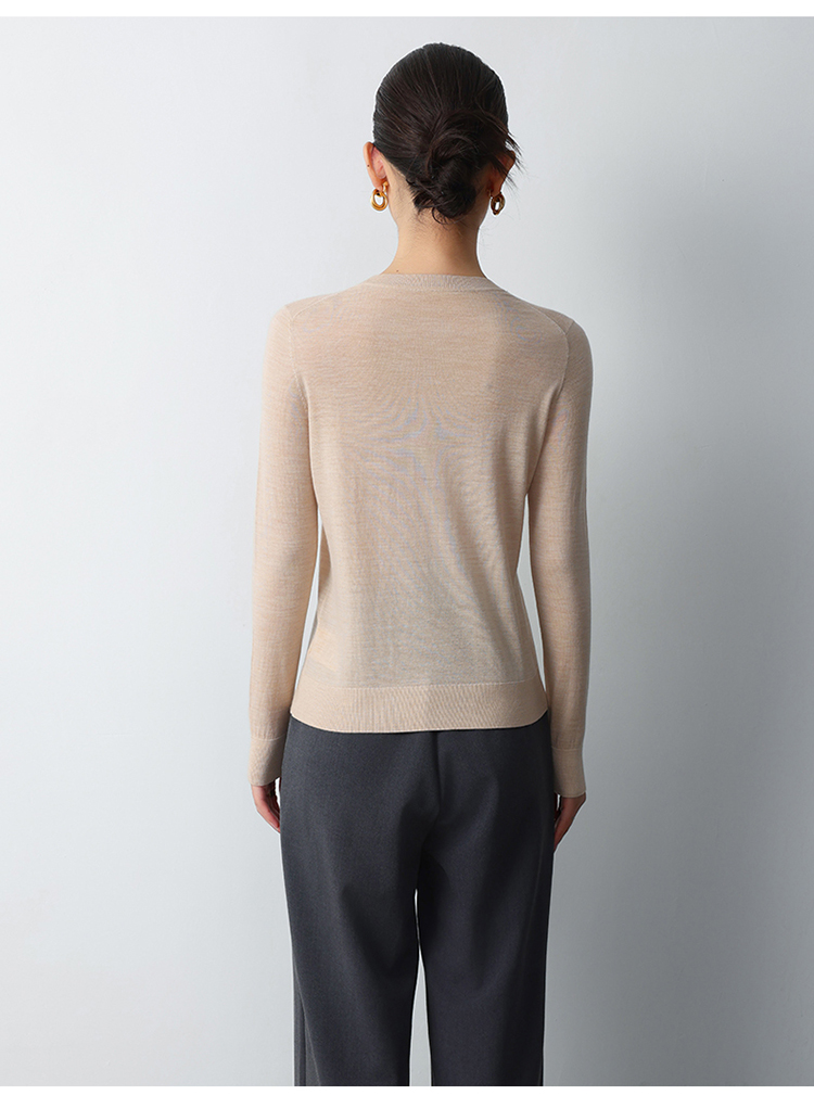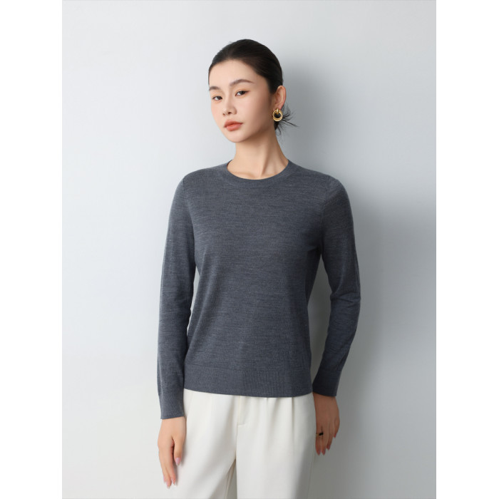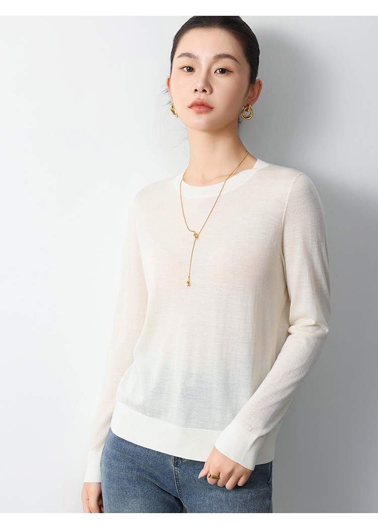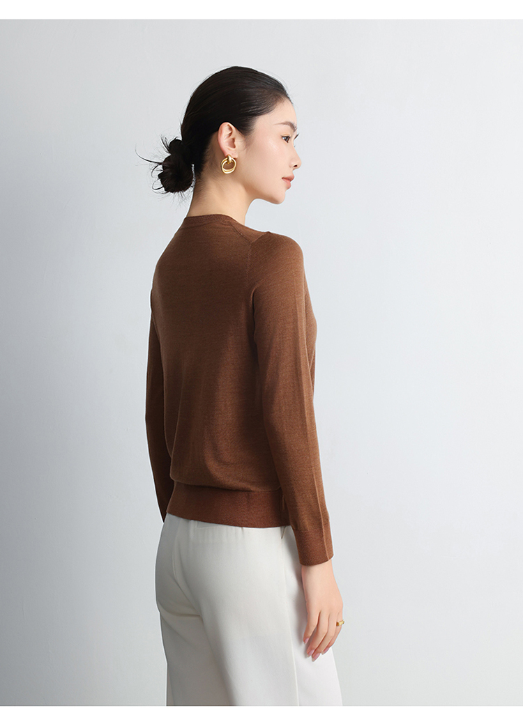 德國敭子紗精紡100%純羊毛衫女士寬松休閒時尚圓領薄款打底衫上衣