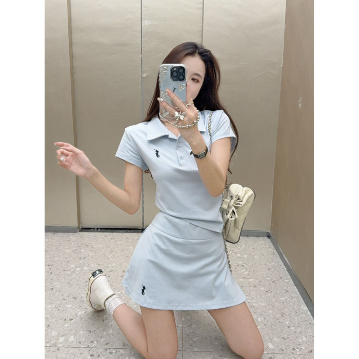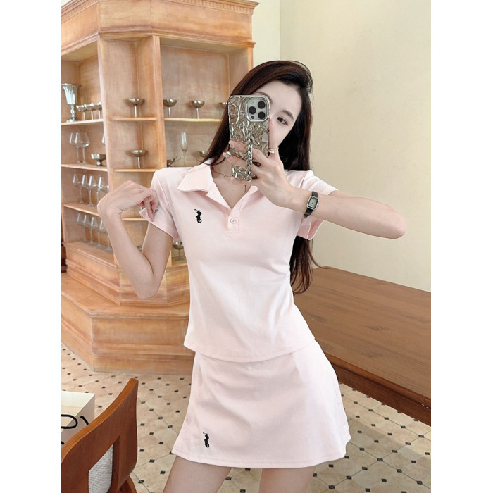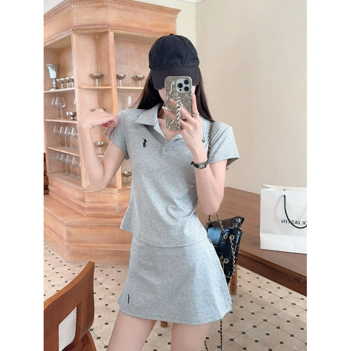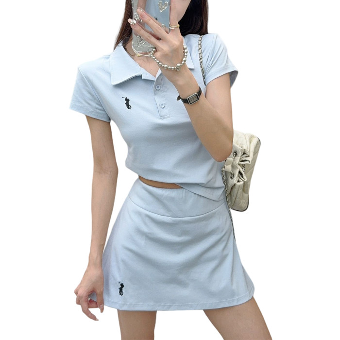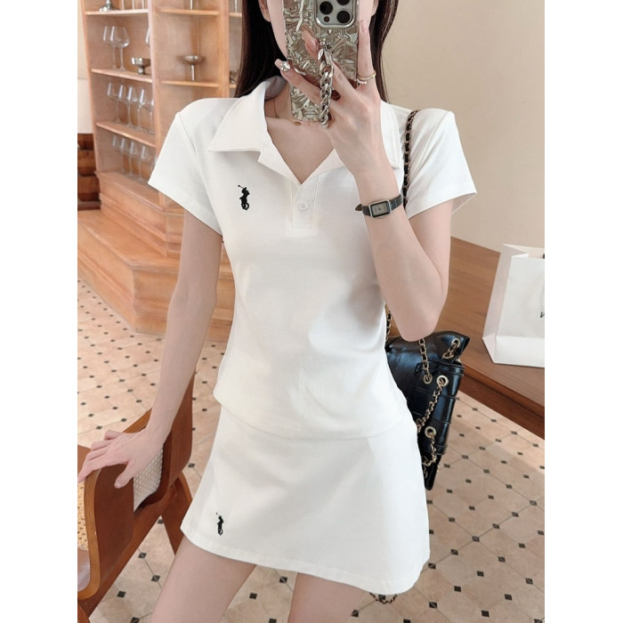 夏日絕美巨好看的休閒運動套裝跑步高級感小個子學院風POLO連衣裙