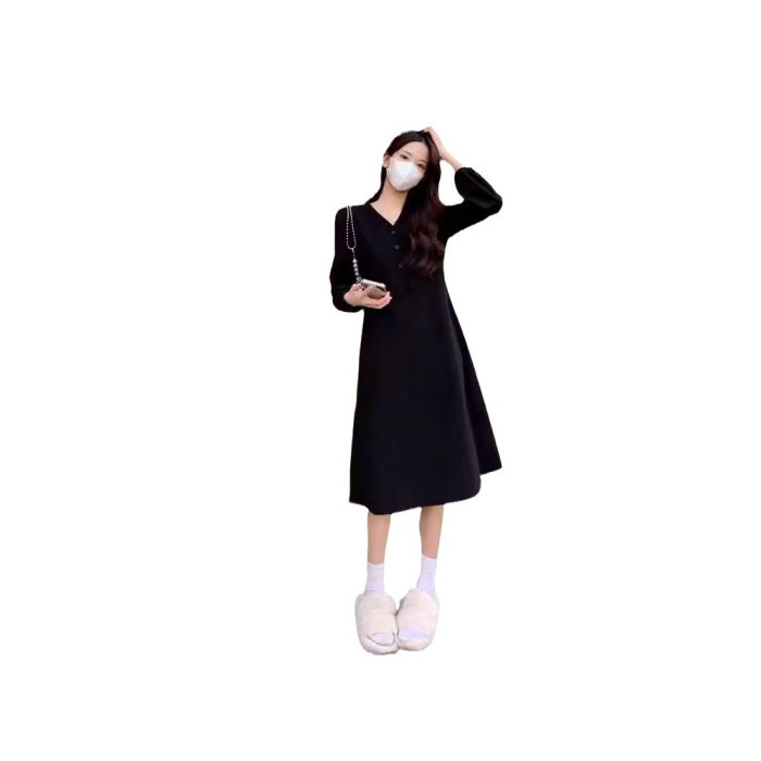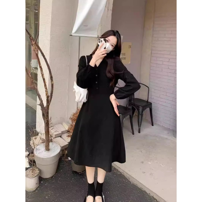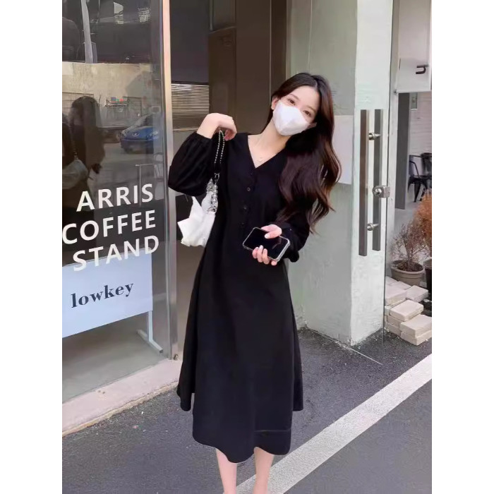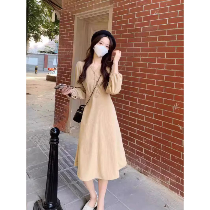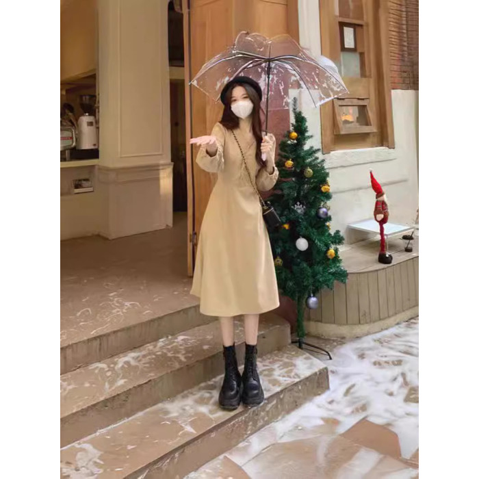 高級感初戀茶歇裙子燈芯絨配大衣長裙女秋季法式溫柔風連衣裙