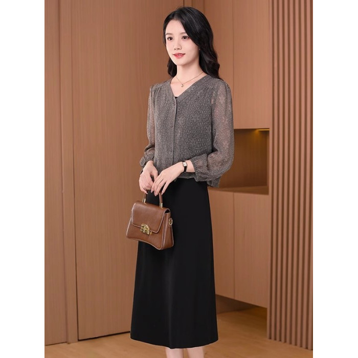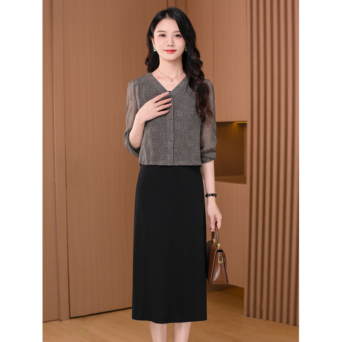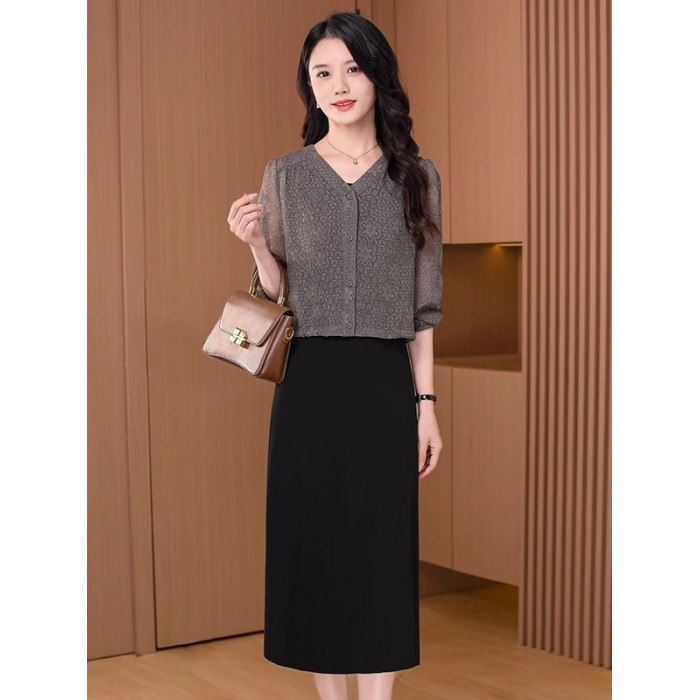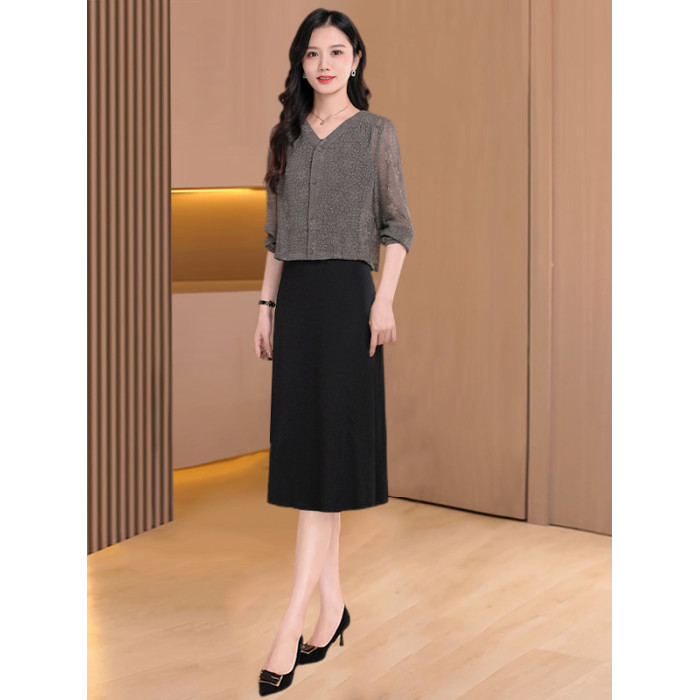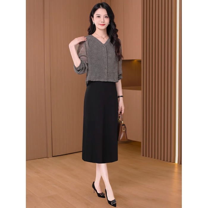 灰色(兩件套)-輕奢高級感時尚洋氣兩件套連衣裙春季新款氣質穿搭女神範裙子