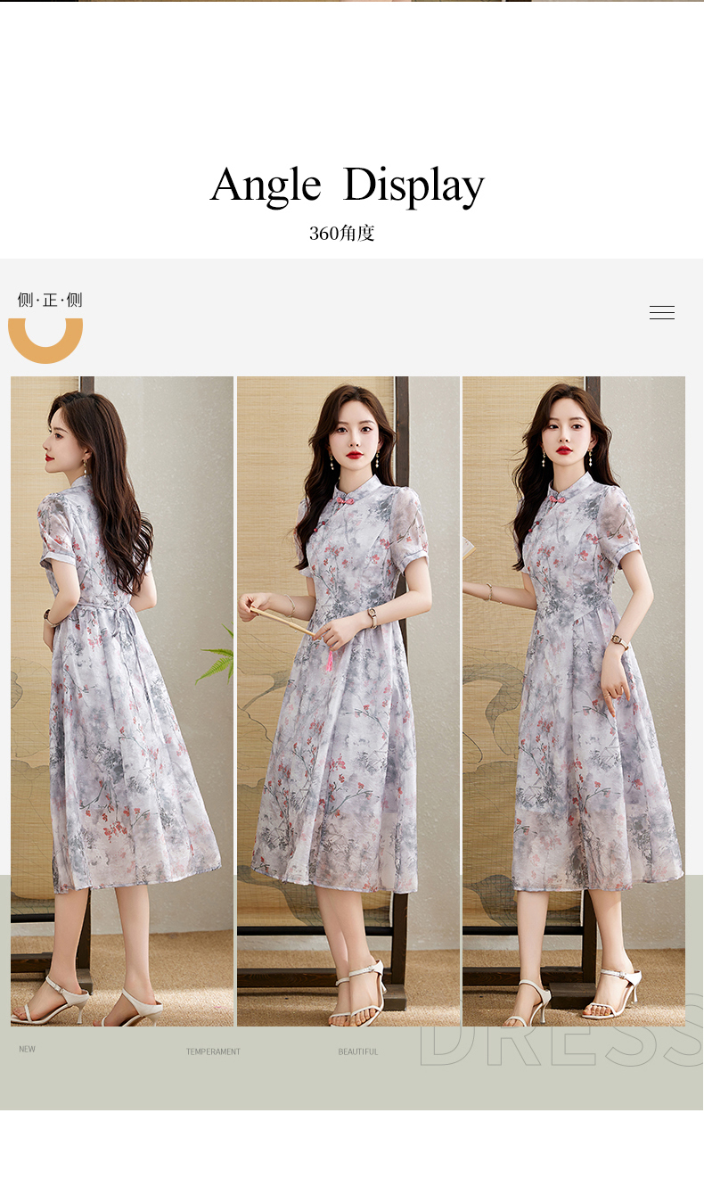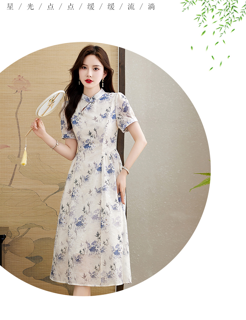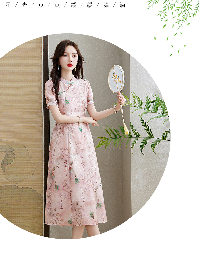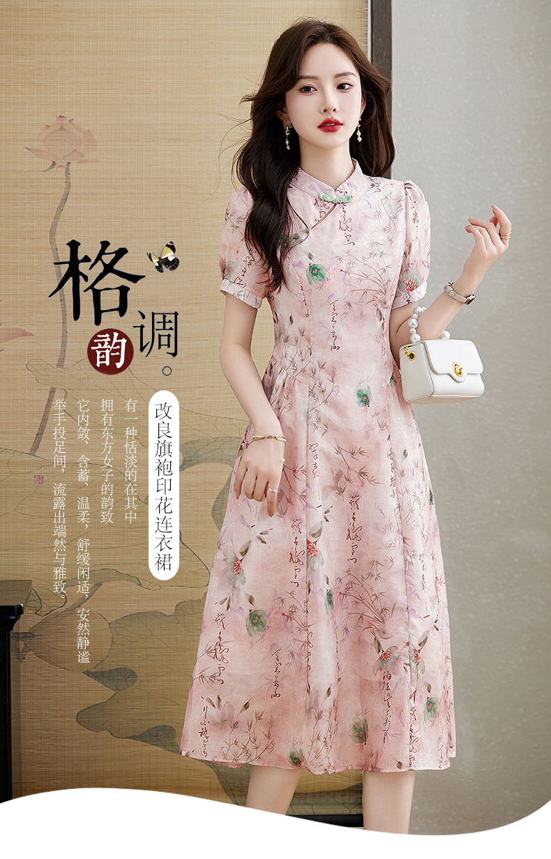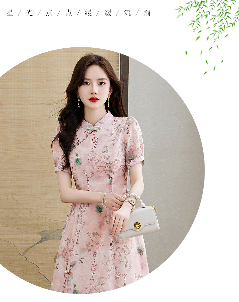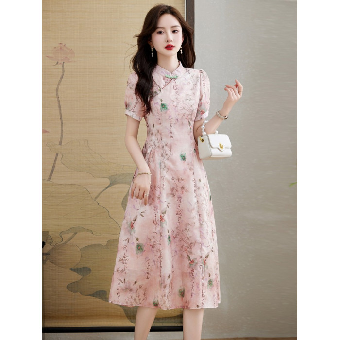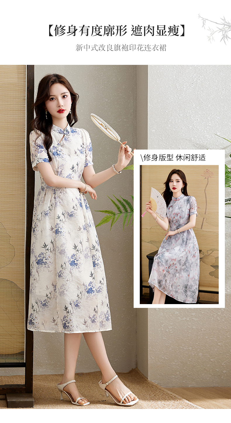MJAE高級新中式國風連衣裙女夏2025新款遮肚碎花氣質改良旗袍裙