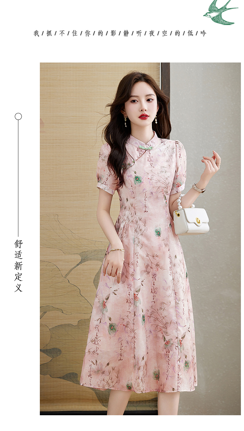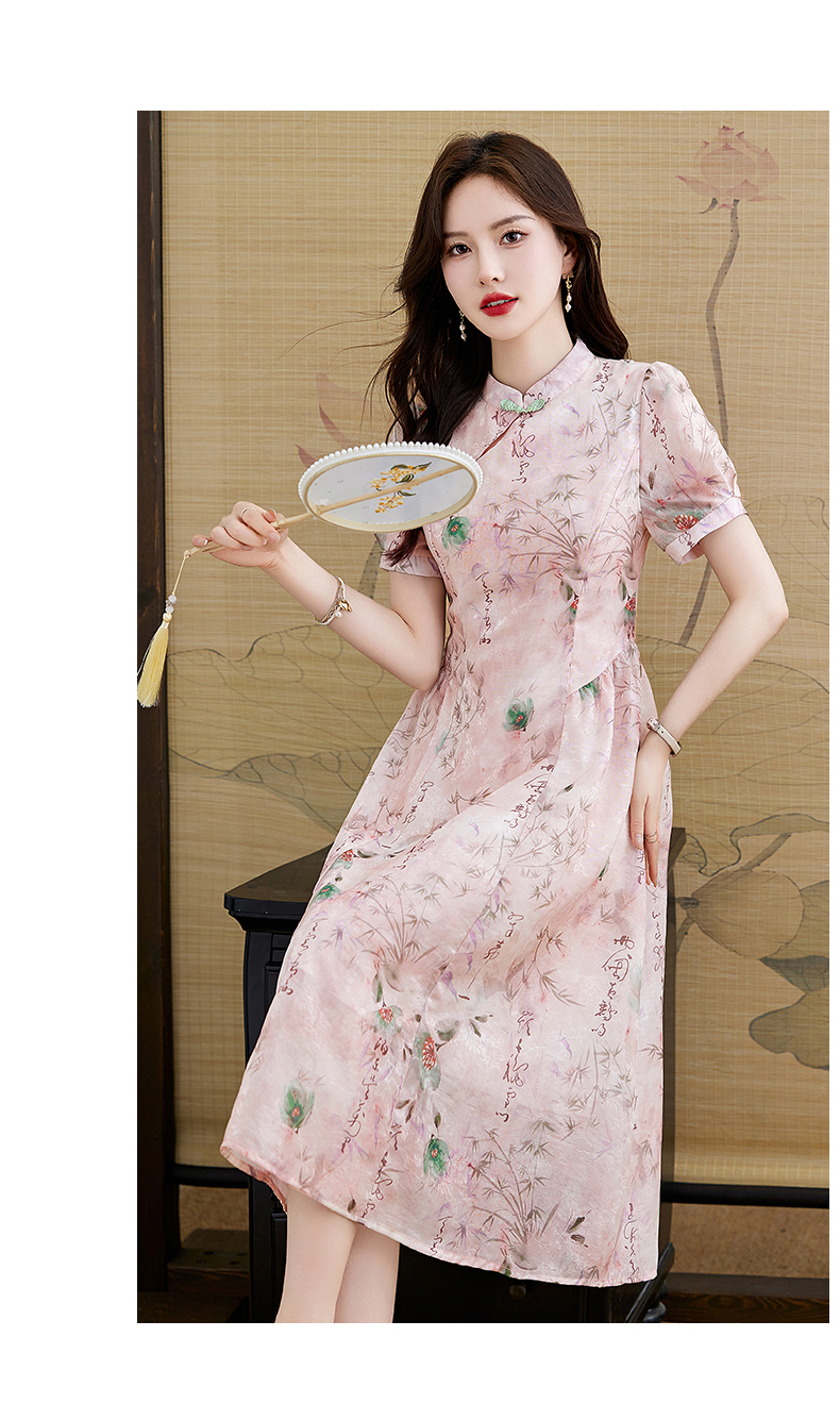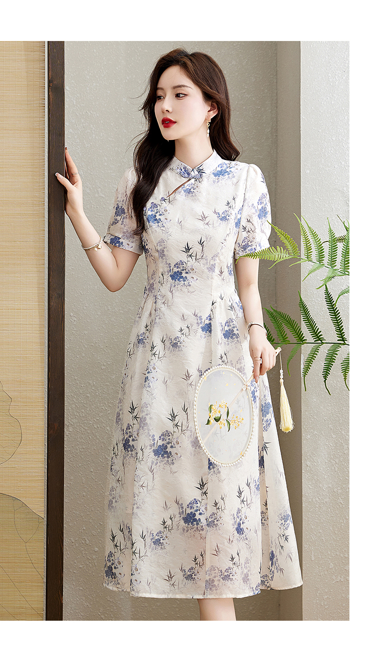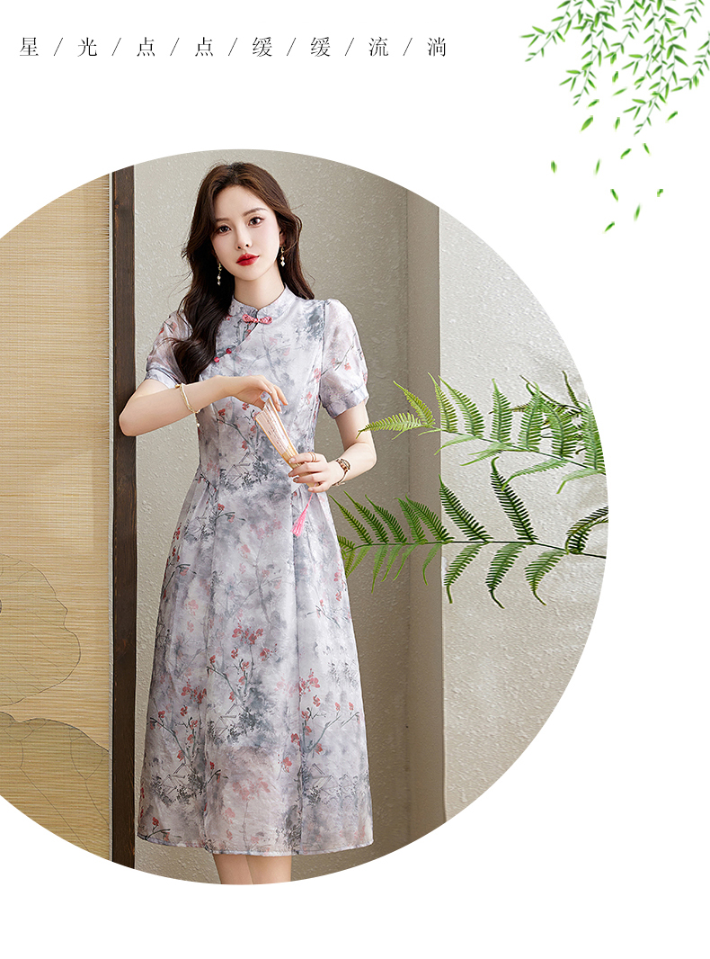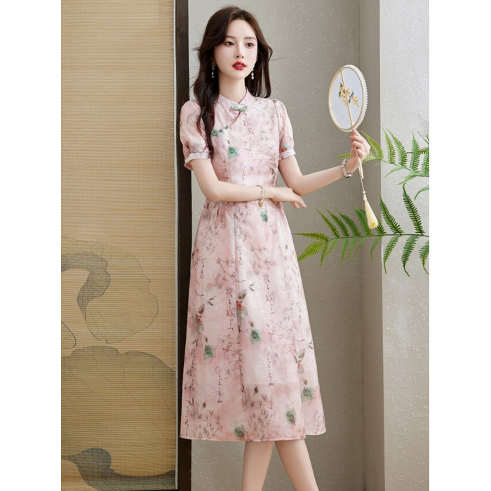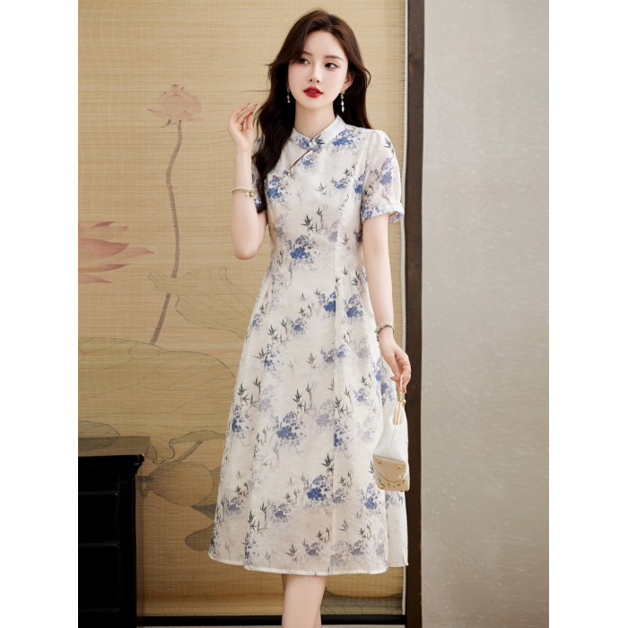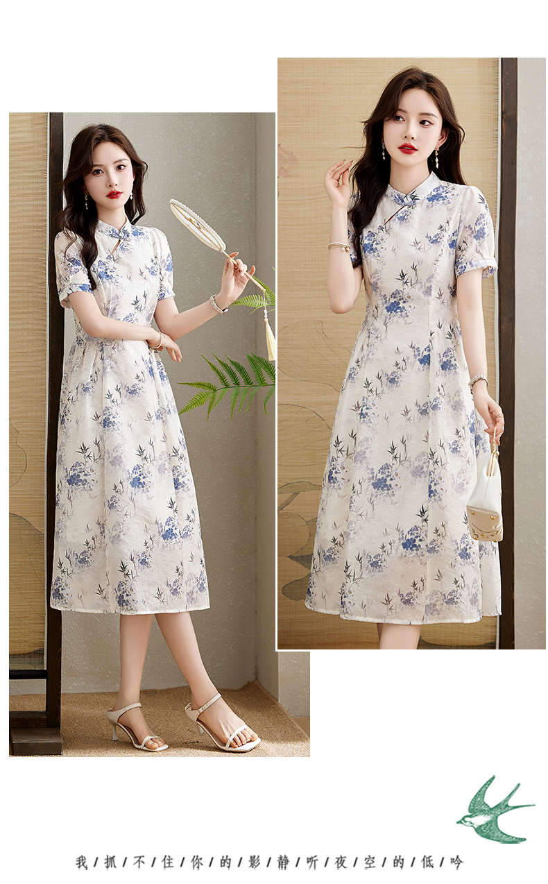 MJAE高級新中式國風連衣裙女夏2025新款遮肚碎花氣質改良旗袍裙