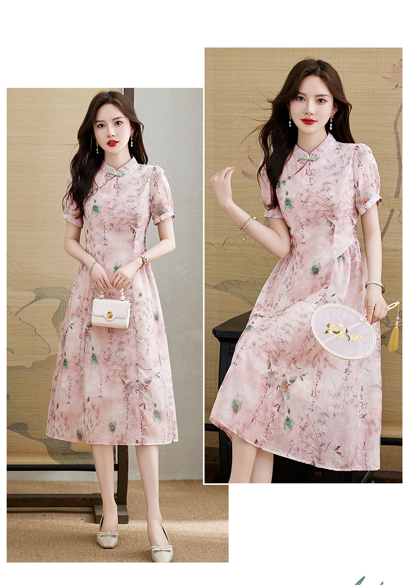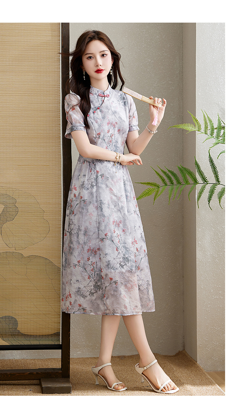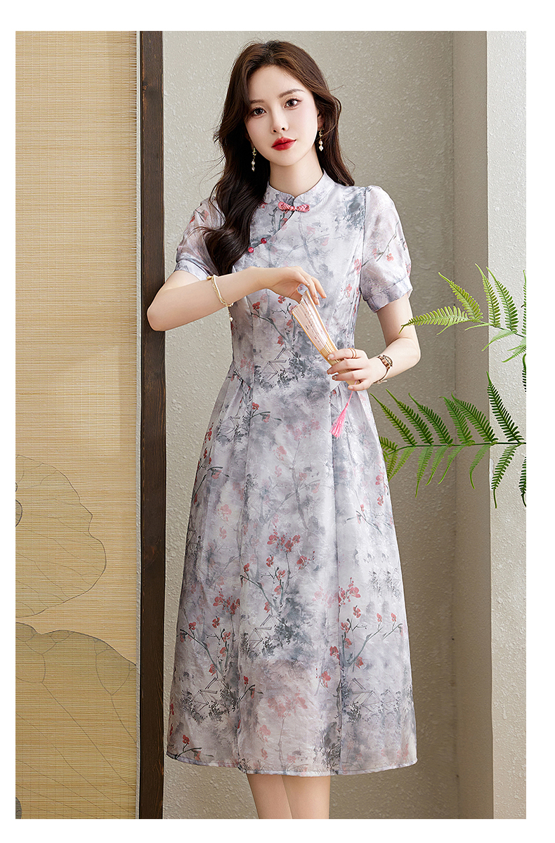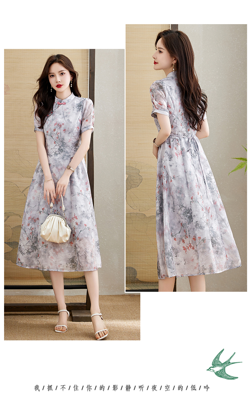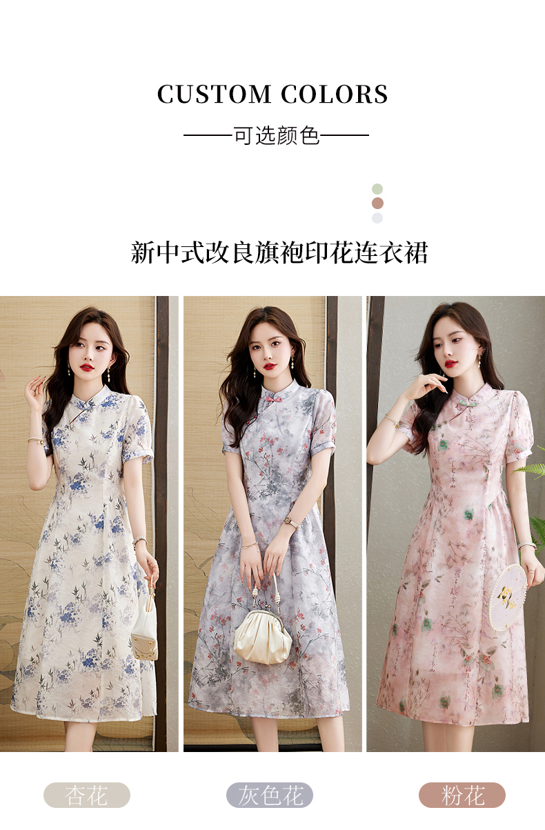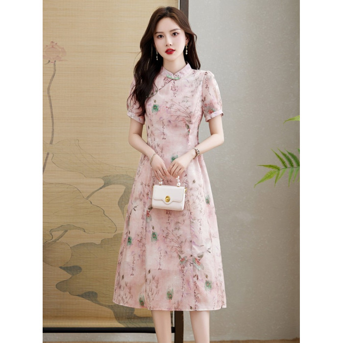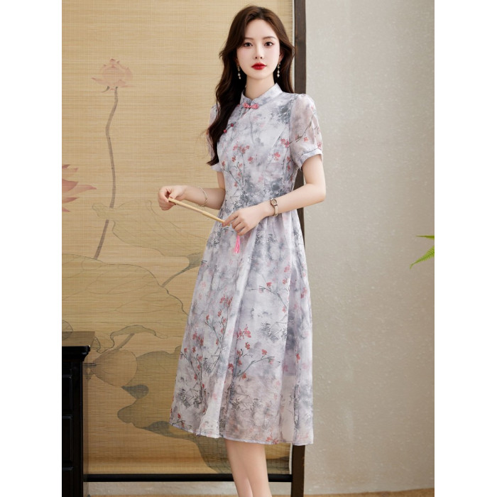 MJAE高級新中式國風連衣裙女夏2025新款遮肚碎花氣質改良旗袍裙