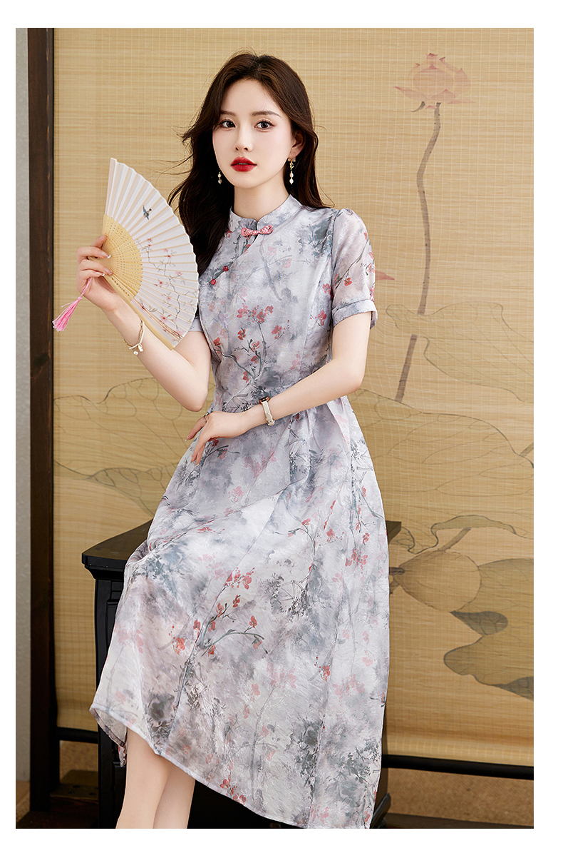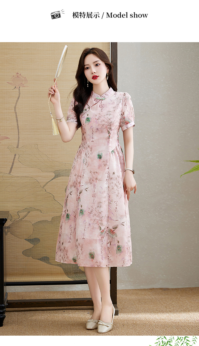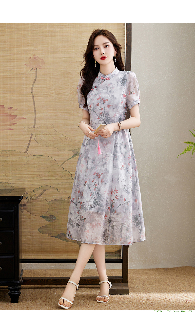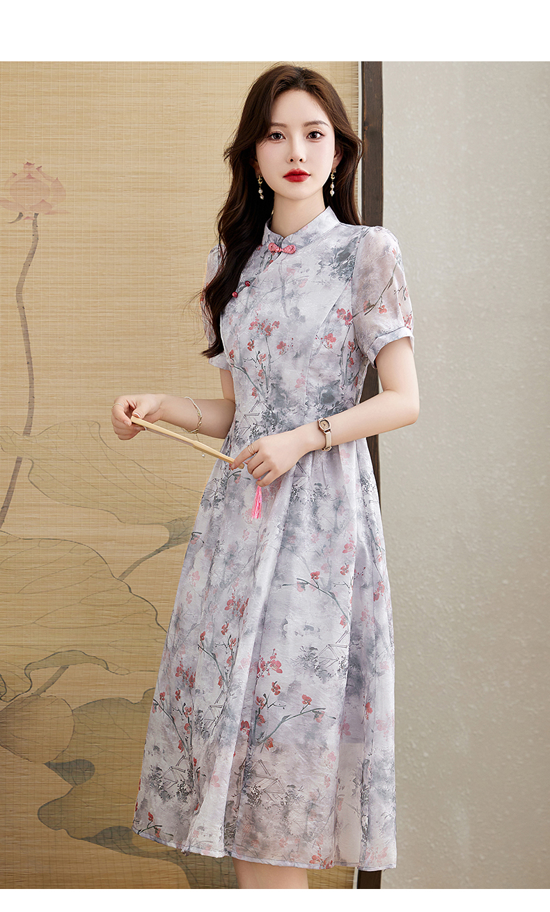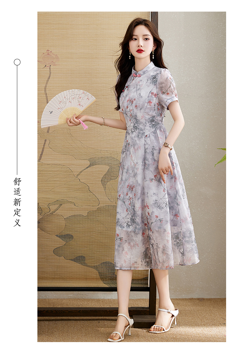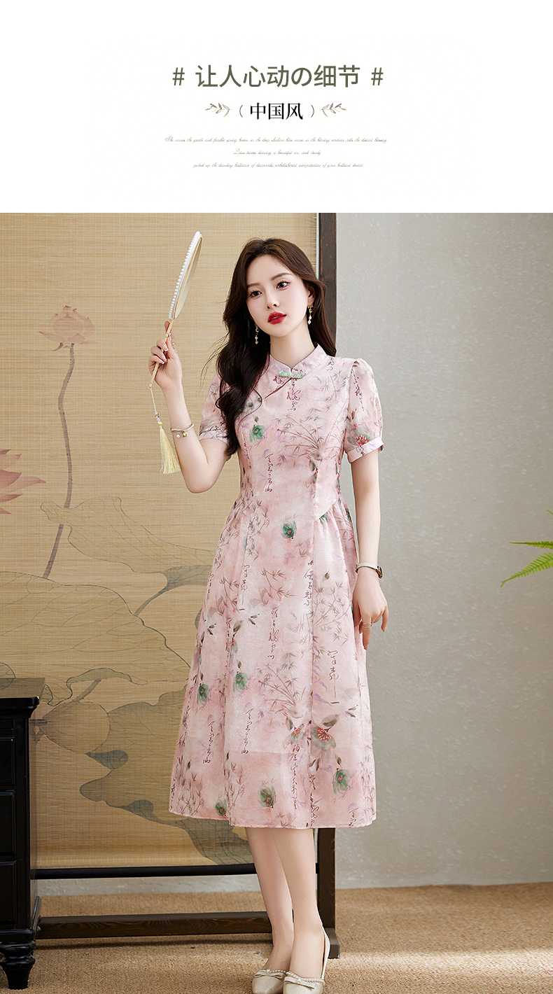 MJAE高級新中式國風連衣裙女夏2025新款遮肚碎花氣質改良旗袍裙