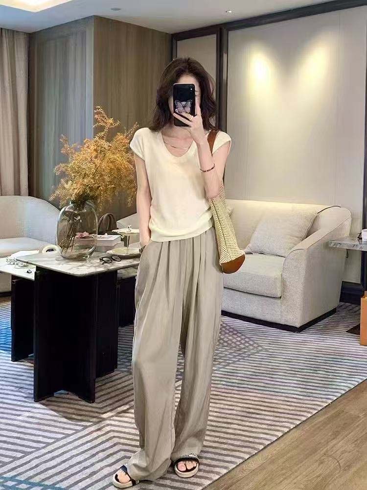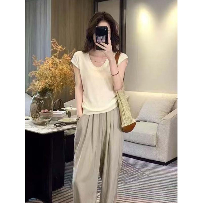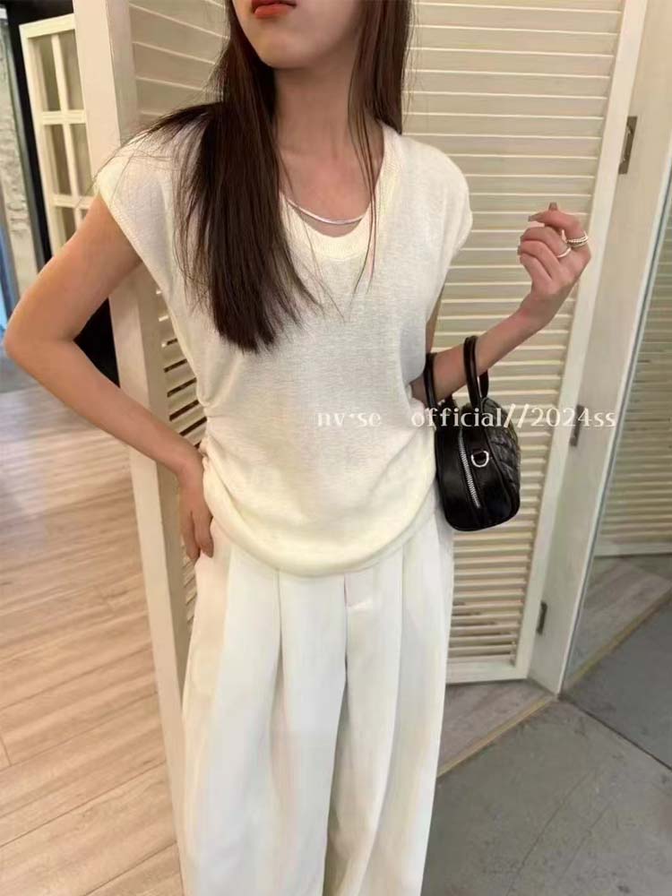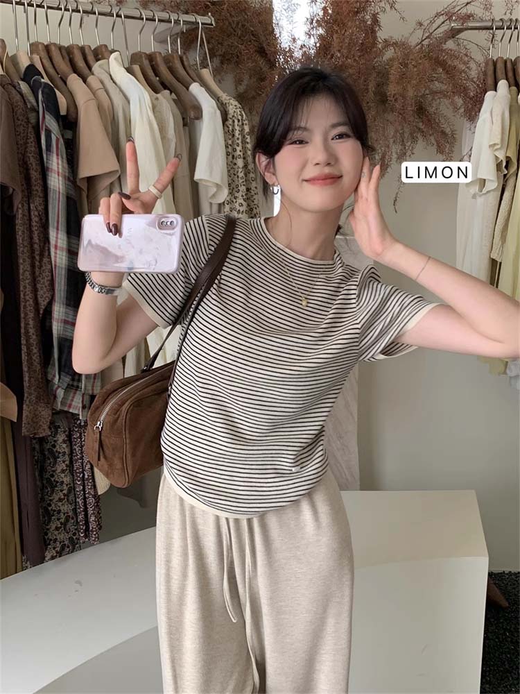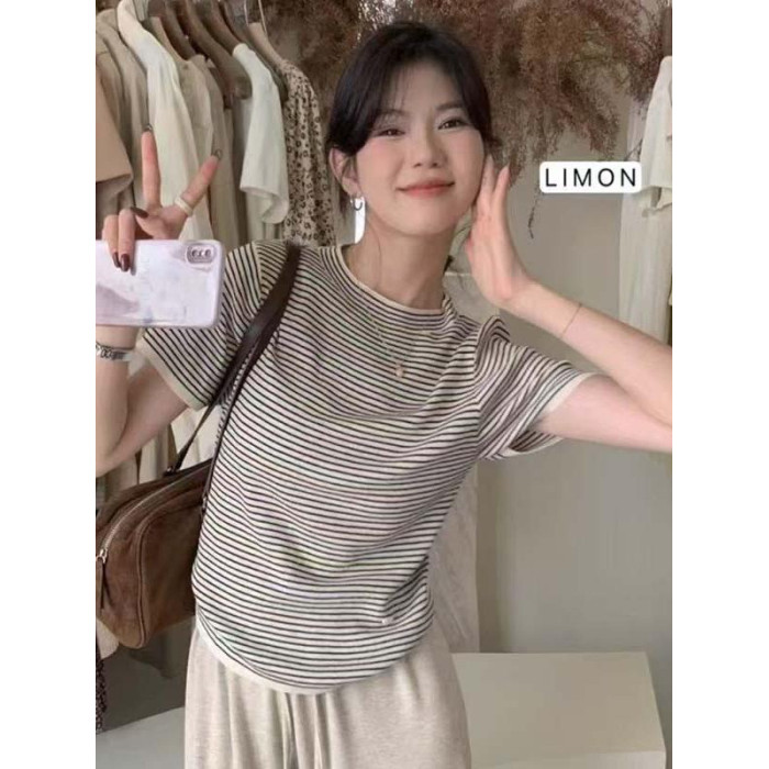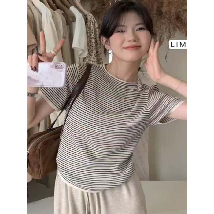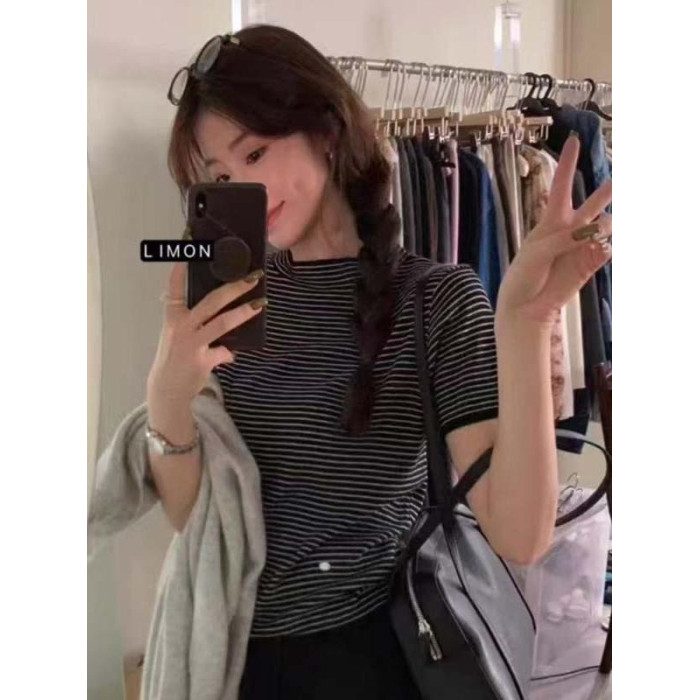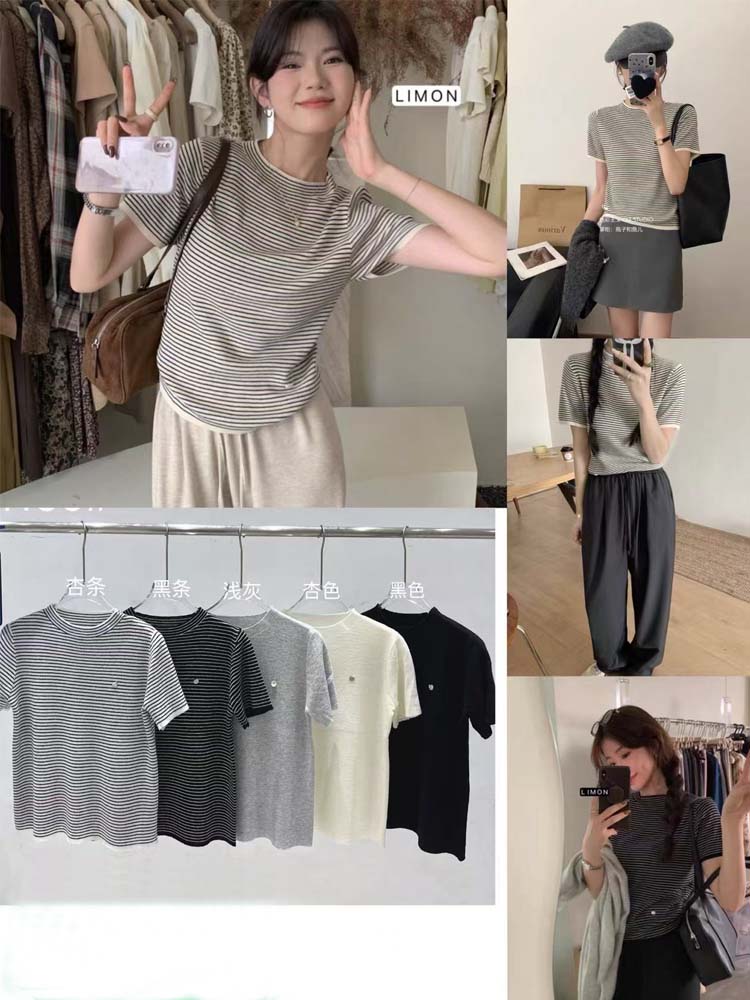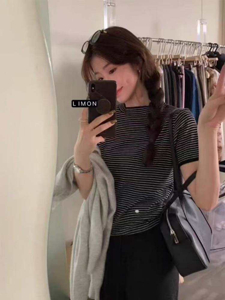 韓版休閒設計感收腰顯瘦短袖針織衫2025夏季內搭圓領套頭打底衫女