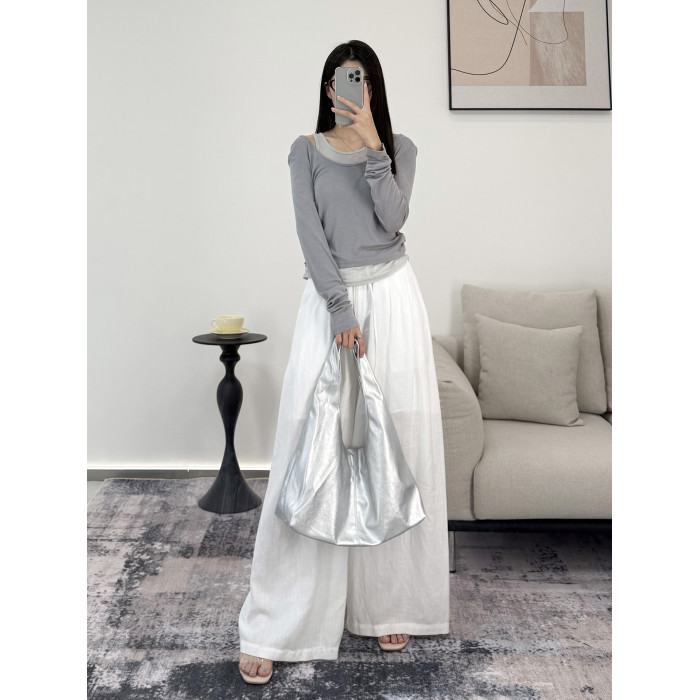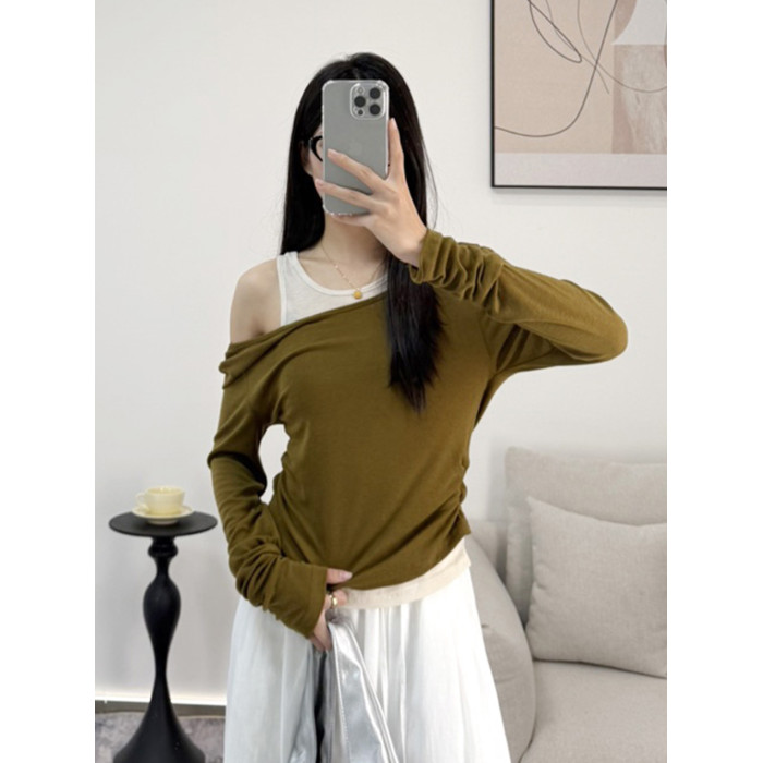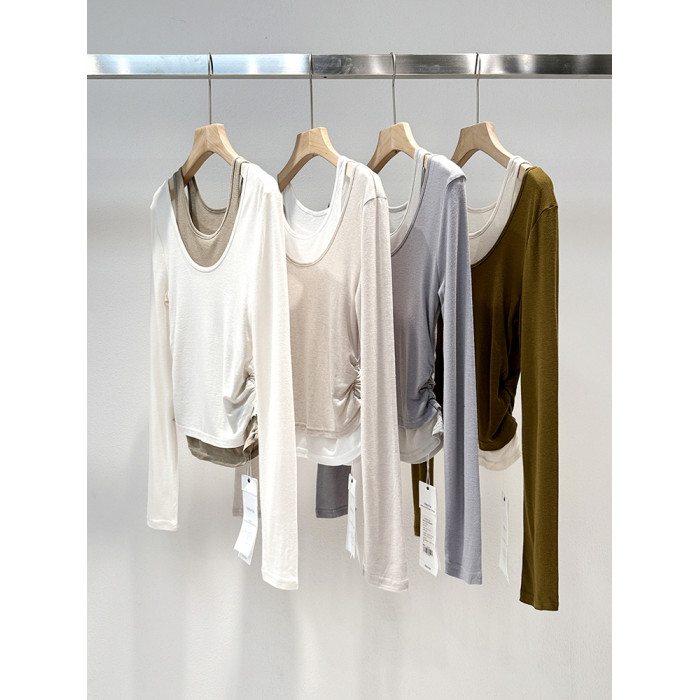 VK春款天絲羊毛彈力款假兩件針織衫女可外穿薄款毛衣打底衫M3611