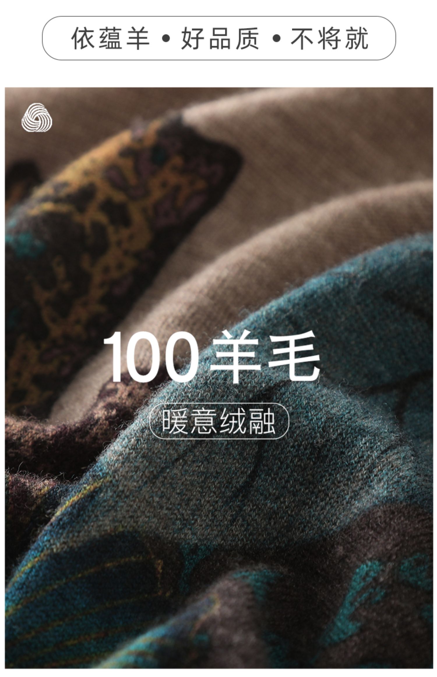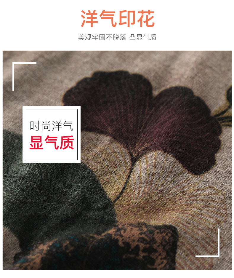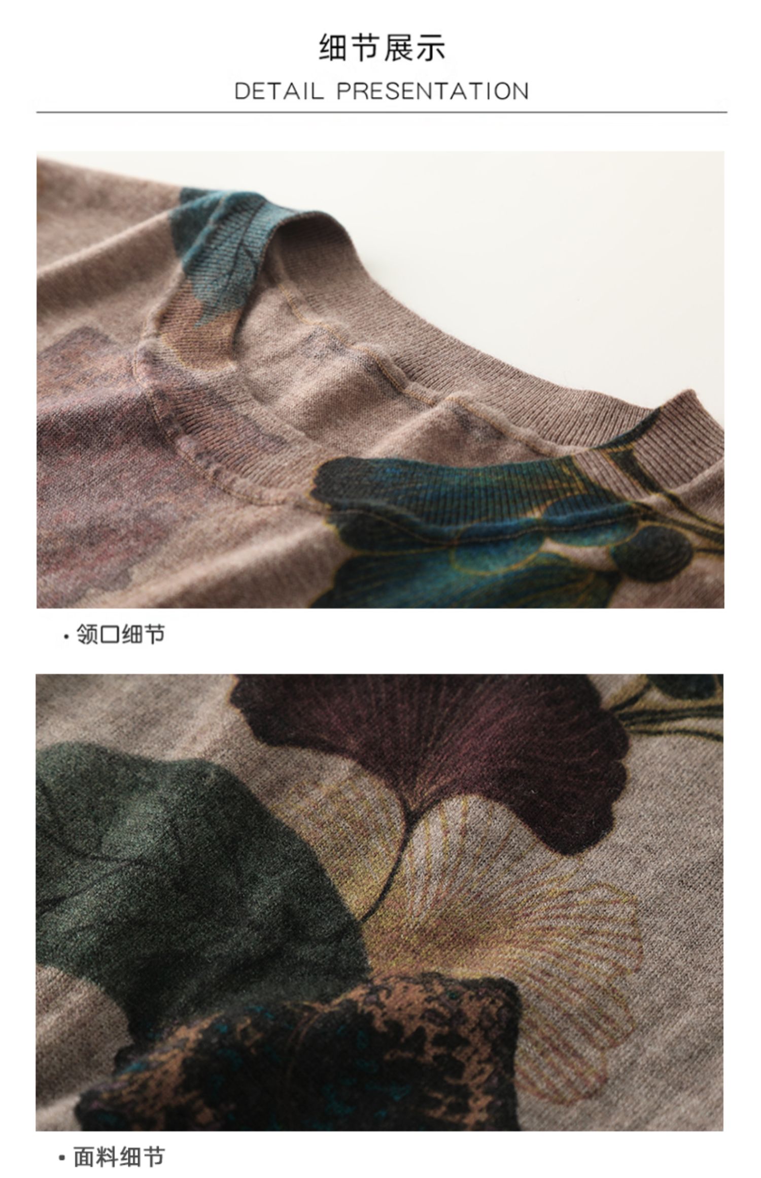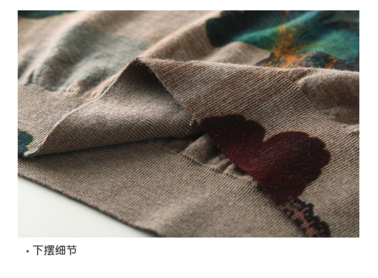 2025春季新款圓領七分袖薄款水溶羊毛打底上衣女媽媽寬松印花毛衣